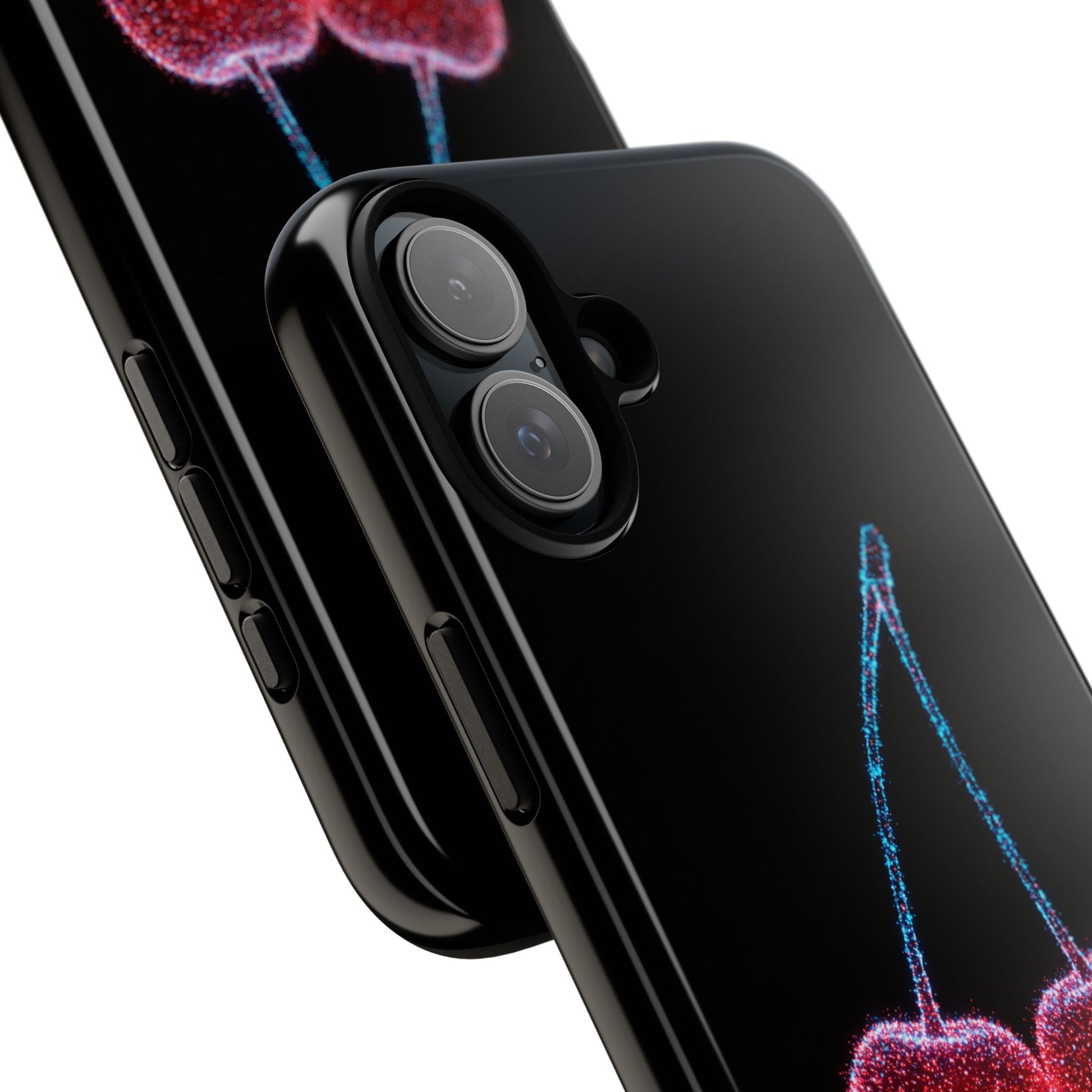 A fun Phone Case with Bioluminescent Cherries design, perfect for adding a pop of color and personality to your phone. The durable and impact resistant material provides excellent protection against drops and tears. Relevant to adults looking for a unique and stylish phone case. Ideal for gifting during birthdays, holidays, and special occasions.