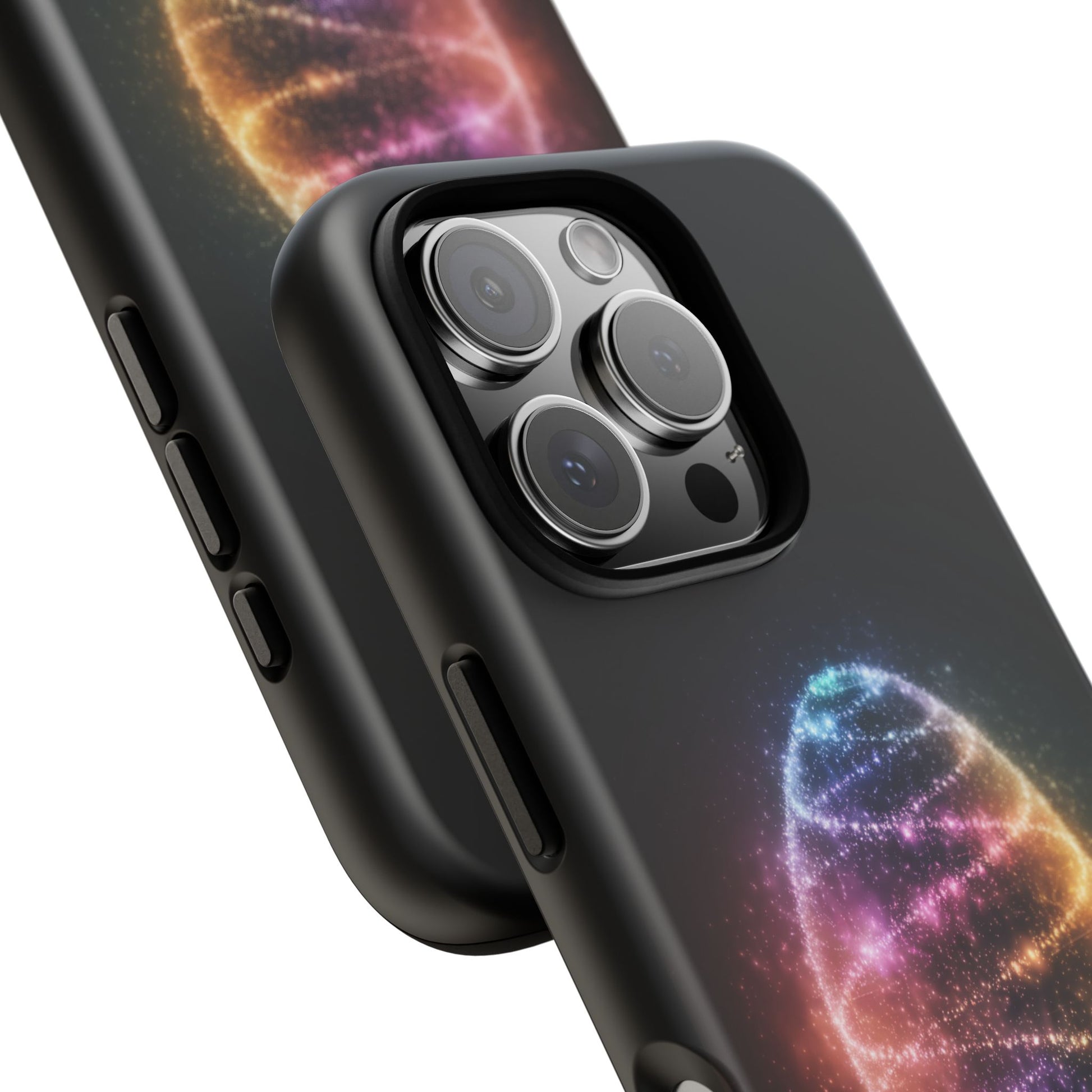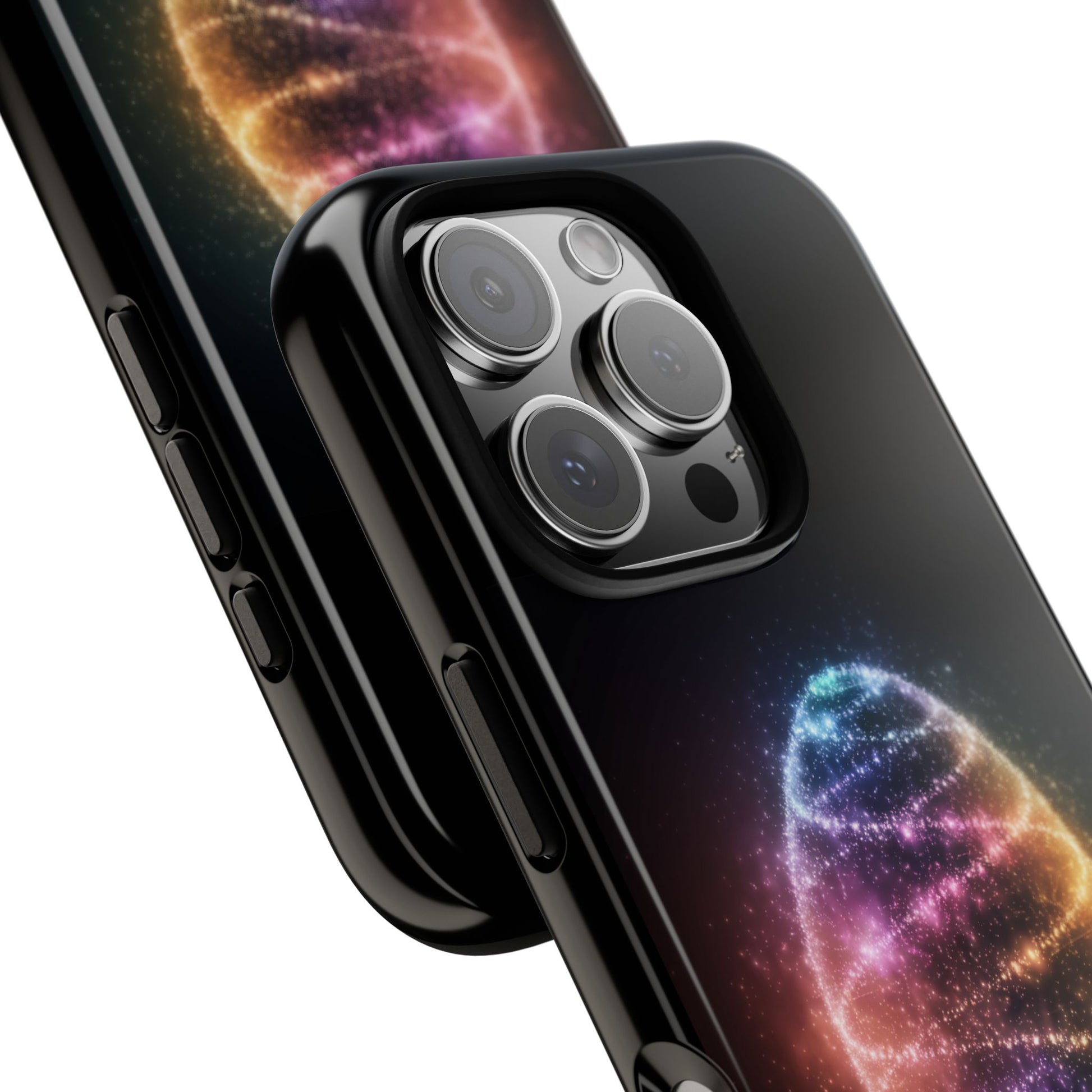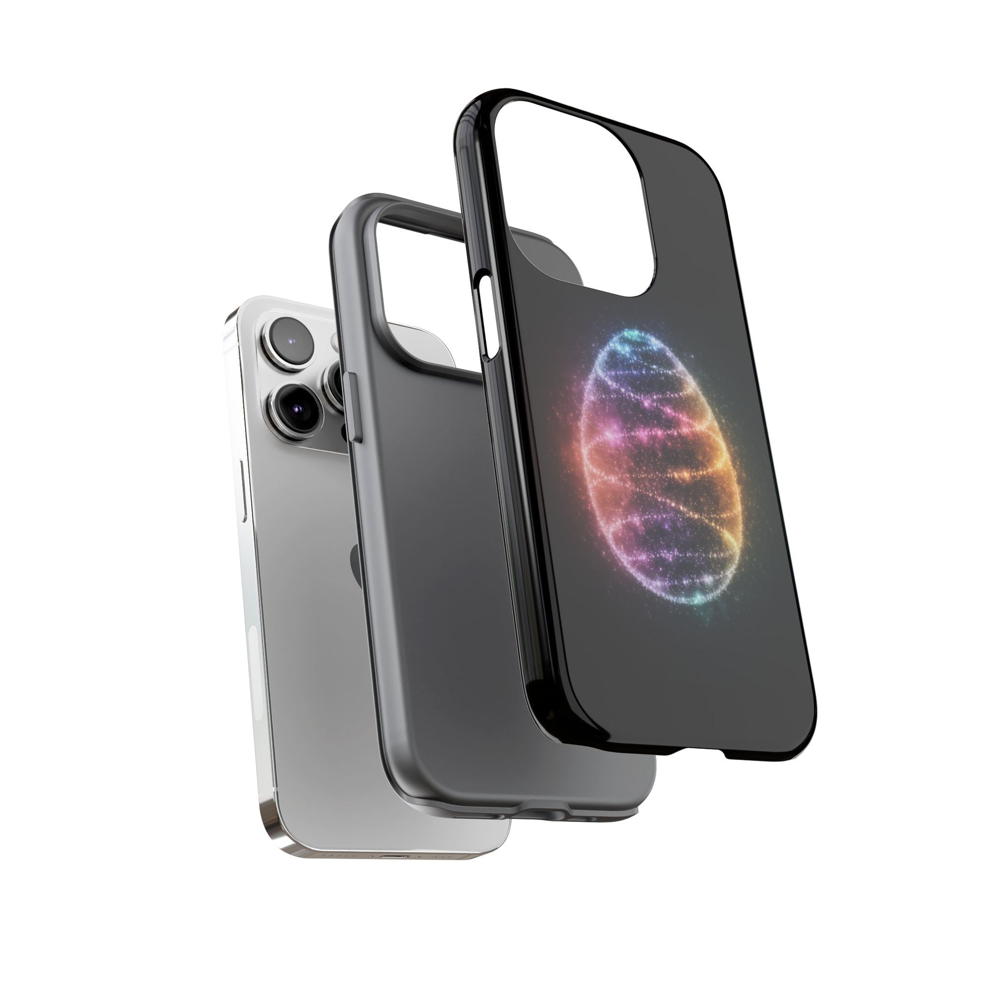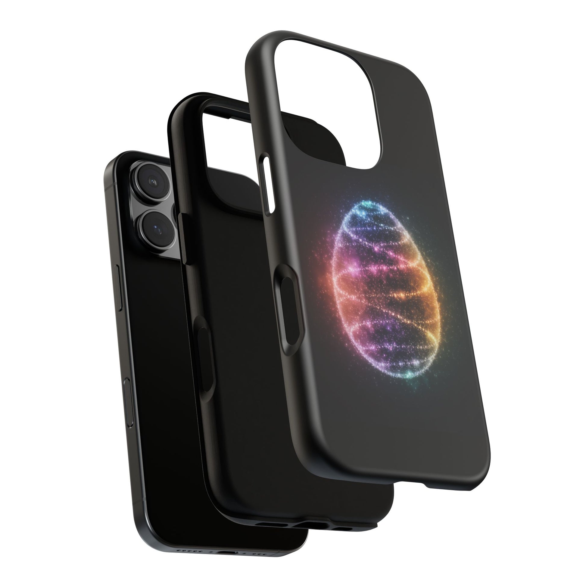 A fun iPhone case with a bioluminescent Easter Egg design, giving off a playful and whimsical vibe. Perfect for anyone looking to add a touch of fun to their phone accessories. Ideal for Easter celebrations and for anyone who enjoys unique and eye-catching designs on their phone cases.