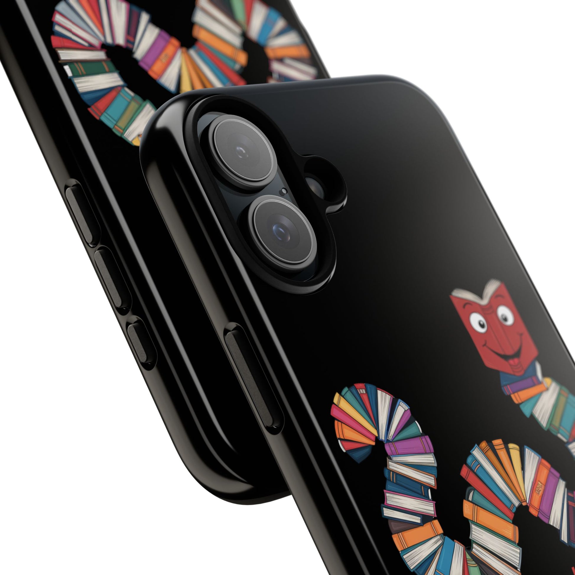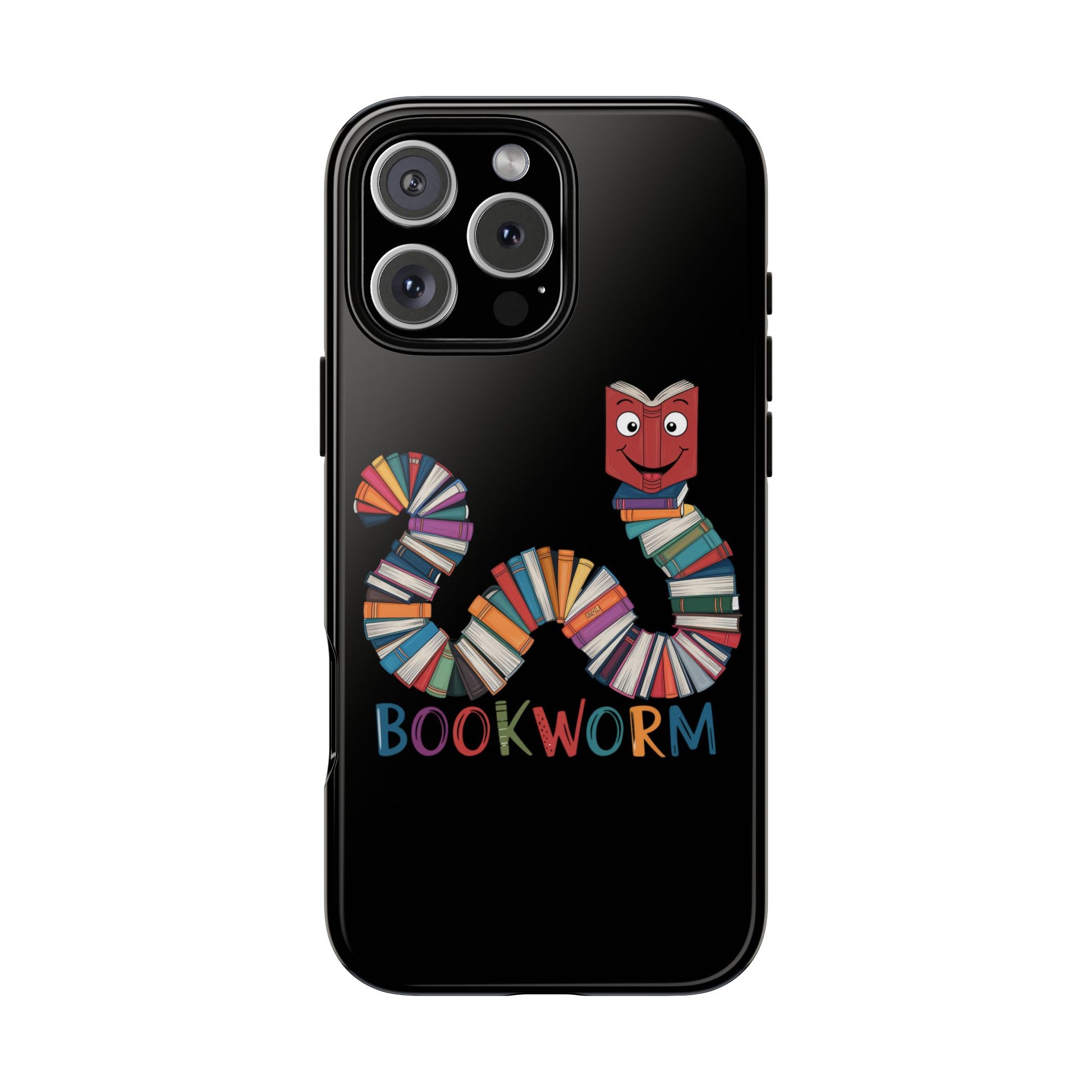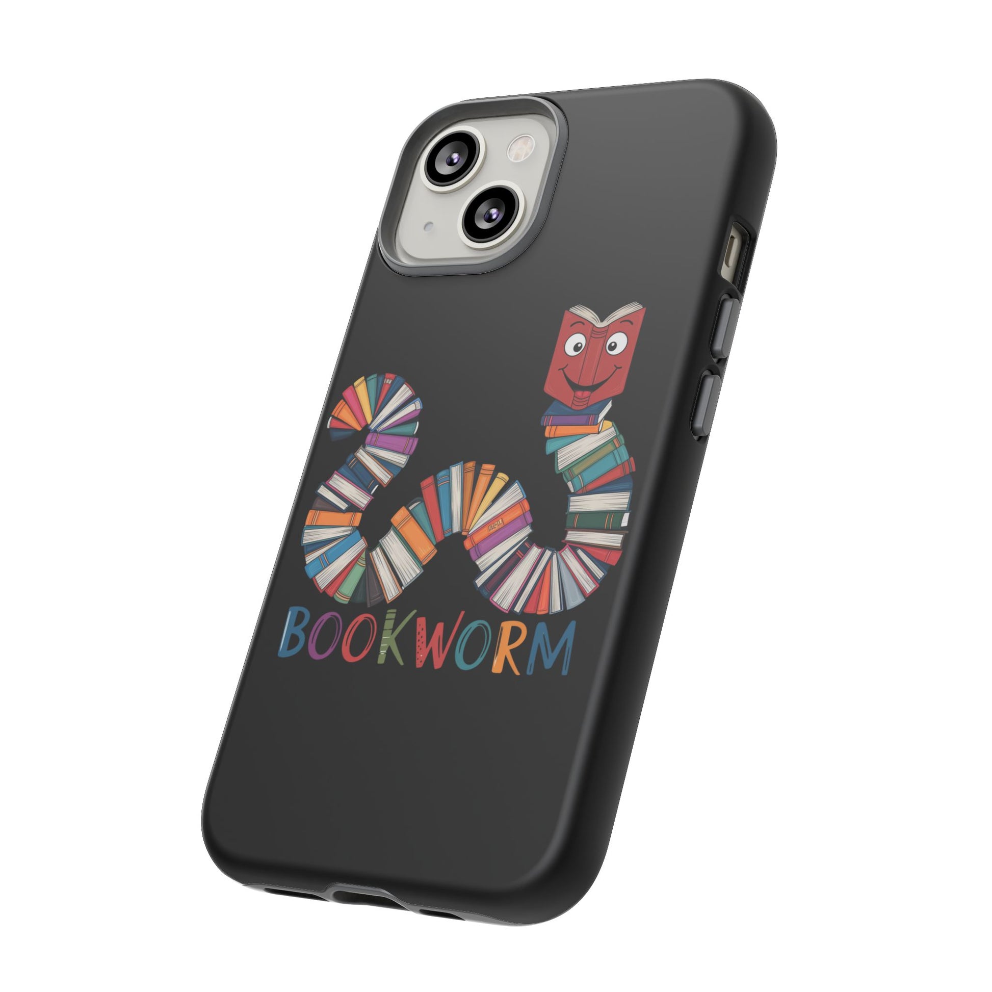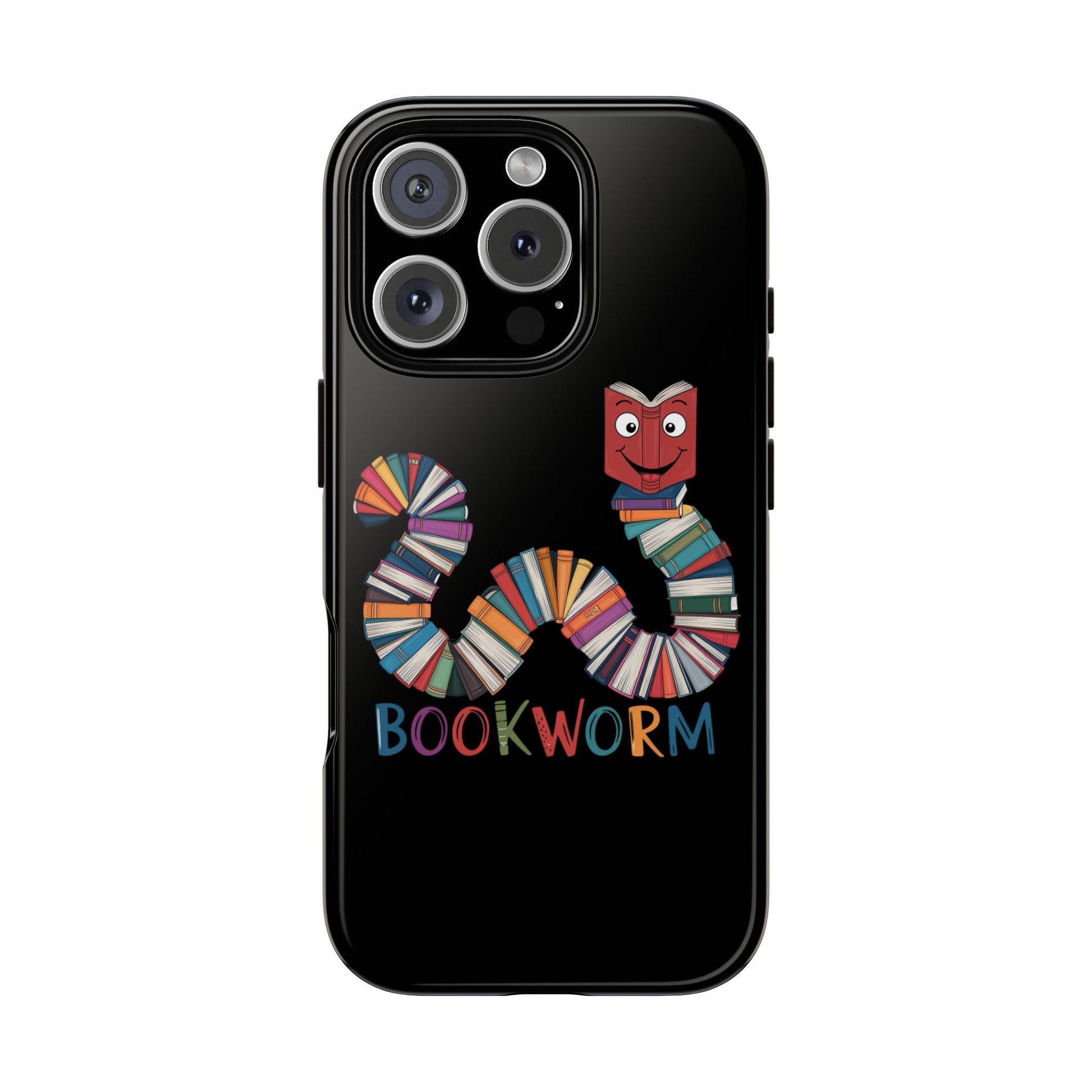 A fun iPhone case with a worm made from books that says "Bookworm". Perfect for book lovers and avid readers, this phone case adds a touch of whimsy to your everyday style. Great for those who enjoy unique accessories and want to showcase their love for literature. Ideal for gifting during birthdays, Christmas, or as a special treat for yourself.