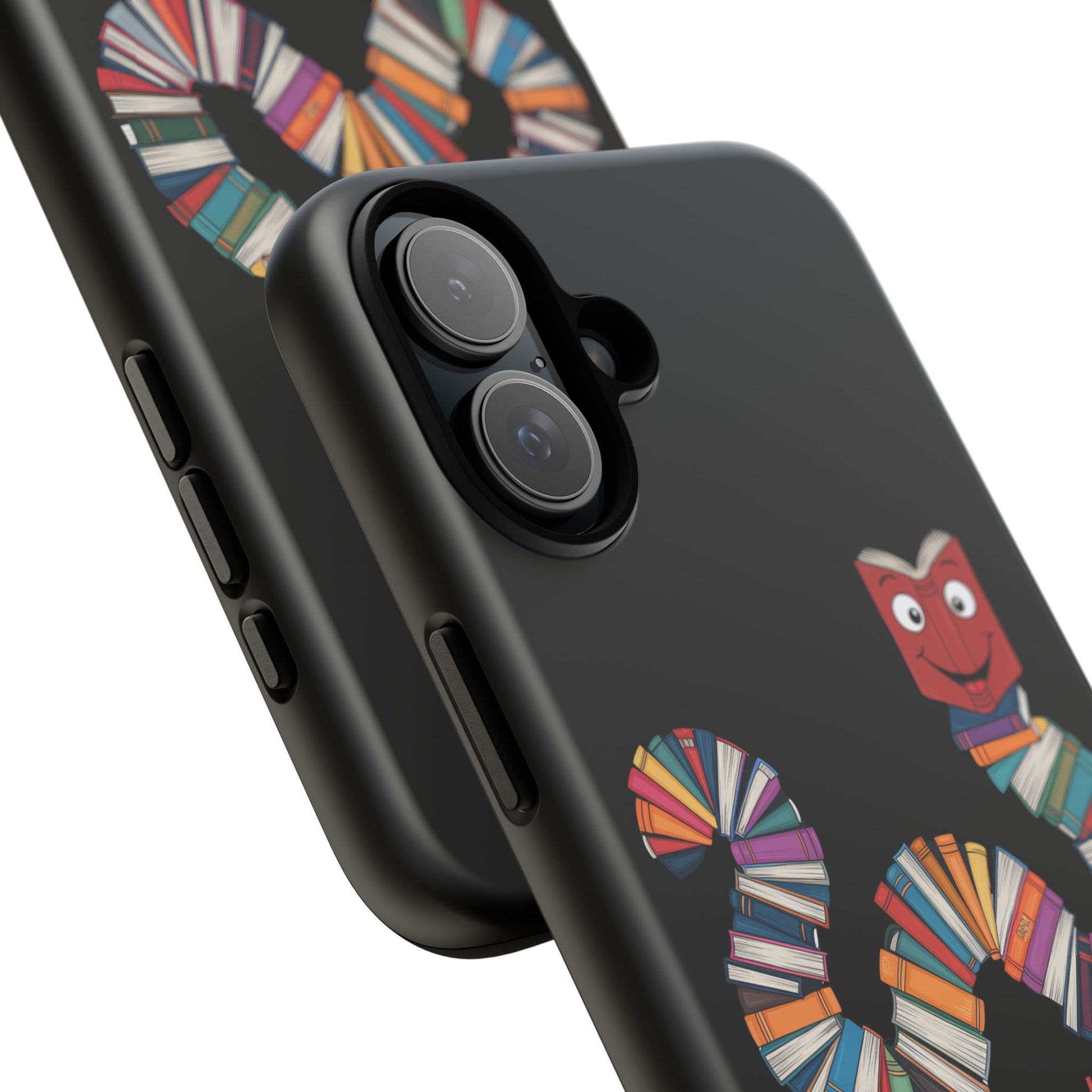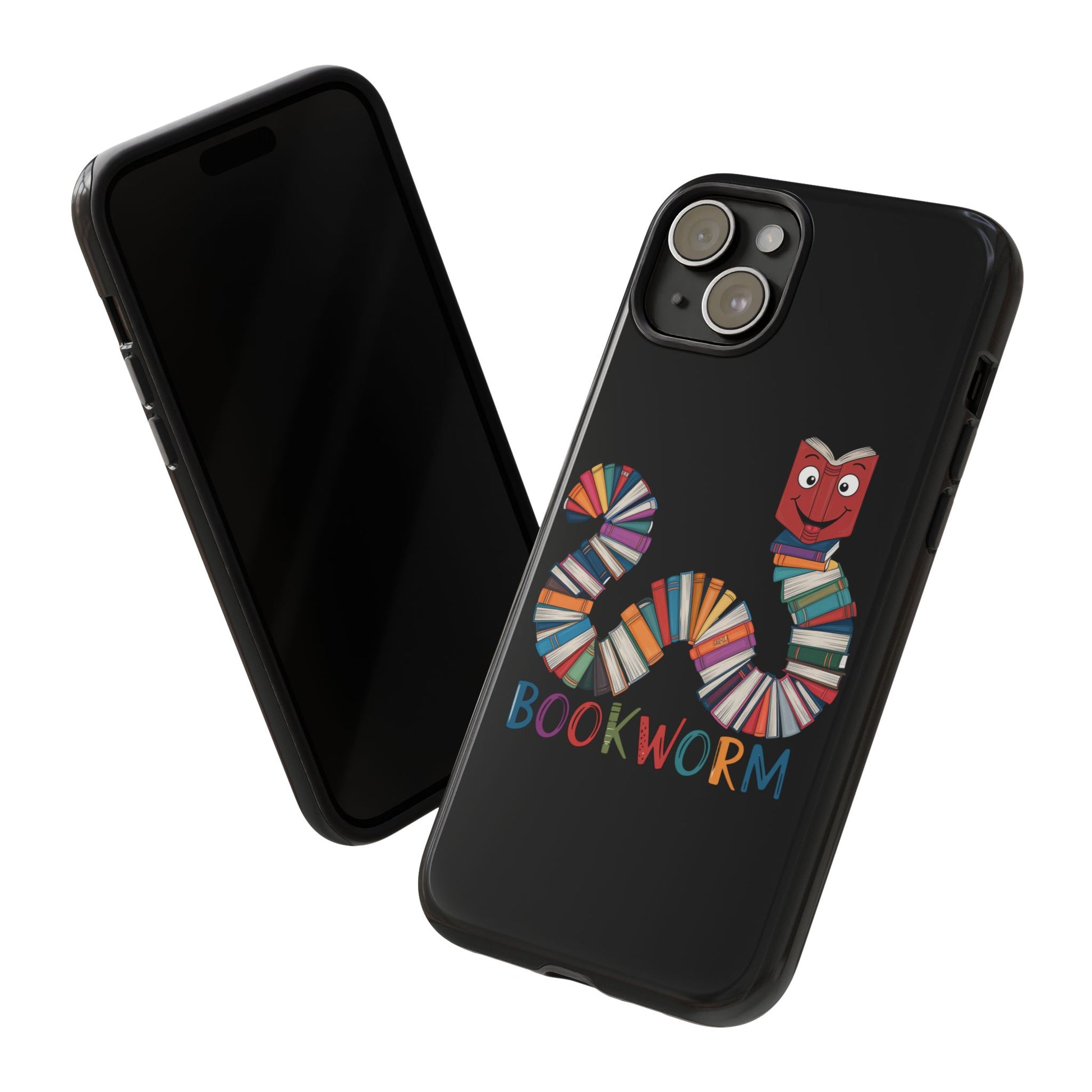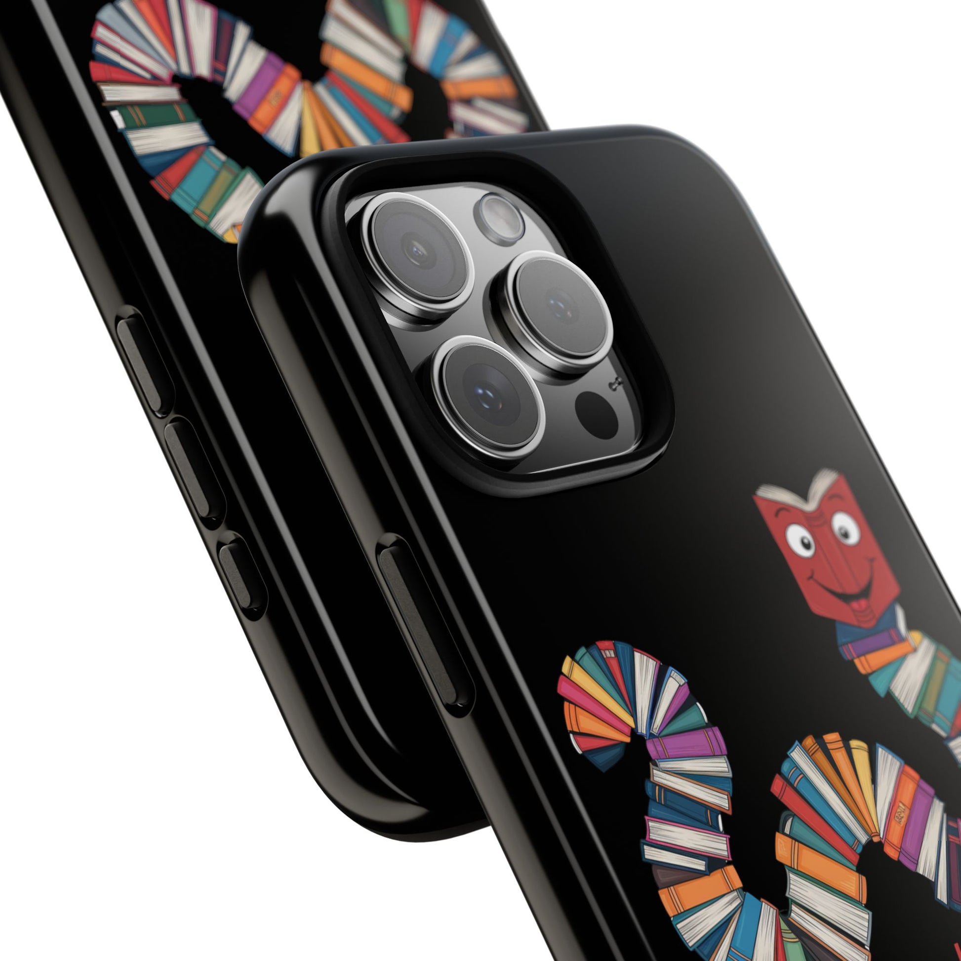 A fun iPhone case with a worm made from books that says "Bookworm". Perfect for book lovers and avid readers, this phone case adds a touch of whimsy to your everyday style. Great for those who enjoy unique accessories and want to showcase their love for literature. Ideal for gifting during birthdays, Christmas, or as a special treat for yourself.