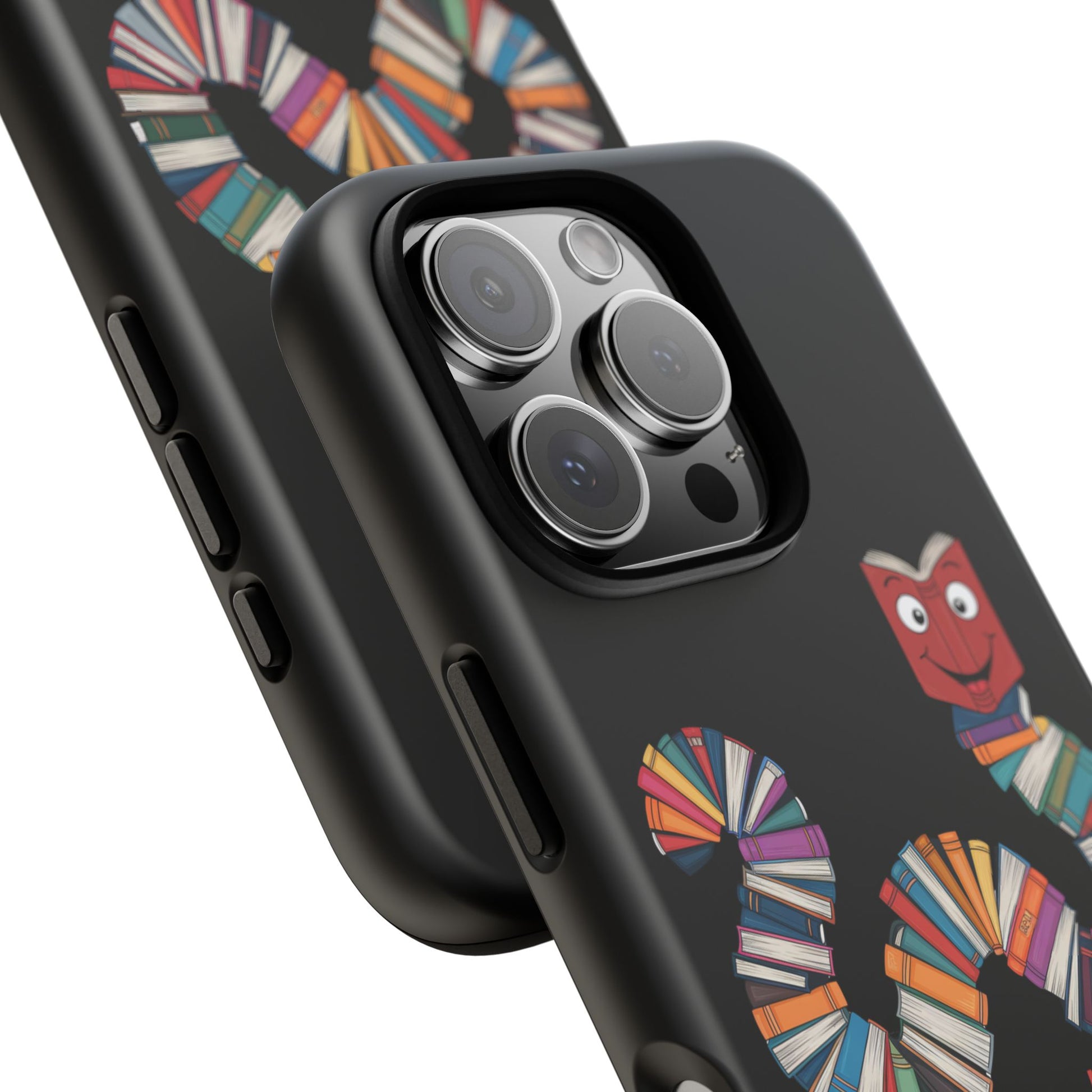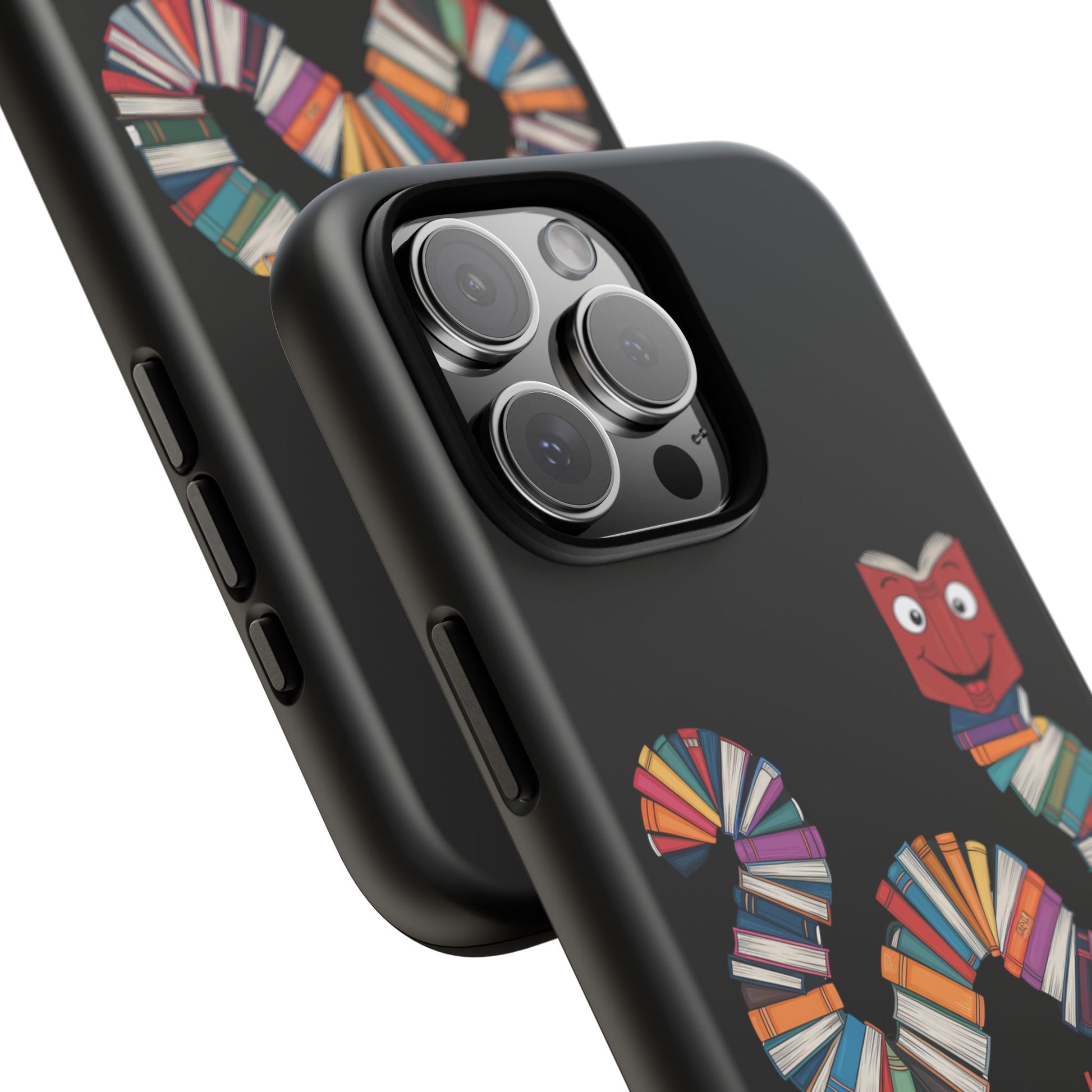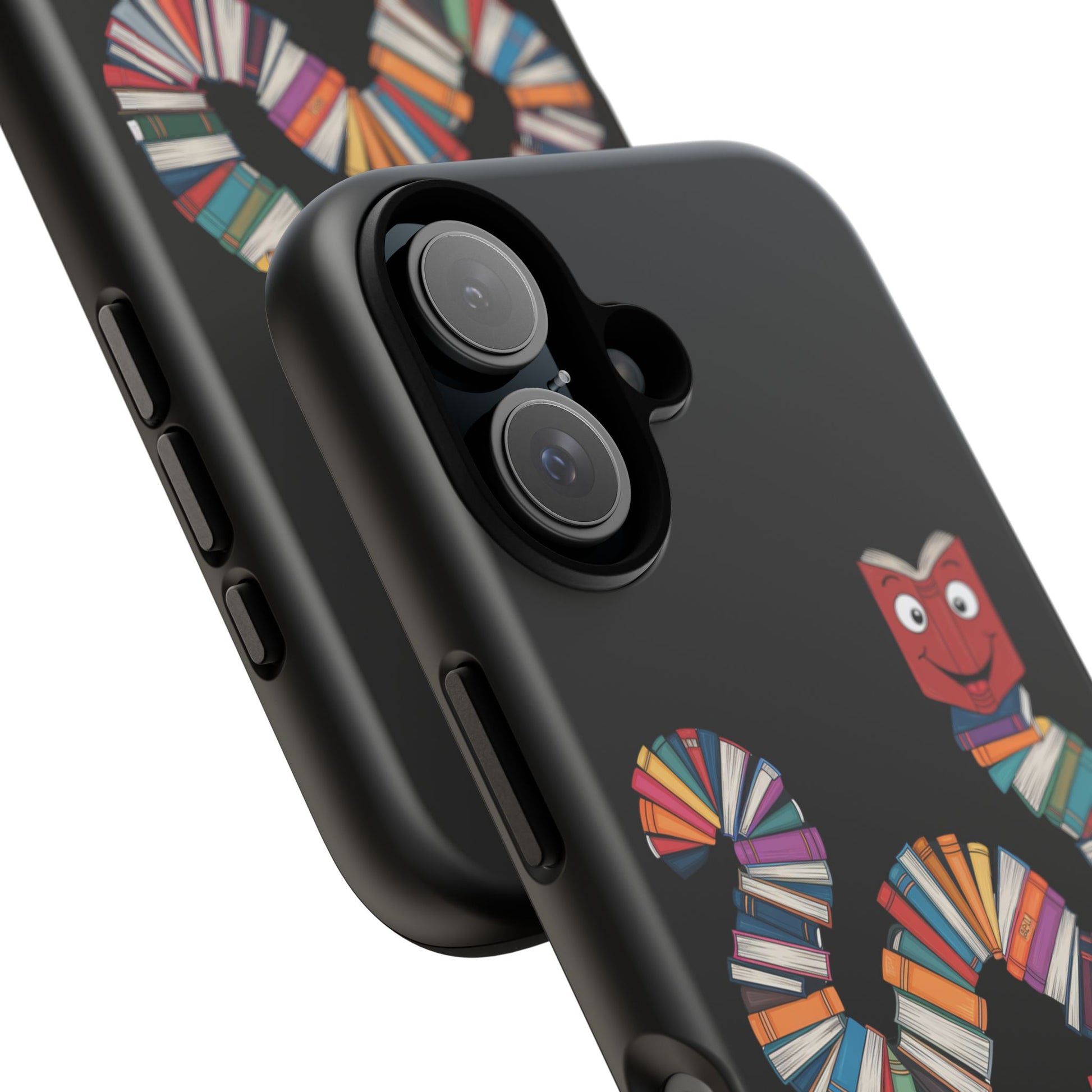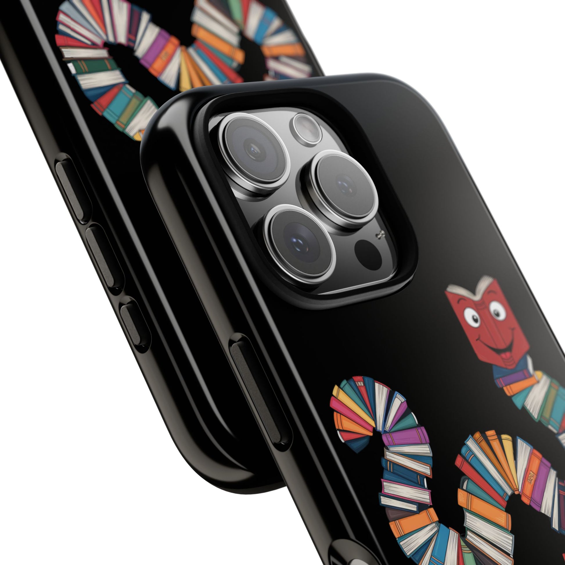 A fun iPhone case with a worm made from books that says "Bookworm". Perfect for book lovers and avid readers, this phone case adds a touch of whimsy to your everyday style. Great for those who enjoy unique accessories and want to showcase their love for literature. Ideal for gifting during birthdays, Christmas, or as a special treat for yourself.