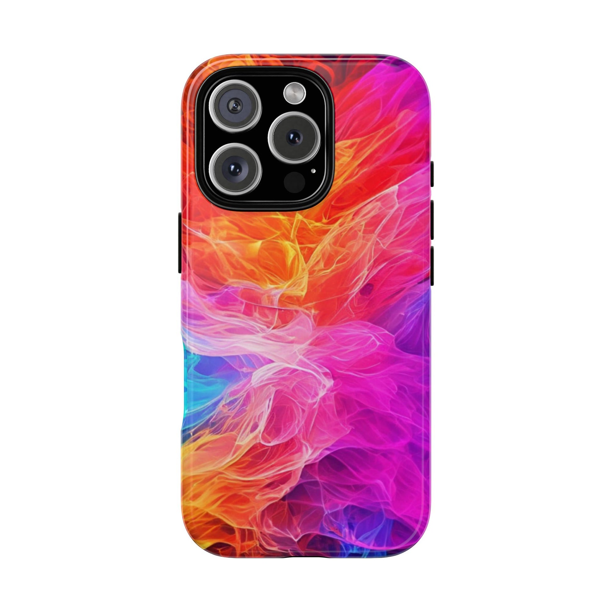 A fun tough iPhone case with a splash of color on it. This phone case offers excellent protection against drops and tears, with a durable and impact resistant design. Suitable for adults, this phone case is perfect for adding a pop of color to your phone while keeping it safe from everyday wear and tear. Ideal for those who want a stylish and protective phone case for their device, this product is relevant for birthdays, holidays, and everyday use.