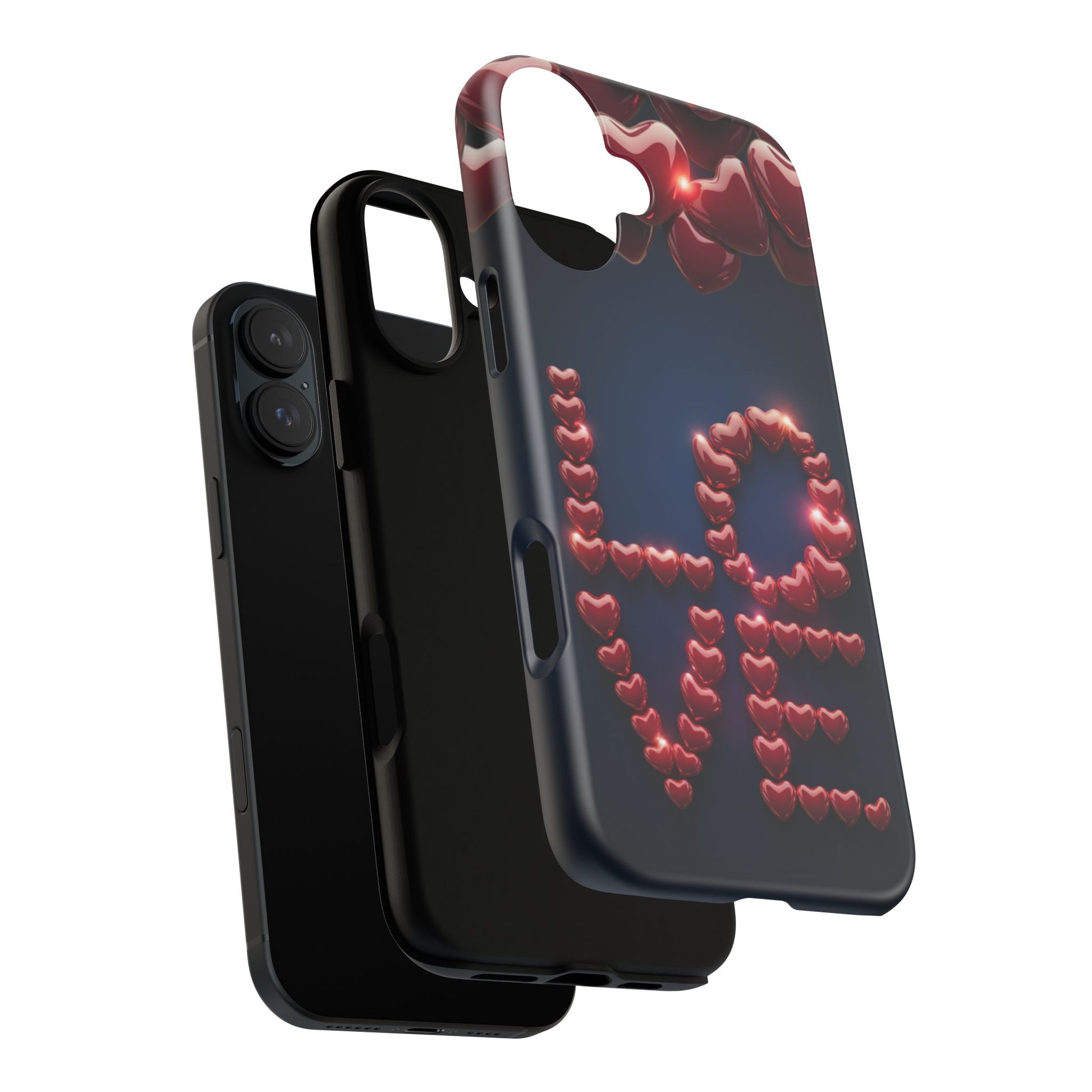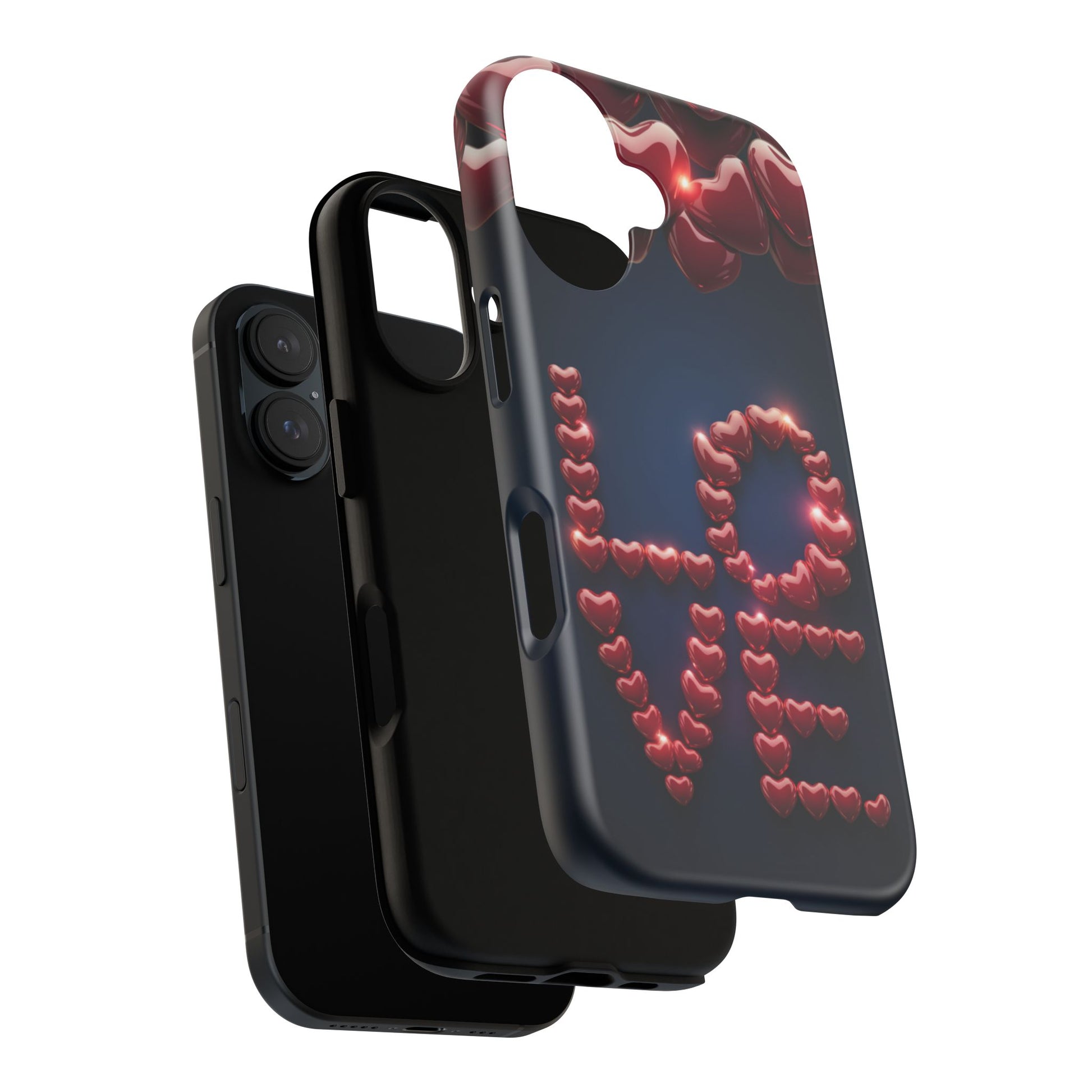 A fun iPhone case with the word Love spelled out of hearts, giving a cute and romantic vibe. Perfect for those looking to protect their phone in style while showcasing their love for others. Ideal for adults and suitable for occasions like Valentine's Day, anniversaries, or birthdays.
