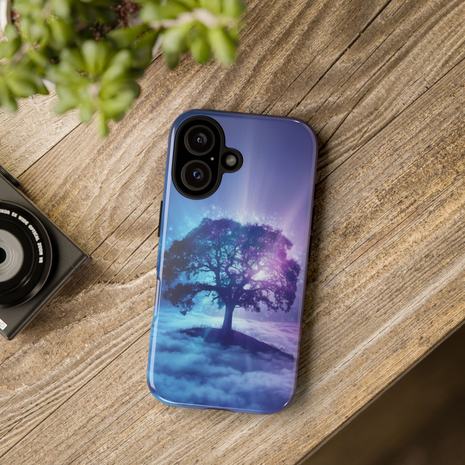 A fun iPhone case featuring a dreamy tree in the clouds design. This phone case gives off a whimsical and dreamy vibe, perfect for adding a touch of creativity to your everyday life. Ideal for adults who appreciate unique and artistic accessories. Relevant for holidays, birthdays, or as a special gift for nature lovers and dreamers.