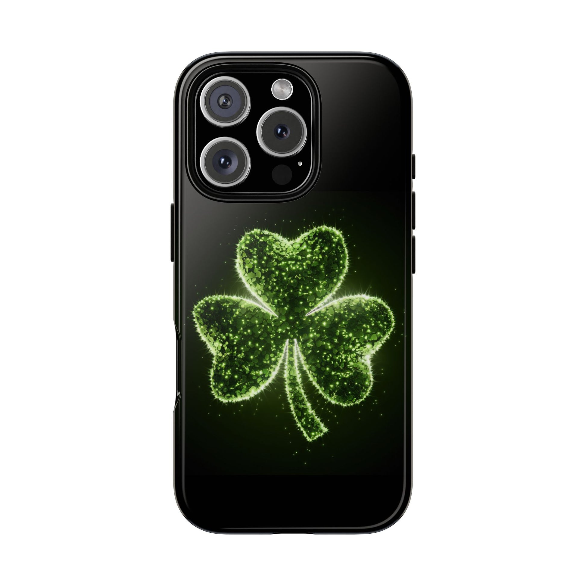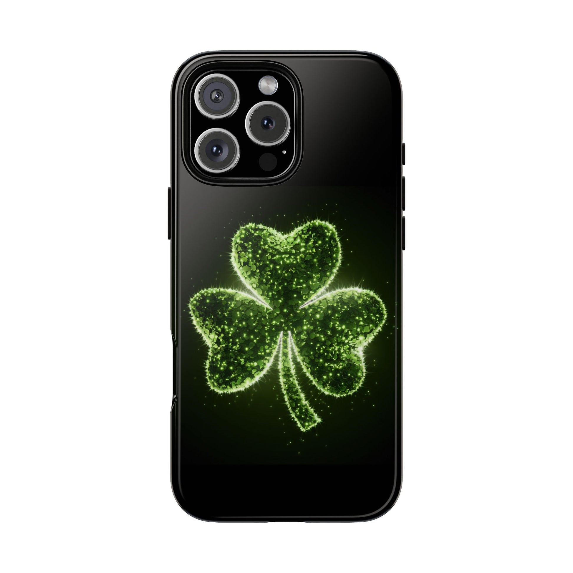 A fun iPhone cover with a shiny Shamrock on it, providing a festive and playful vibe. Perfect for those looking to protect their phone with a touch of luck. Relevant for St. Patrick's Day celebrations and Irish culture enthusiasts.