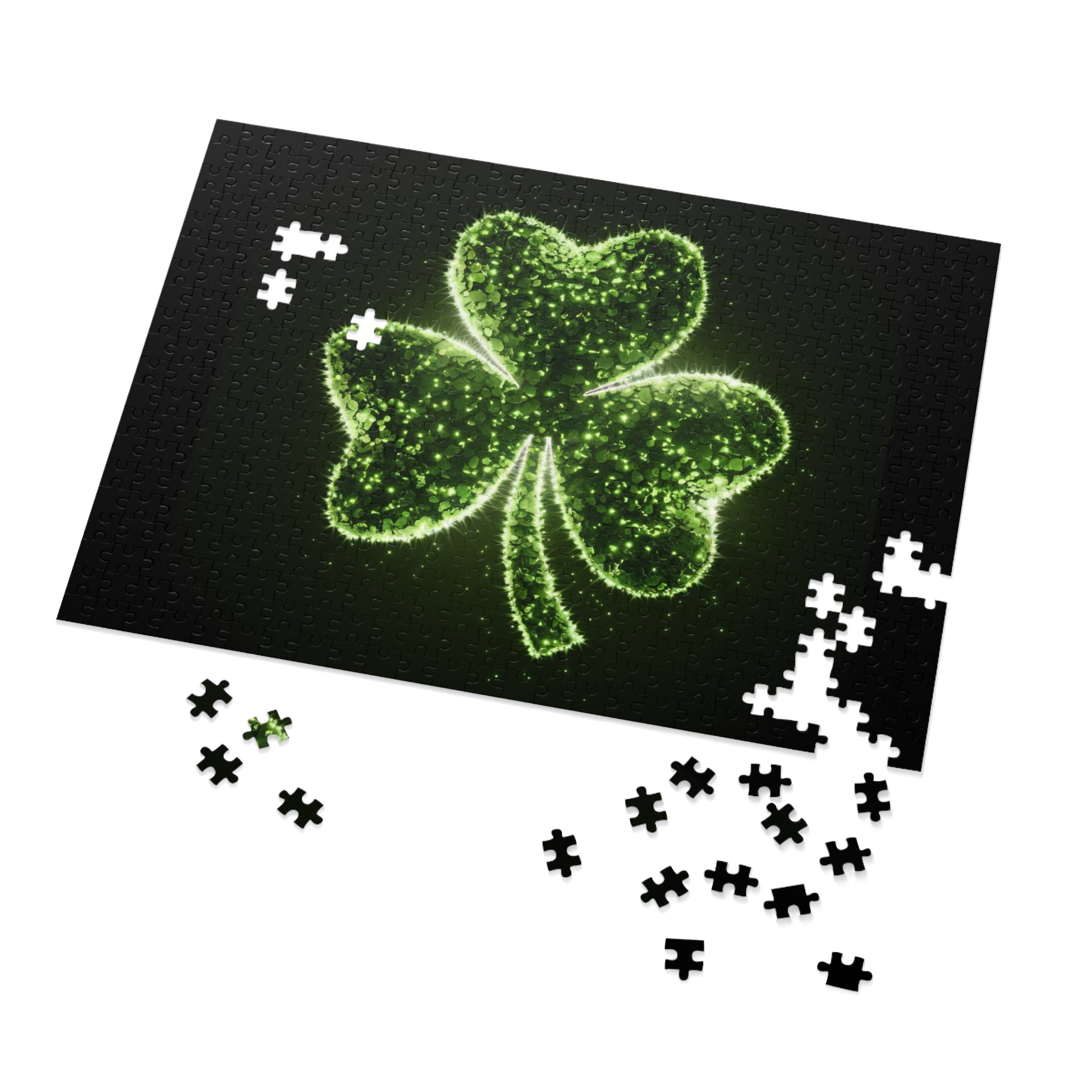 A fun jigsaw puzzle with a shiny shamrock, perfect for St. Patrick's Day enthusiasts. This puzzle is a great way to relax and unwind, and it makes a wonderful gift for puzzle lovers.