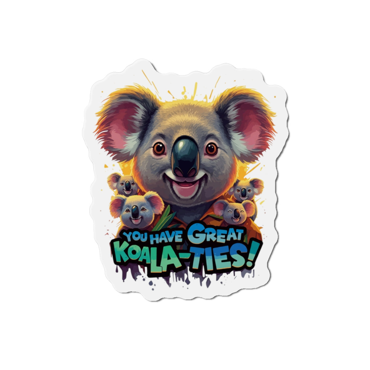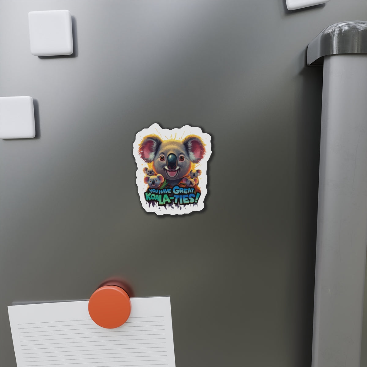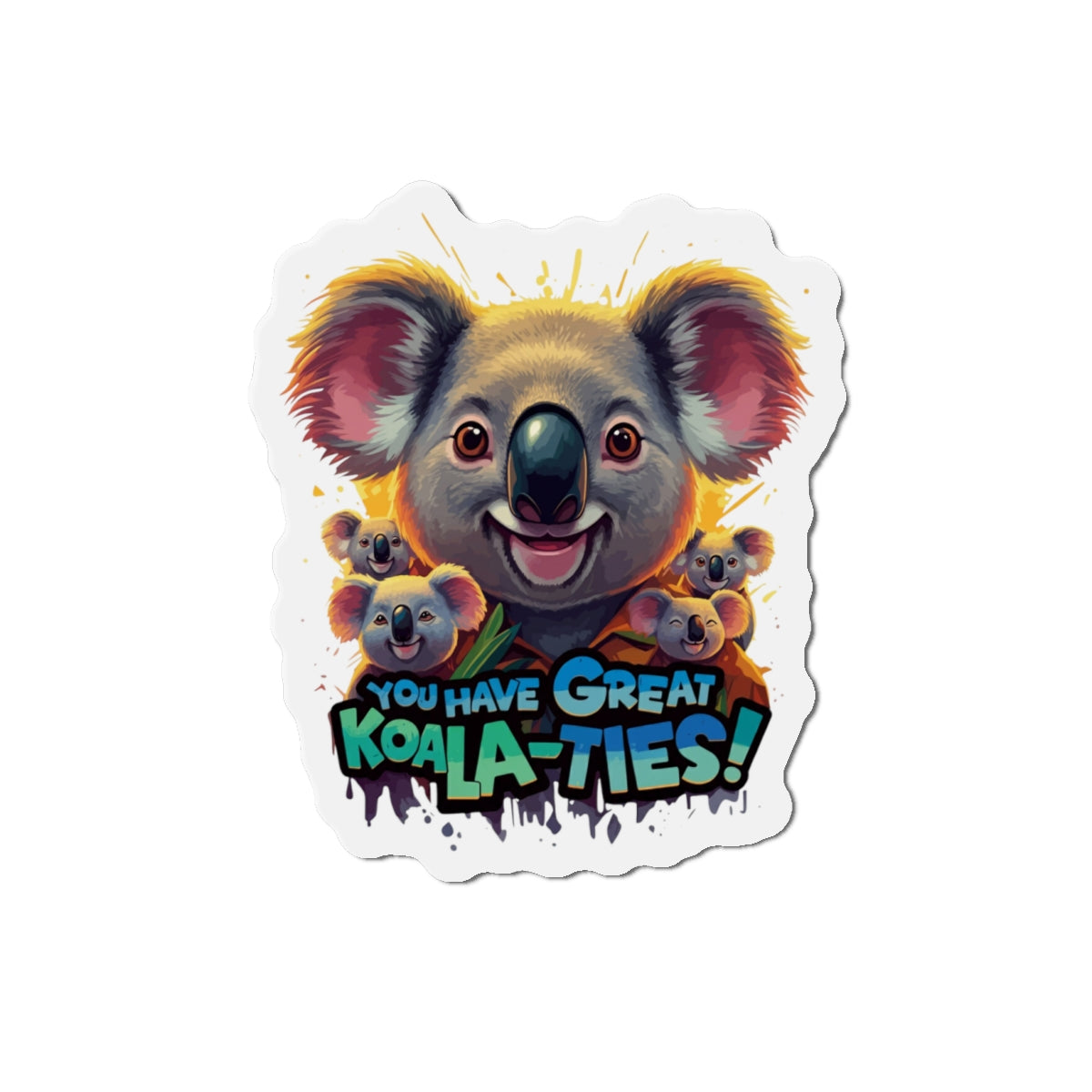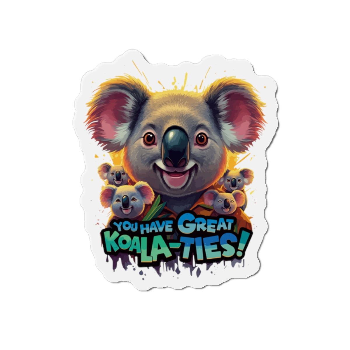 A fun magnet featuring Koala characters with the phrase 'You Have Great Koala-ties'. This magnet adds a touch of cuteness to any magnetic surface and makes a great gift for animal lovers or those who appreciate puns. Perfect for decorating refrigerators, lockers, or magnetic whiteboards. Ideal for those looking to add a bit of whimsy to their space.