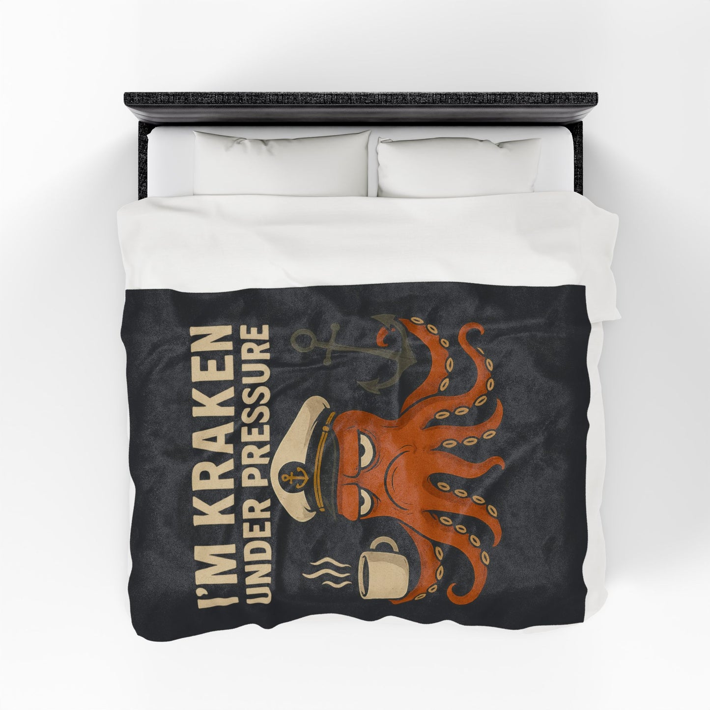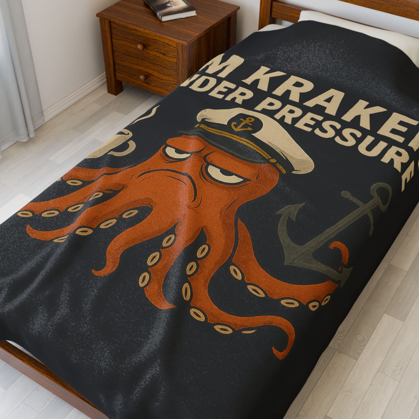 Kraken Under Pressure Plush Blanket - Fun Nautical Decor for Cozy Nights Beach Themed Throw Ocean Decoration