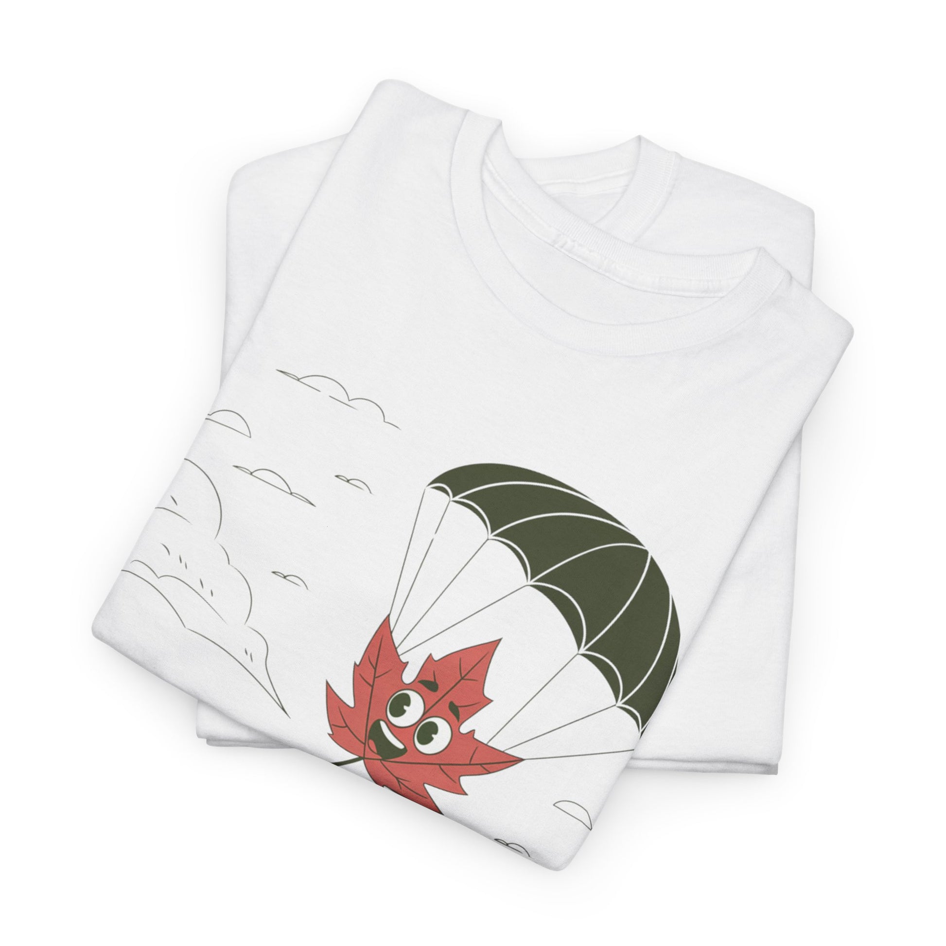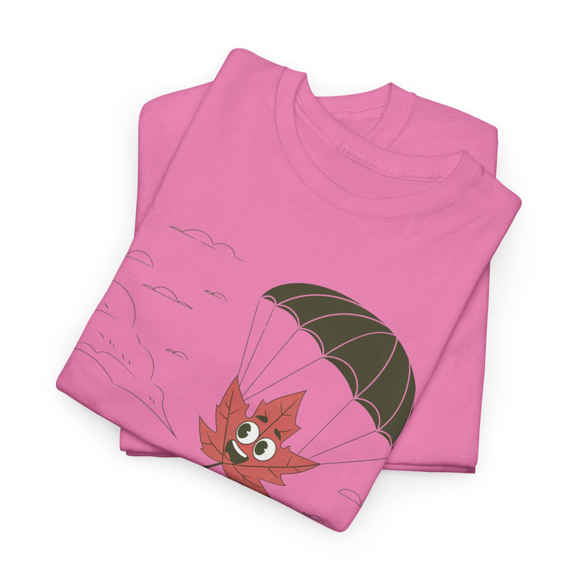 Meet your new favorite shirt: the “Be‑Leaf In Yourself Maple Leaf Parachute T‑Shirt.” Featuring an adorable maple leaf parachuting off a cliff, this playful graphic delivers a powerful message: believe in yourself, even when you're taking the leap.