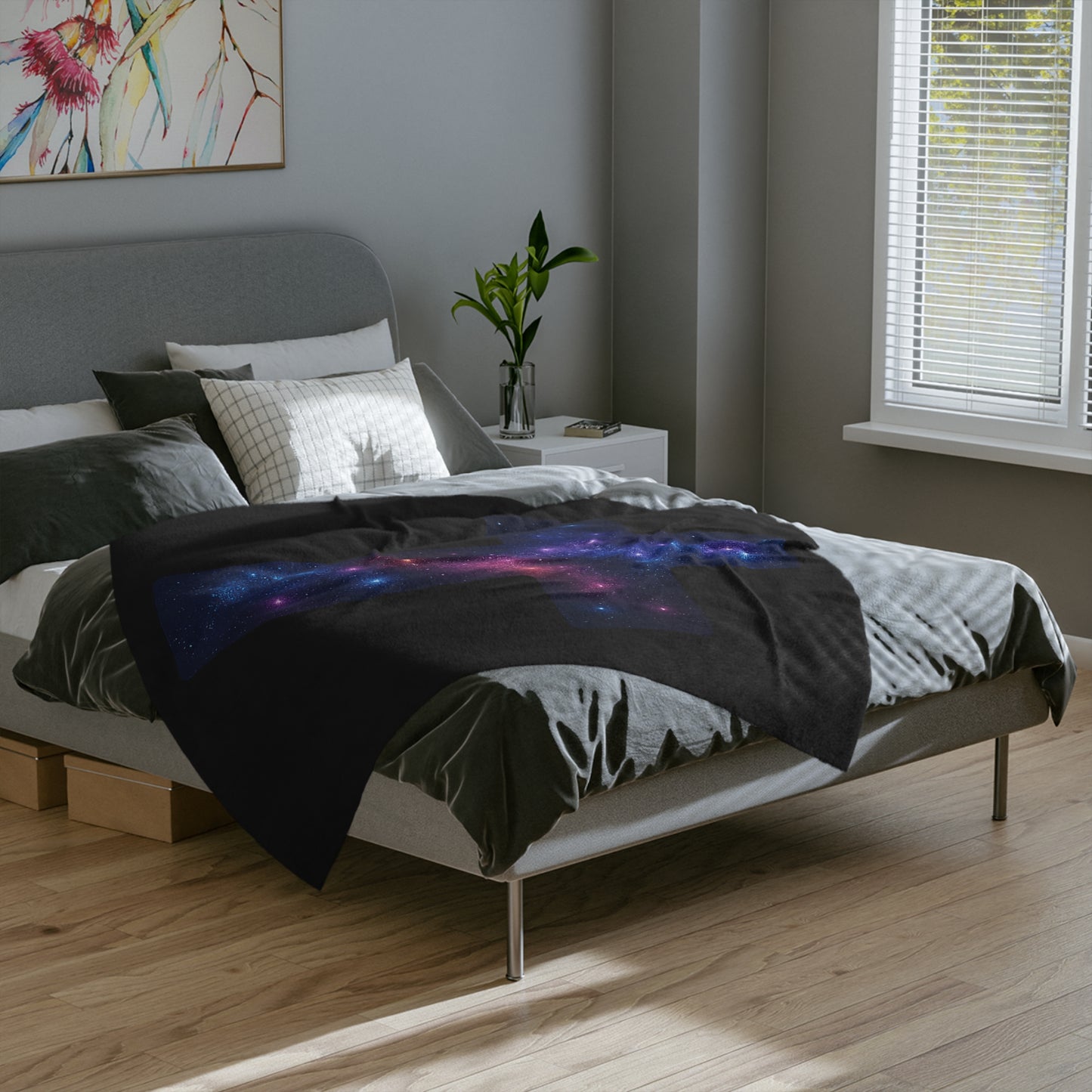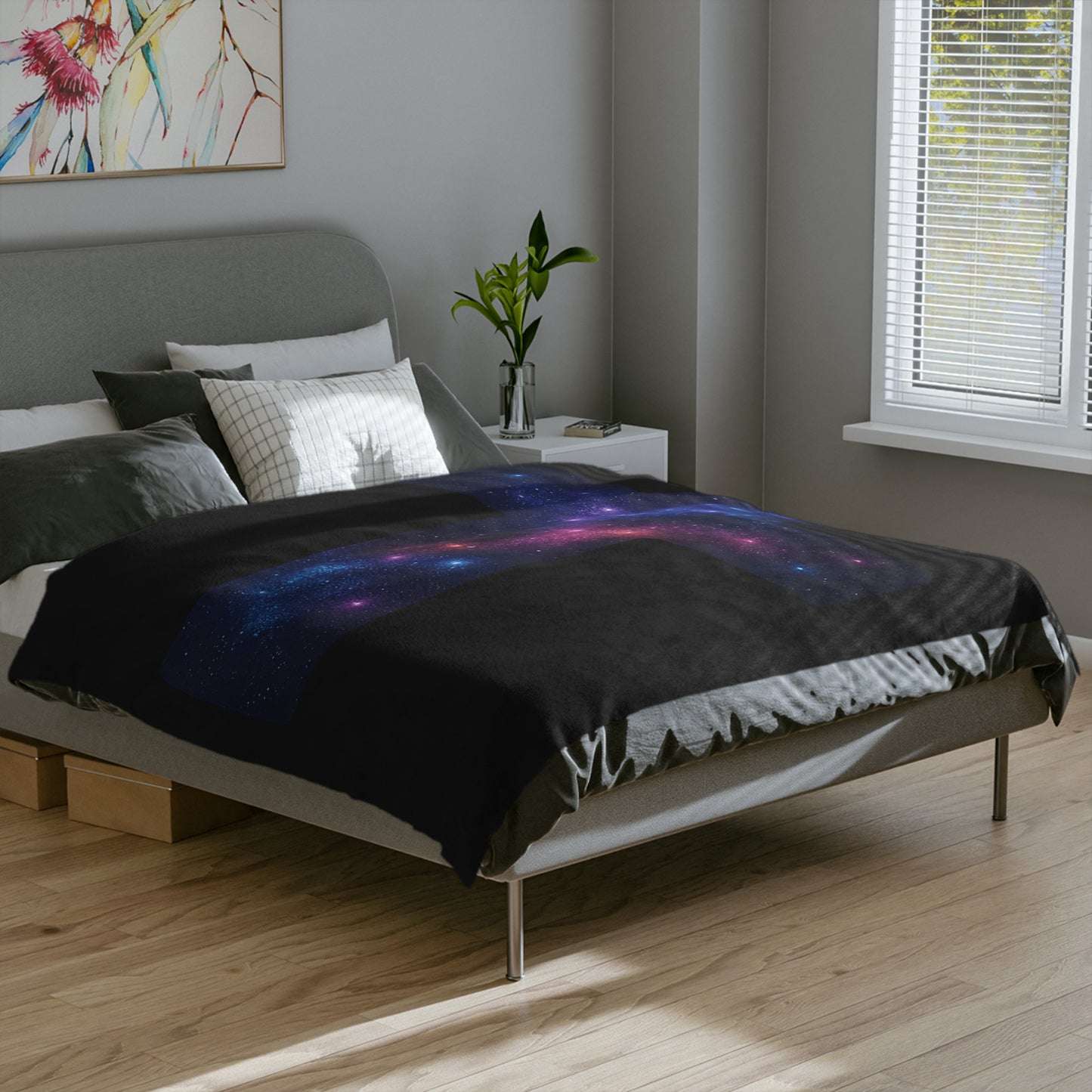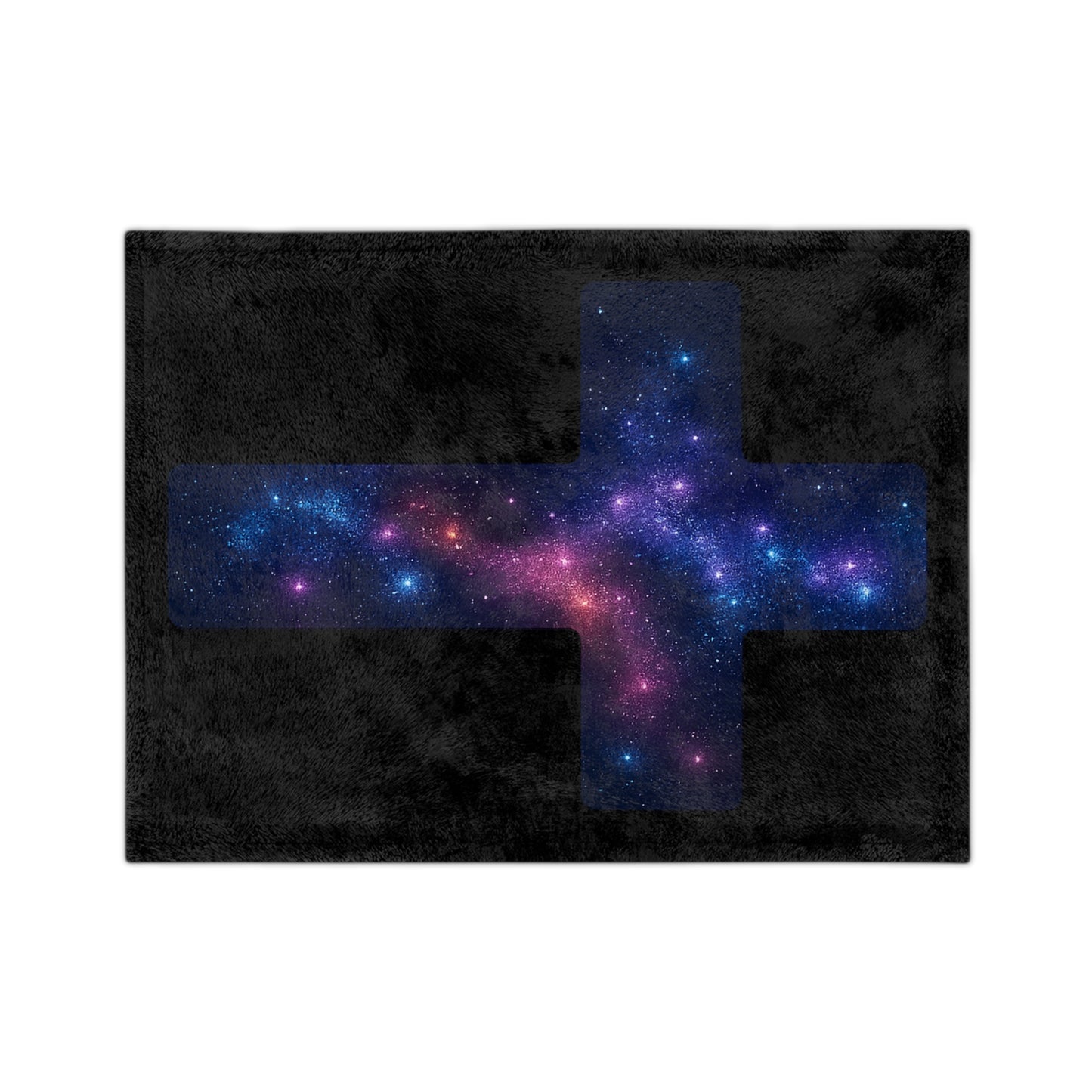 A fun blanket with a cosmic cross design, perfect for those who love cosmic and mystical vibes. This velveteen microfiber blanket is soft, plush, and durable, making it ideal for cozying up on the couch or adding a pop of color to your bedroom decor. Great for space enthusiasts and those who enjoy unique and vibrant designs. Perfect for gifting during the holiday season, birthdays, or any special occasion.