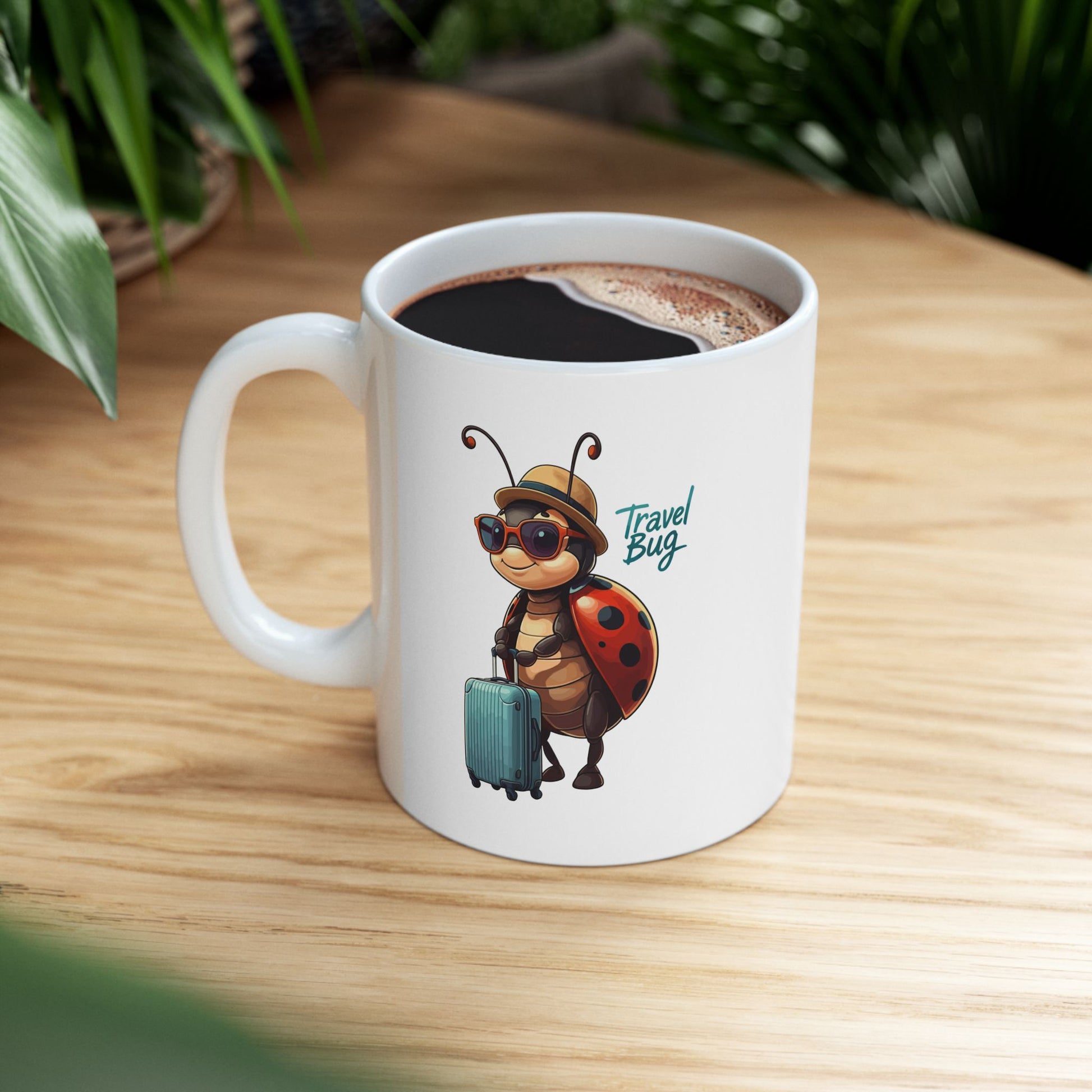 Travel Bug Coffee Mug – Cute Ladybug Traveler Ceramic Mug, Whimsical Travel Gift, Eco-Friendly Kitchen Cup for Bug Lovers