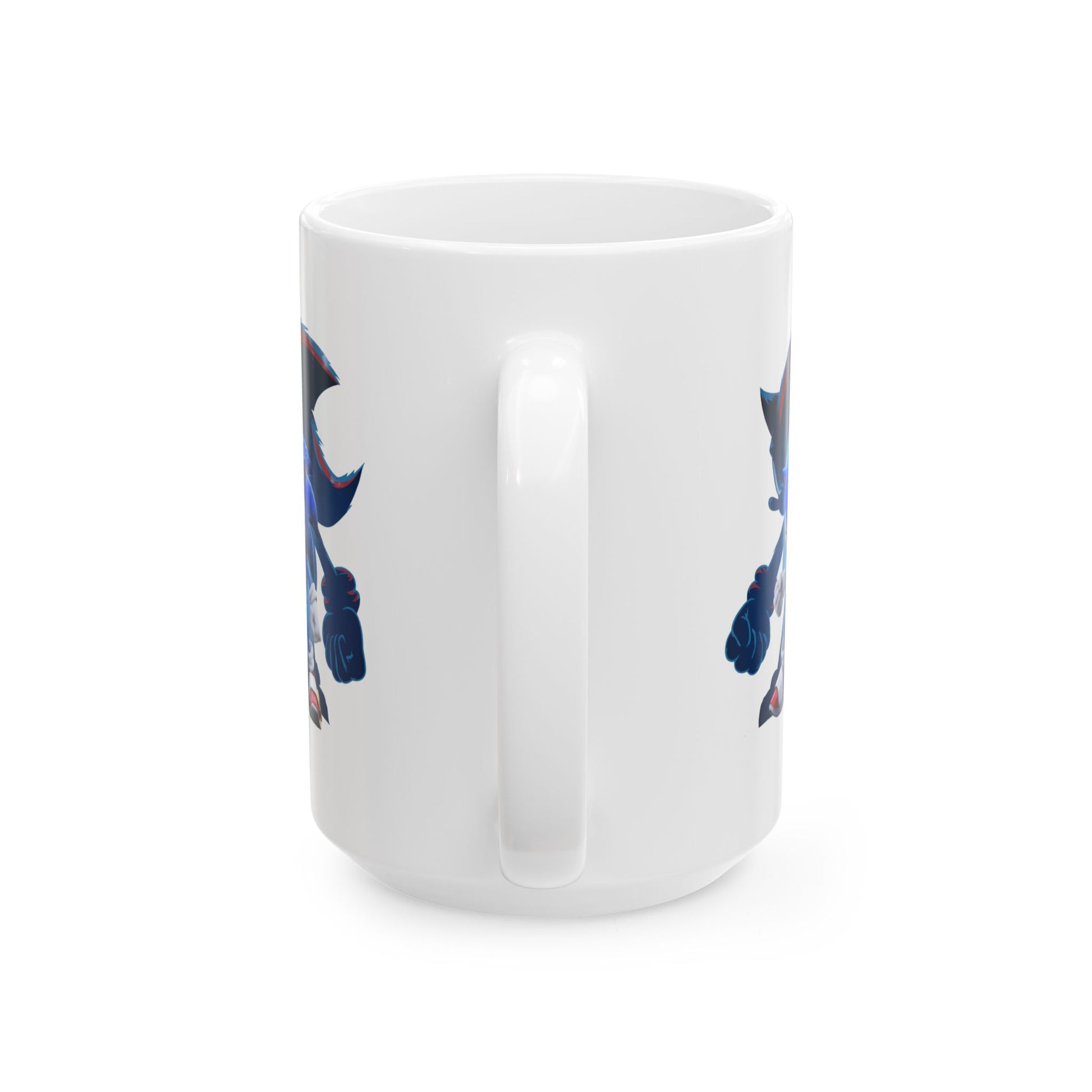 Blue Speed Hero Mug – Epic Gaming Hedgehog Coffee Cup with Dark Rival Silhouette – Video Game Inspired Gift for Fans & Collectors
