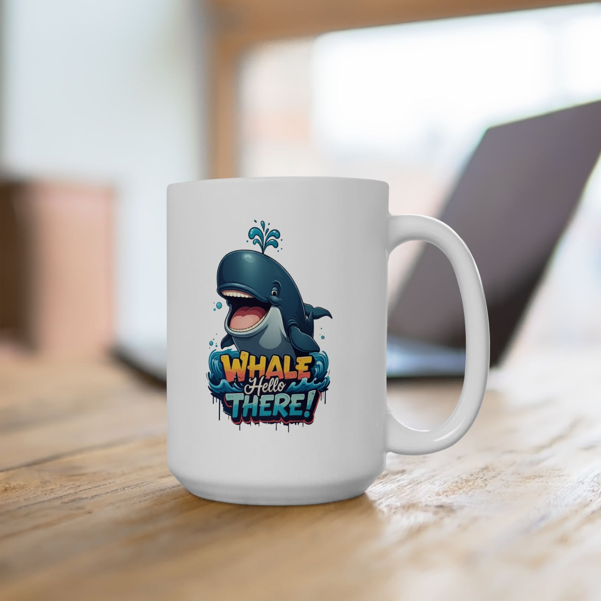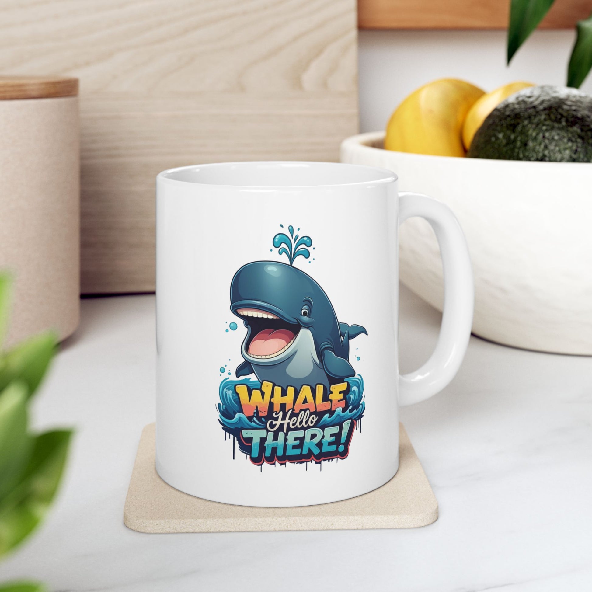 Whale Hello There Mug – Cute Ocean Whale Cartoon Coffee Tea Cup – Funny Pun Design – Nature Animal Lover Gift – Cottagecore Aesthetic Mug