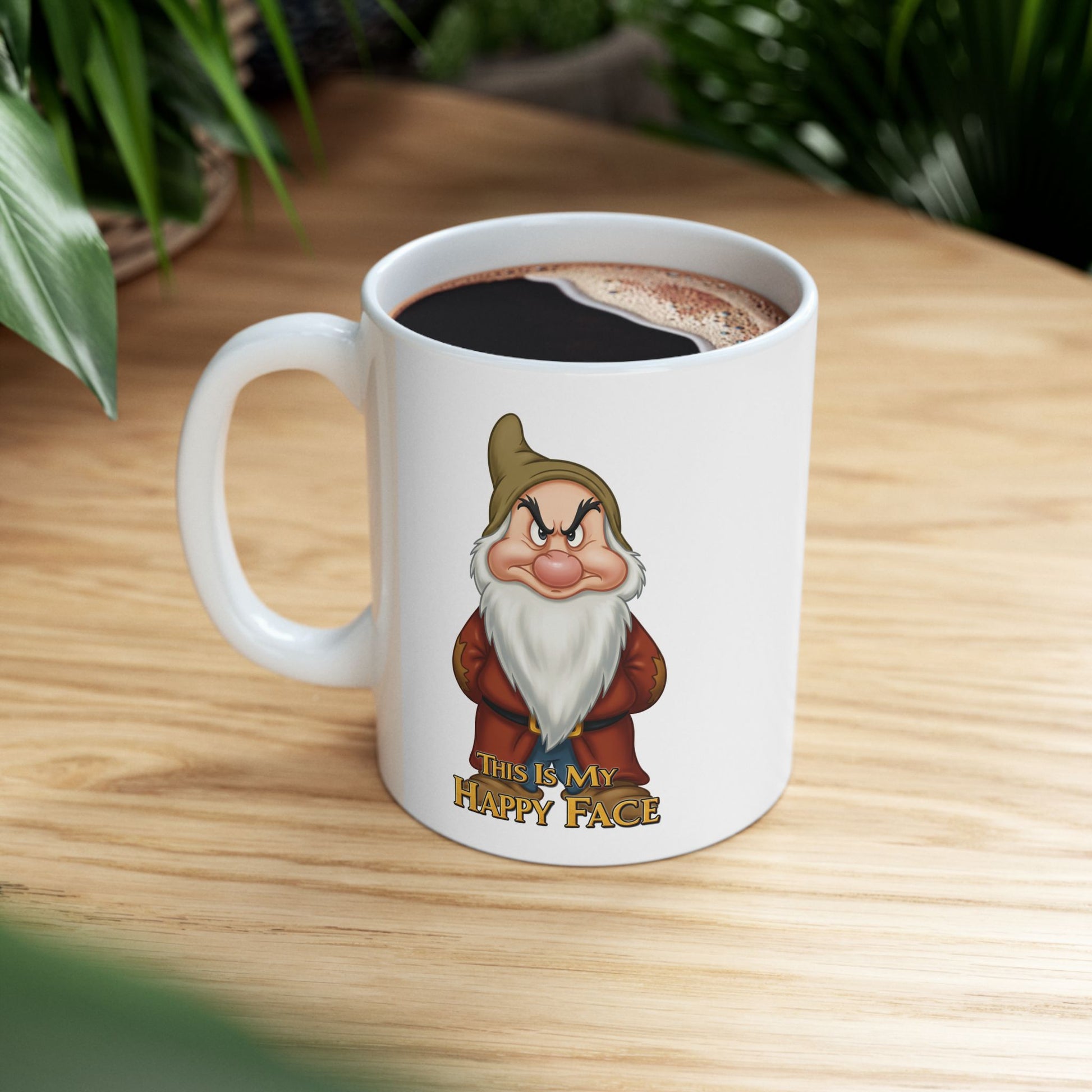 Funny Grumpy Gnome Mug – “This Is My Happy Face” Coffee Cup, Dishwasher Safe Ceramic, Hilarious Gift for Coffee Lovers & Office Humor