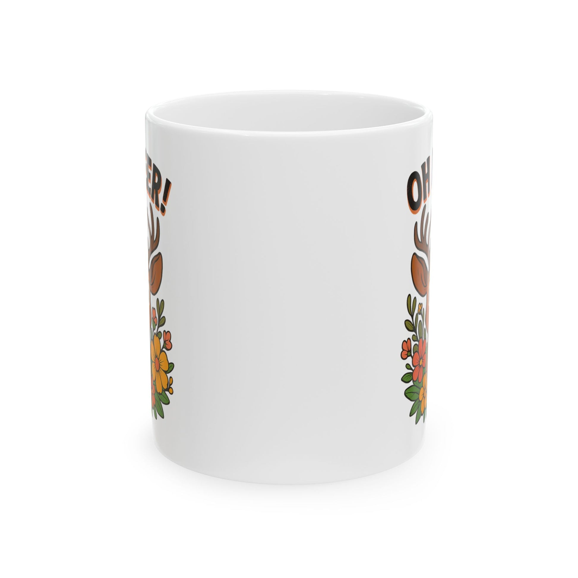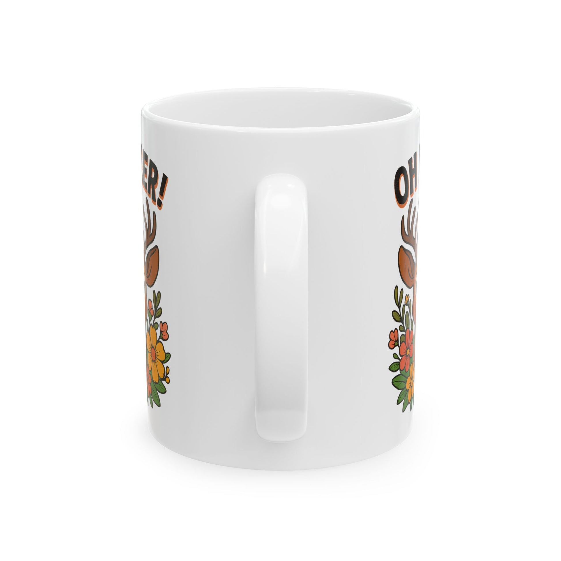 Funny Deer Coffee Mug | Oh Deer Cartoon Cup, Cute Animal Pun Gift, Nature Lover Tea Mug, Whimsical Flower Deer Cup for Wildlife Fans