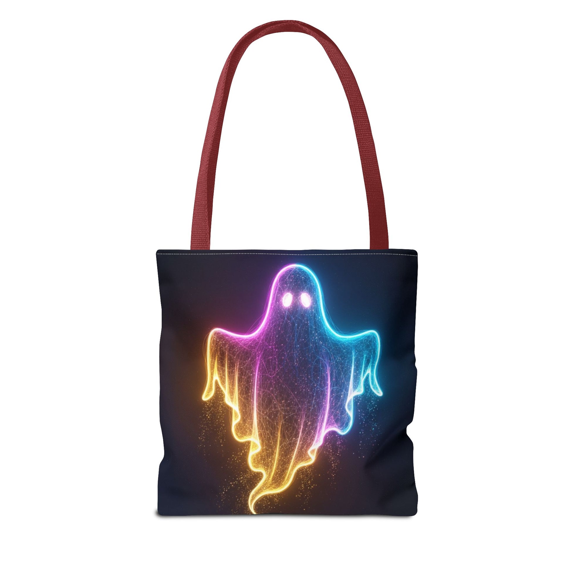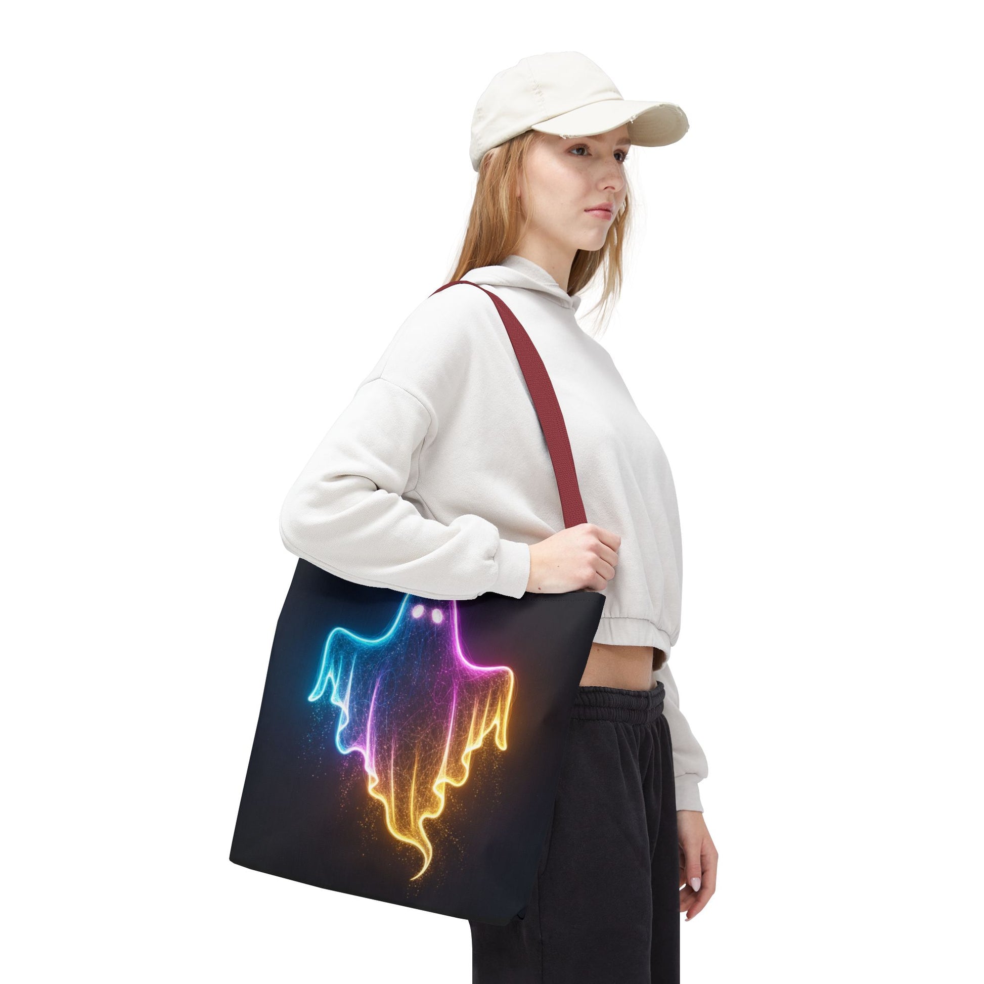Add some haunted charm to your everyday errands with this Neon Ghost Tote Bag. Featuring a vibrant rainbow-neon ghost, this reusable shoulder tote is the perfect mix of spooky and stylish—great for Halloween and beyond!