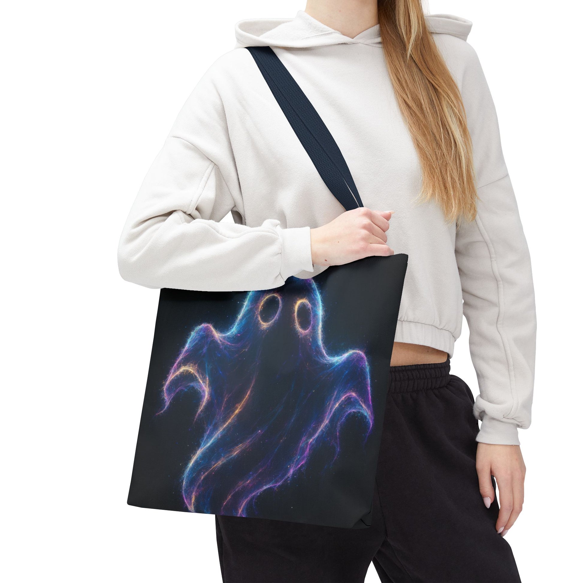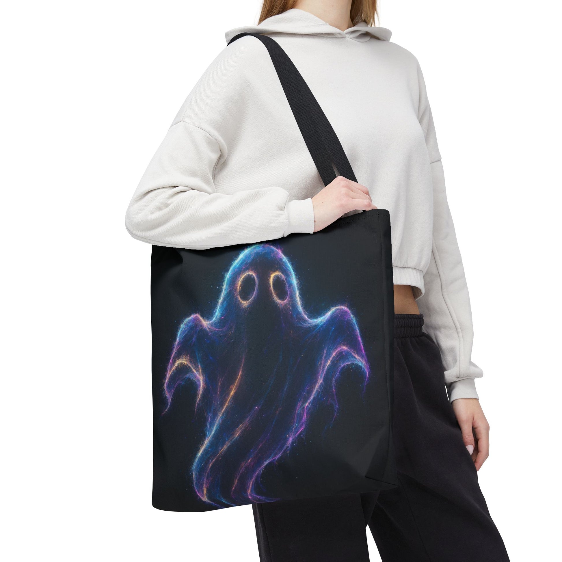 Neon Ghost Tote Bag, Spooky Halloween Canvas Tote, Glowing Cosmic Ghost Design Bag, Reusable Trick Or Treat Tote, Gothic Gift Accessory