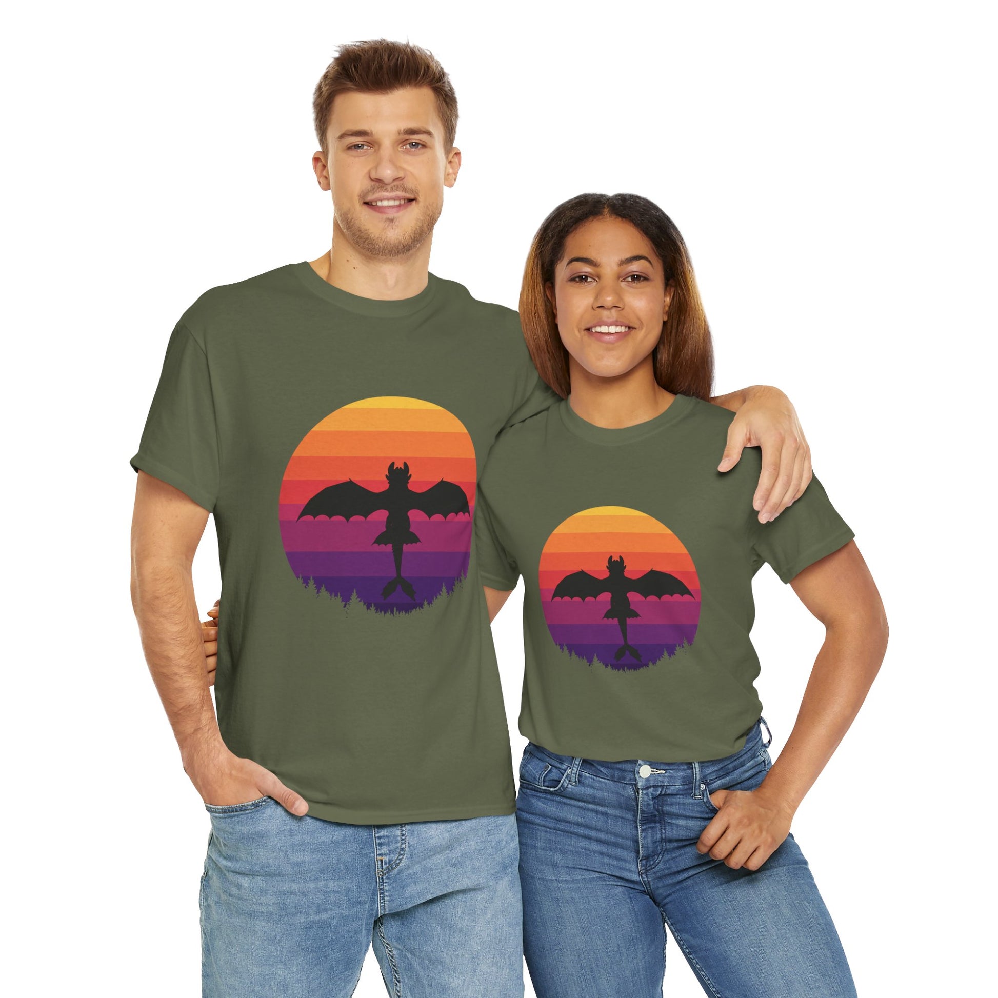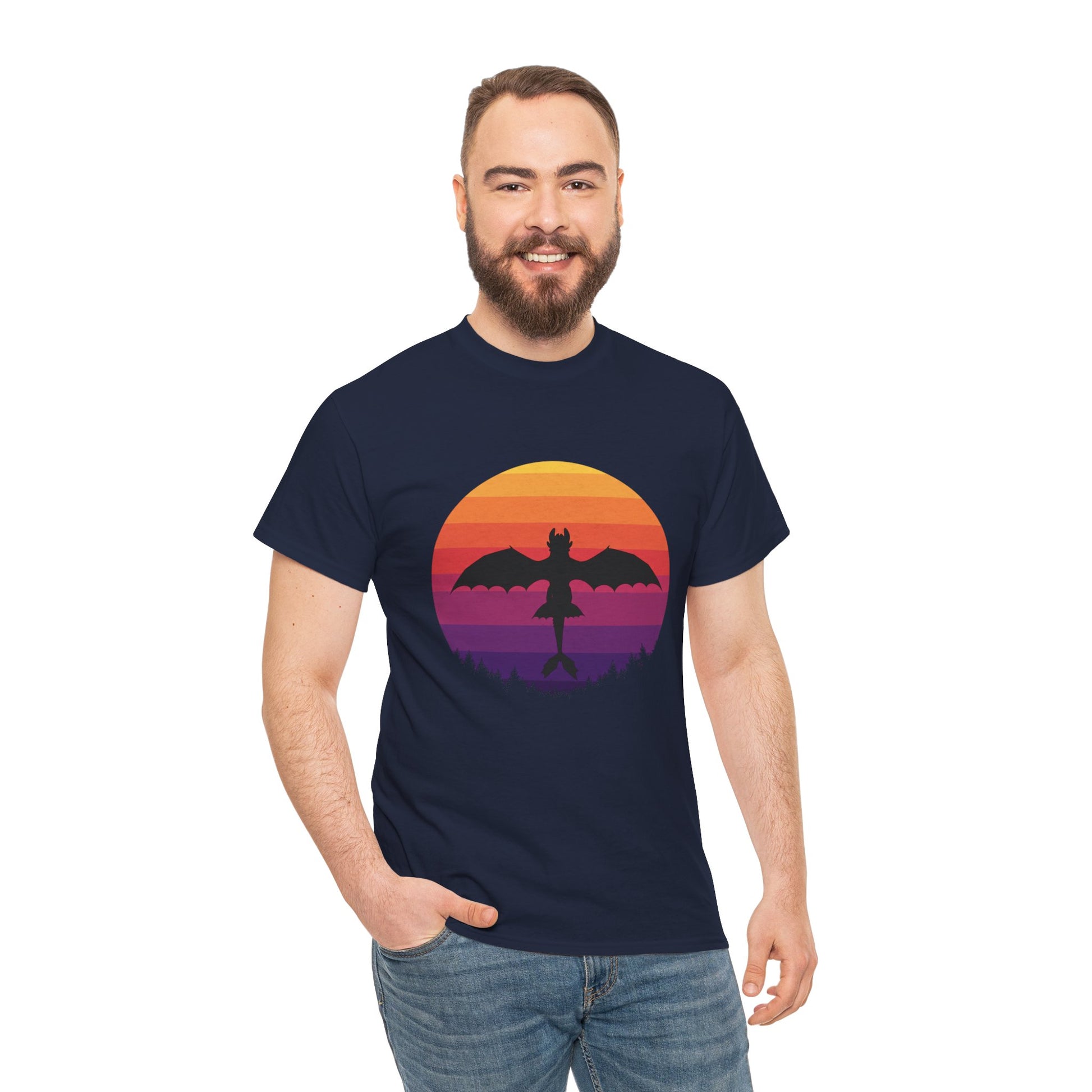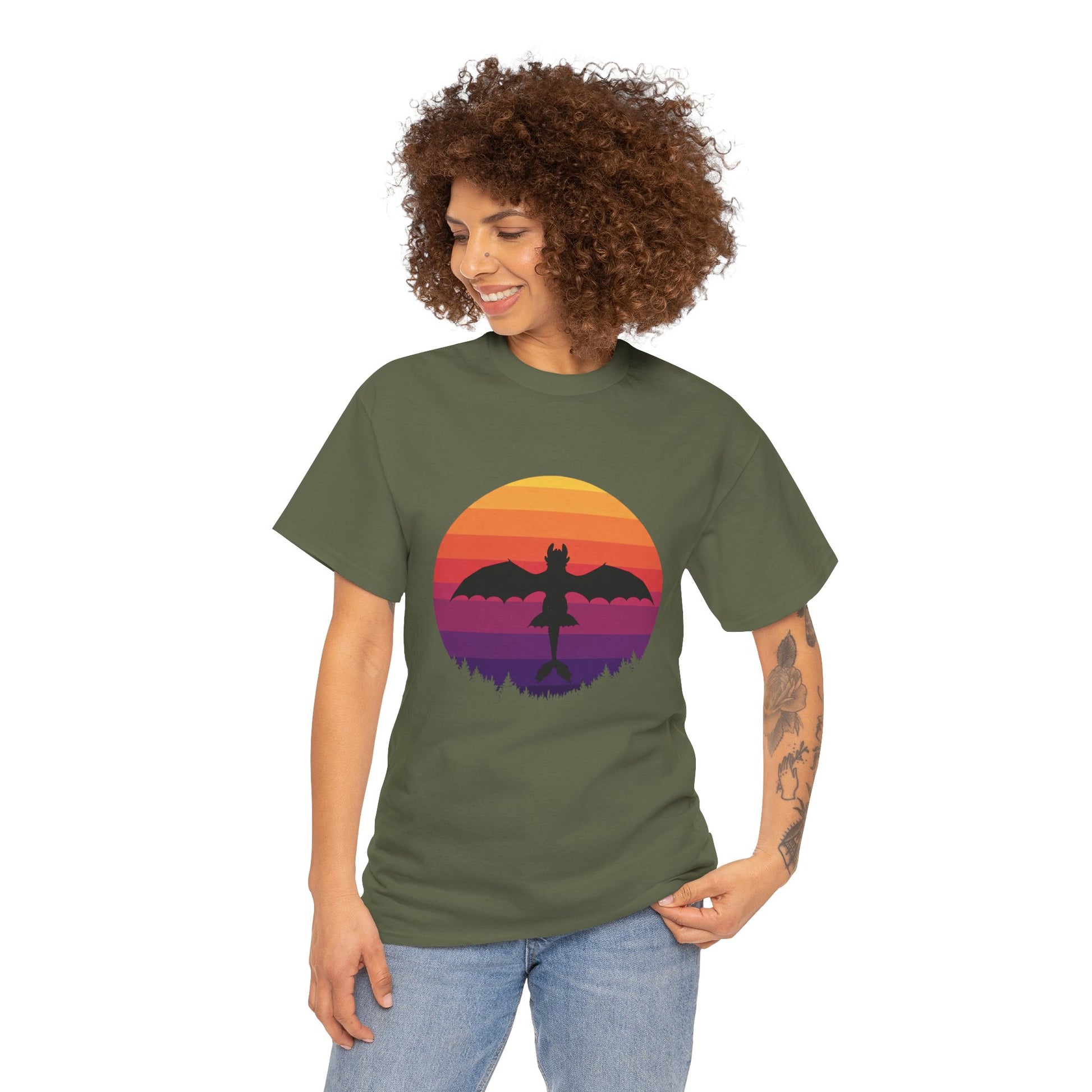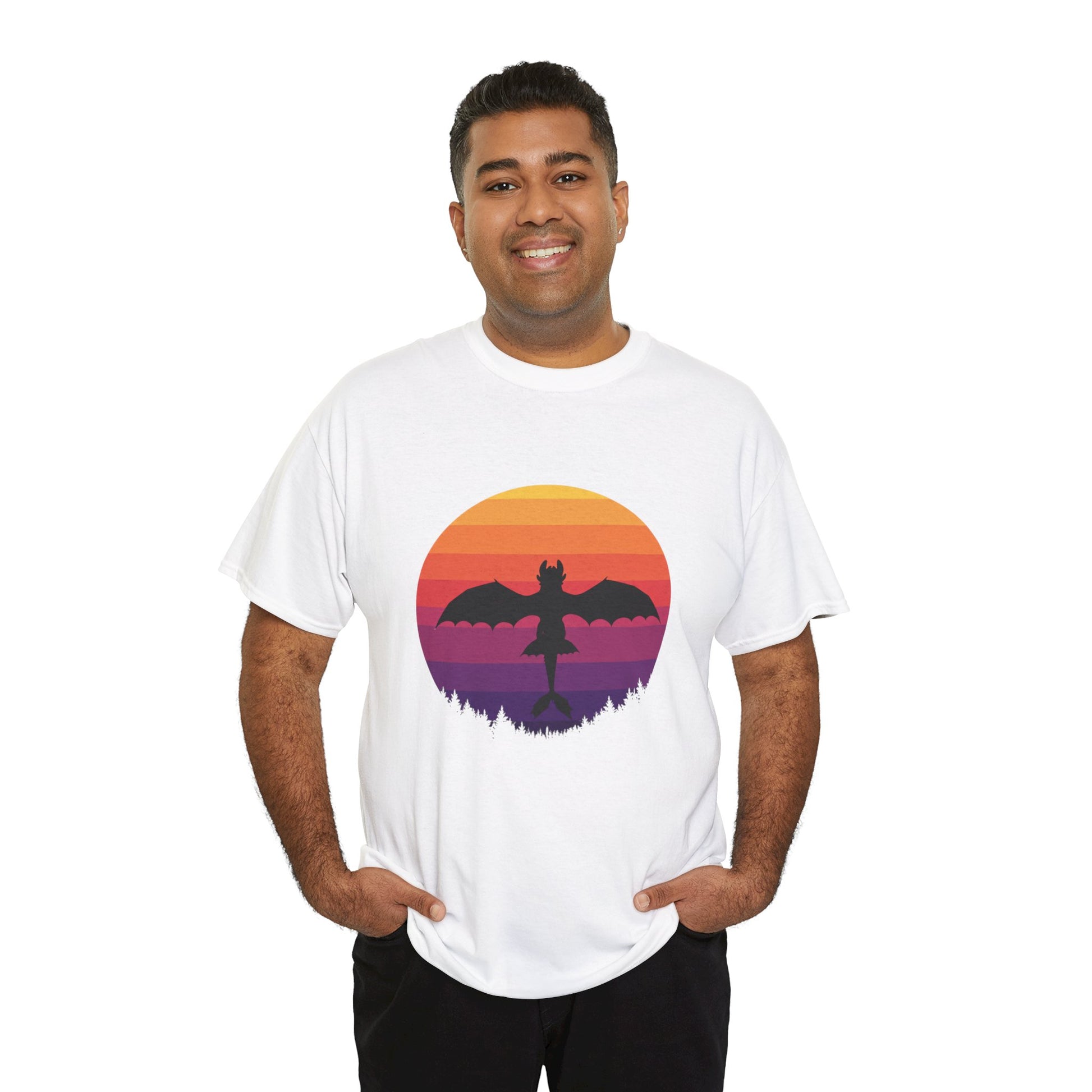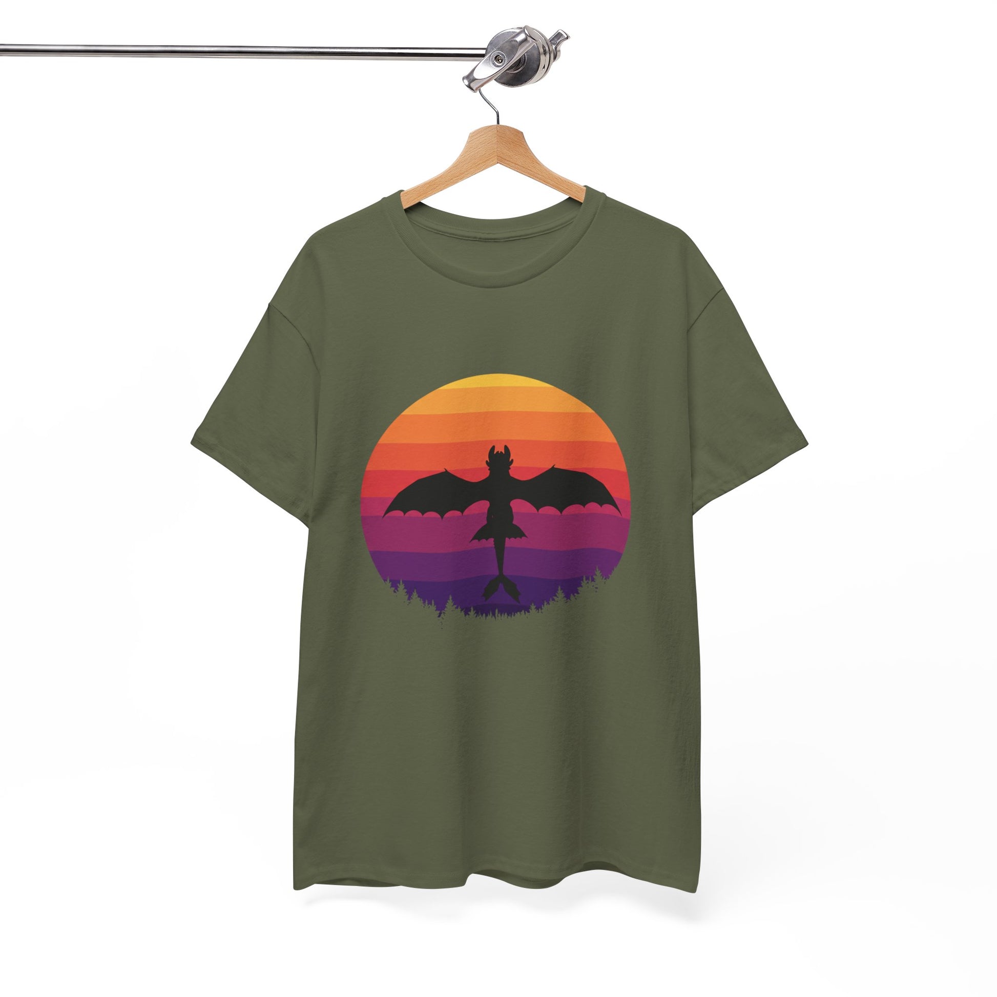 Add a little magic to your wardrobe—grab your Night Dragon Sunset T-Shirt today!