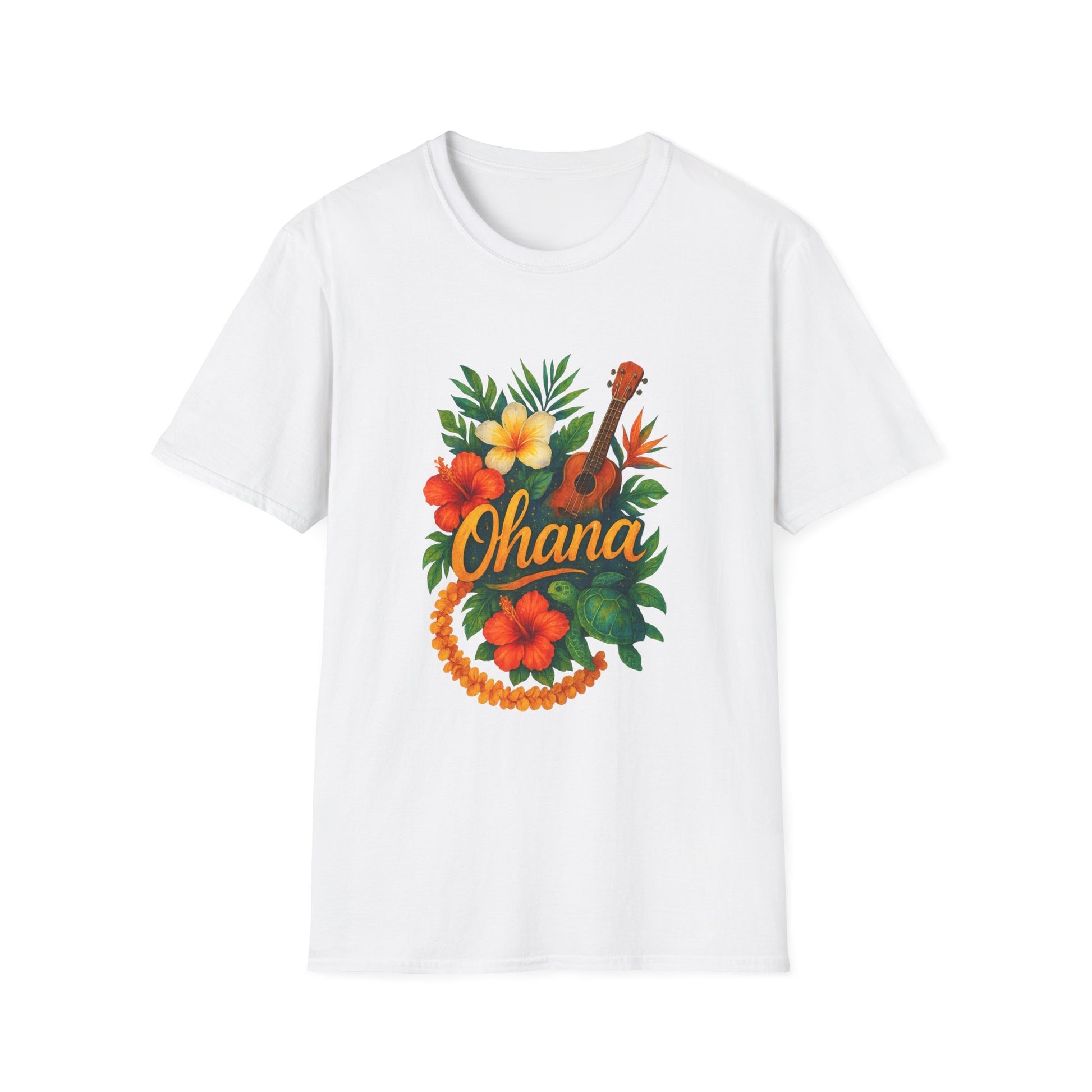 Ohana Hawaiian Shirt | Tropical Family T-Shirt | Luau Vacation Tee | Aloha Summer Shirt | Ukulele Turtle Floral Beach Gift