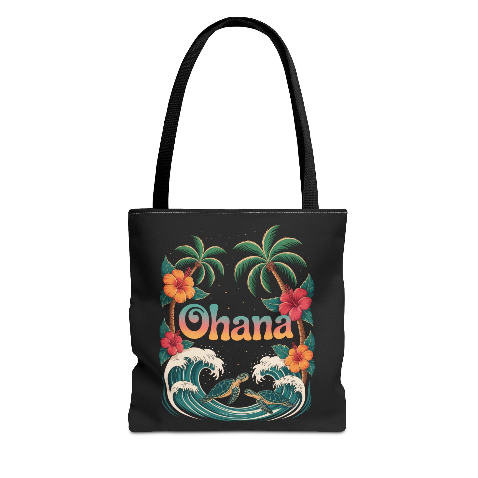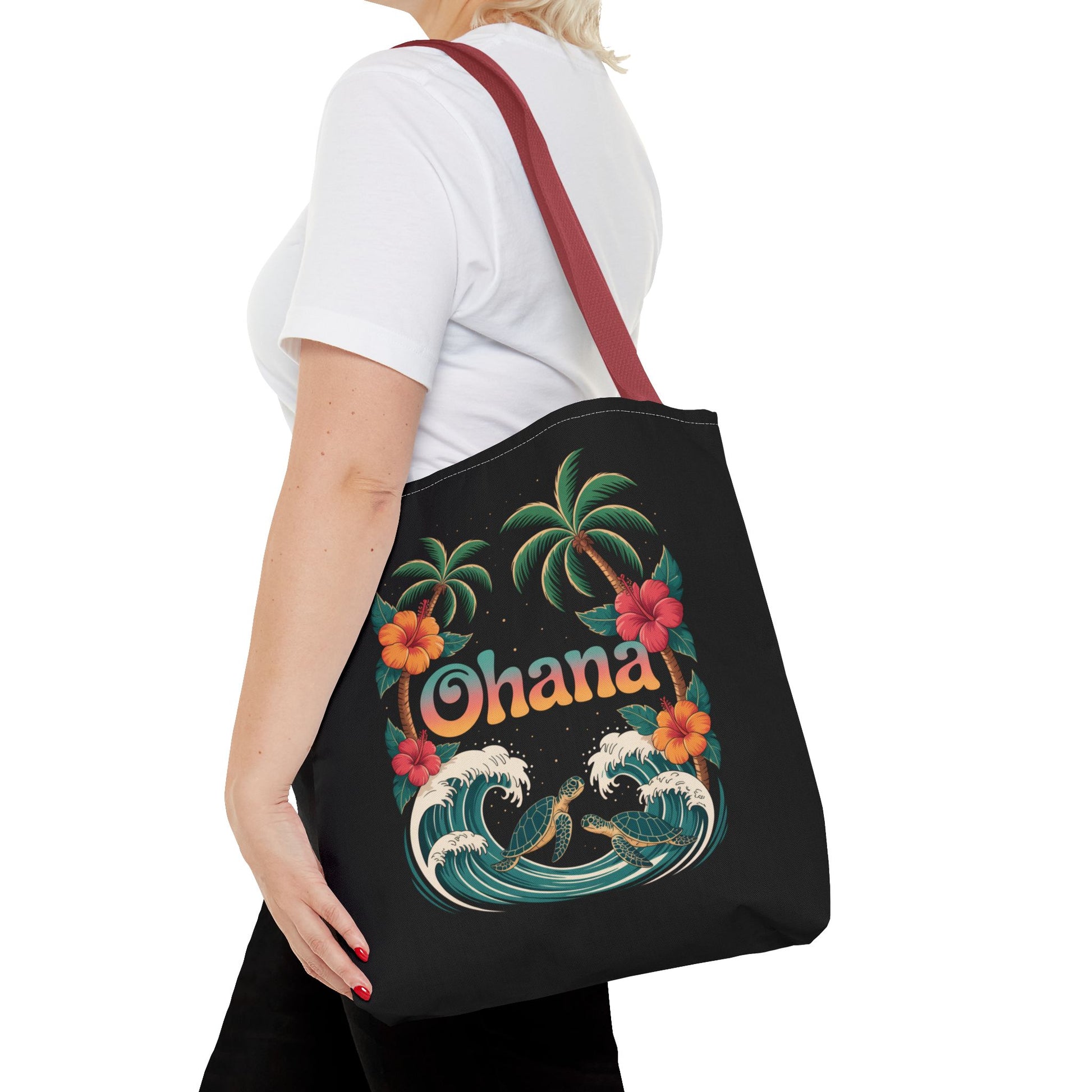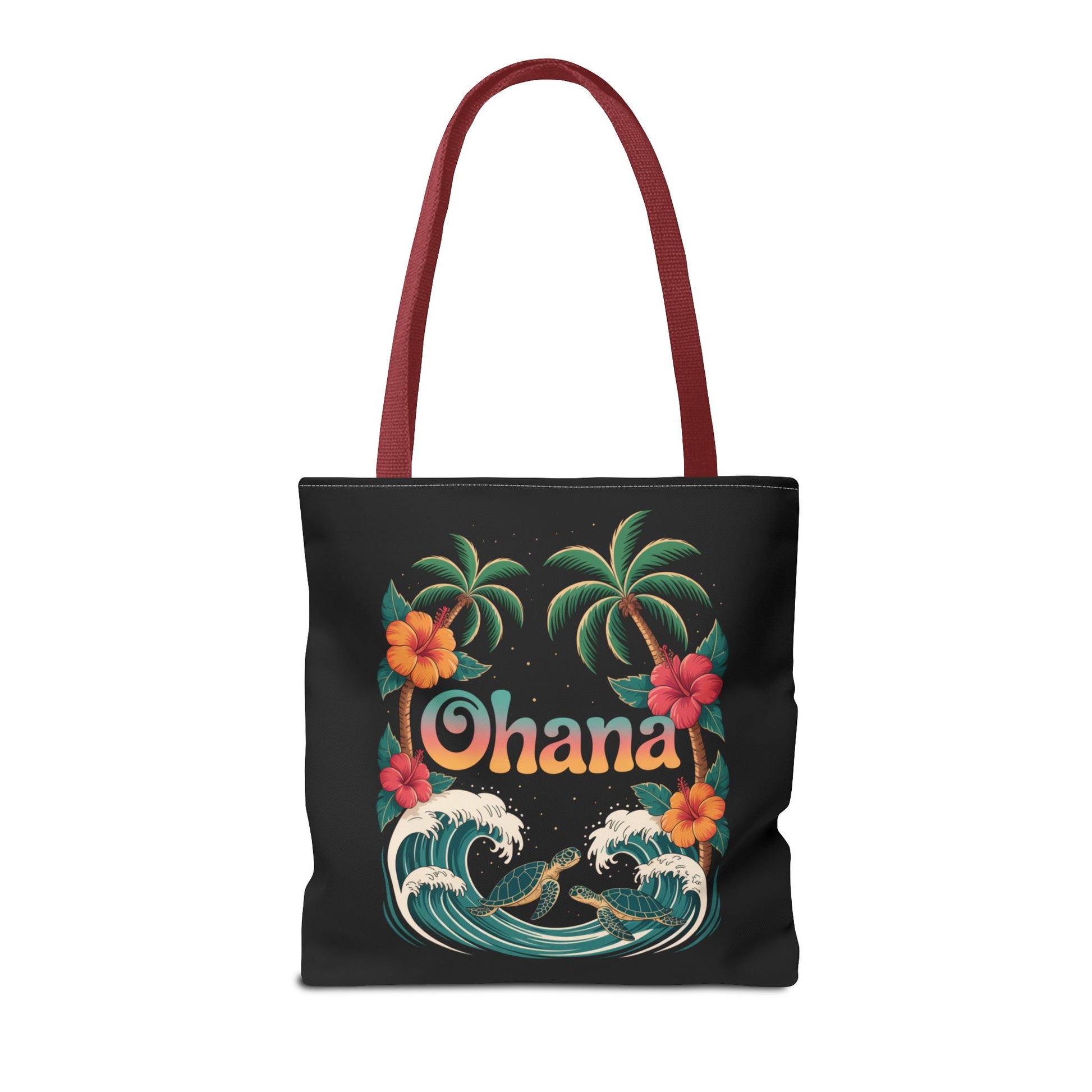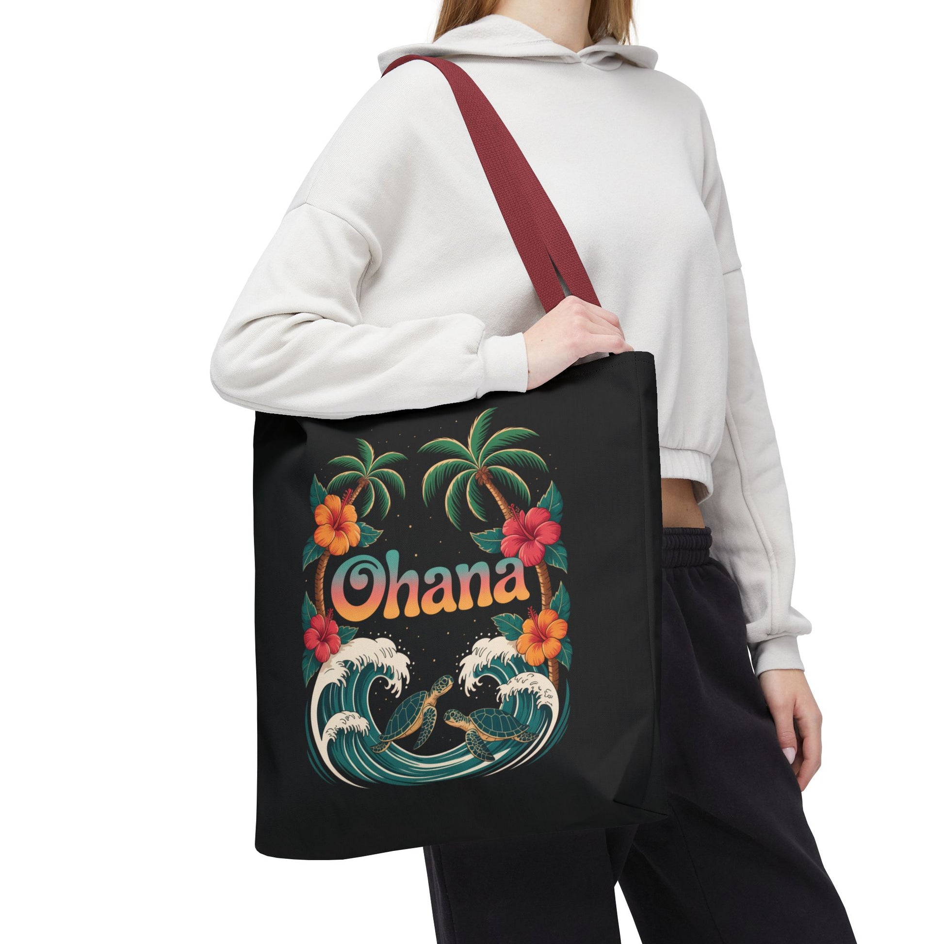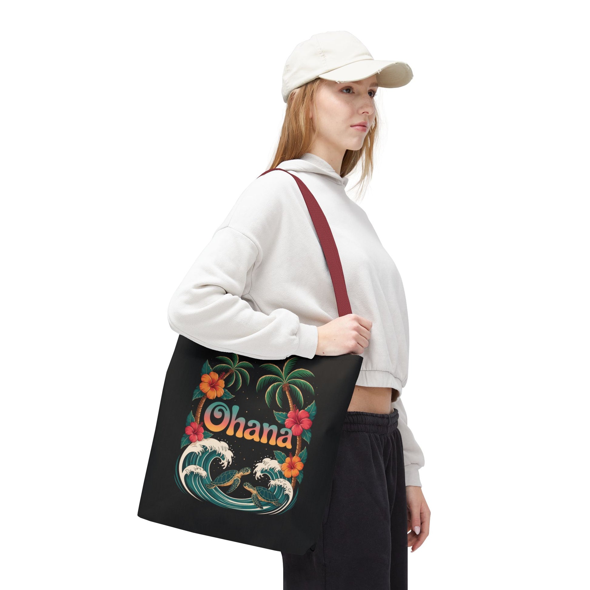 Ohana Tote Bag – Hawaiian Beach Tote with Sea Turtles & Palm Trees – Floral Tropical Reusable Bag, Summer Gift, Aesthetic Travel Purse