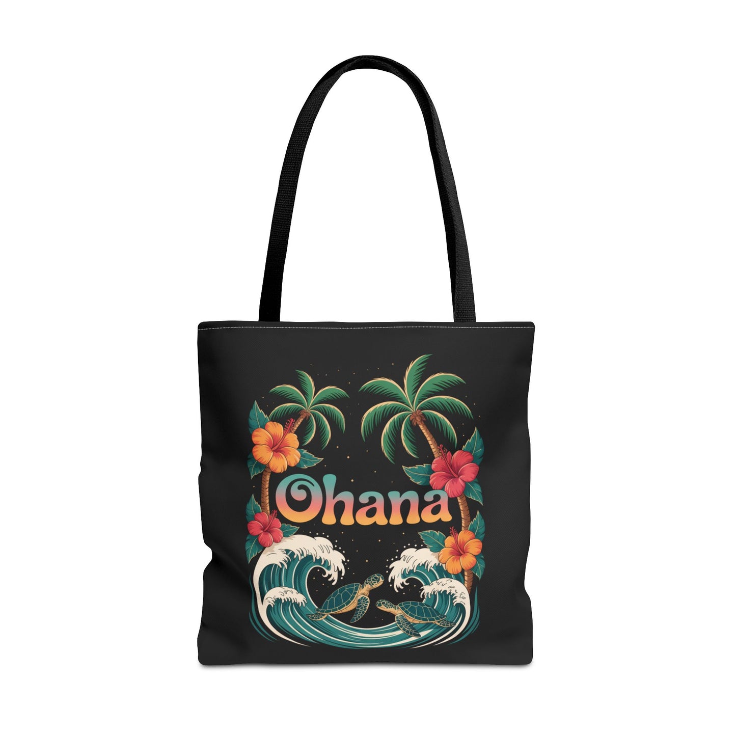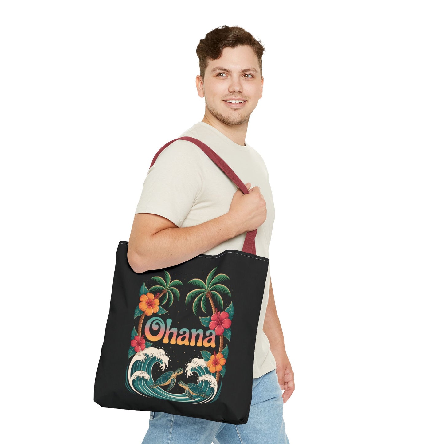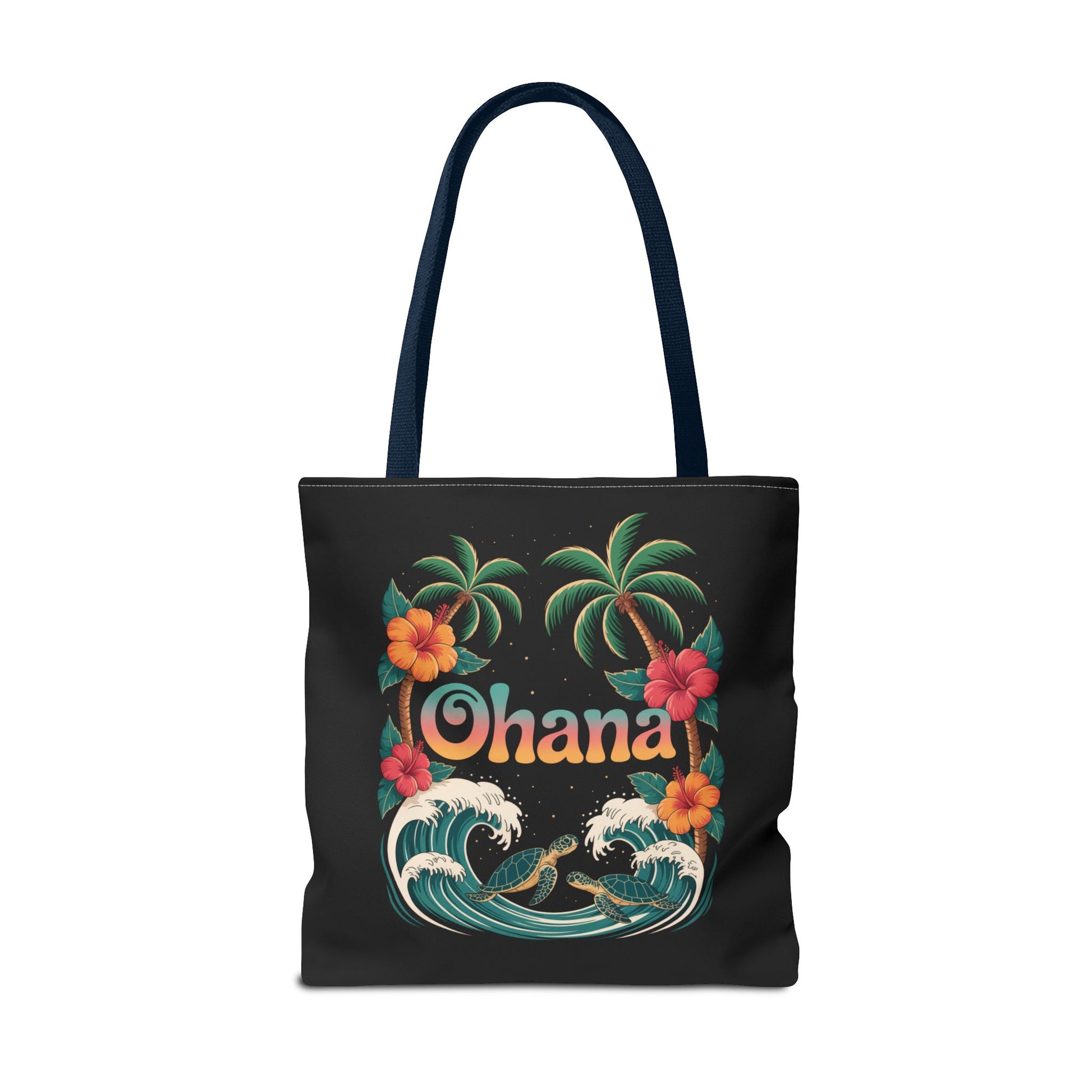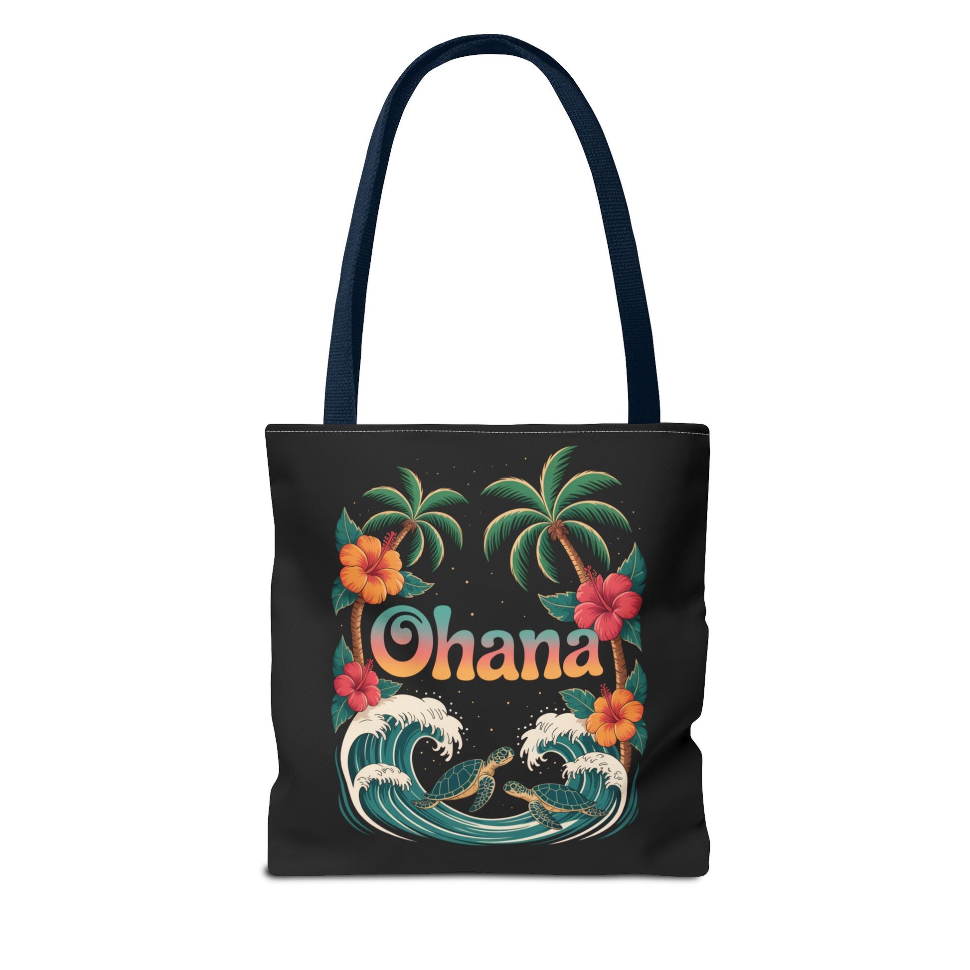 Ohana Tote Bag – Hawaiian Beach Tote with Sea Turtles & Palm Trees – Floral Tropical Reusable Bag, Summer Gift, Aesthetic Travel Purse