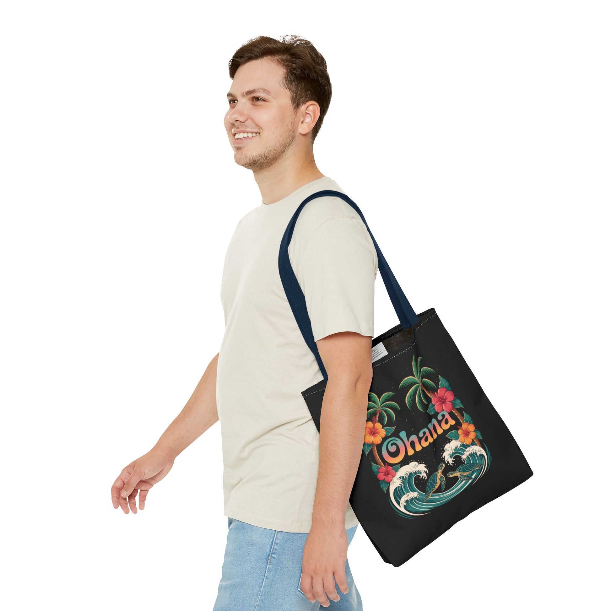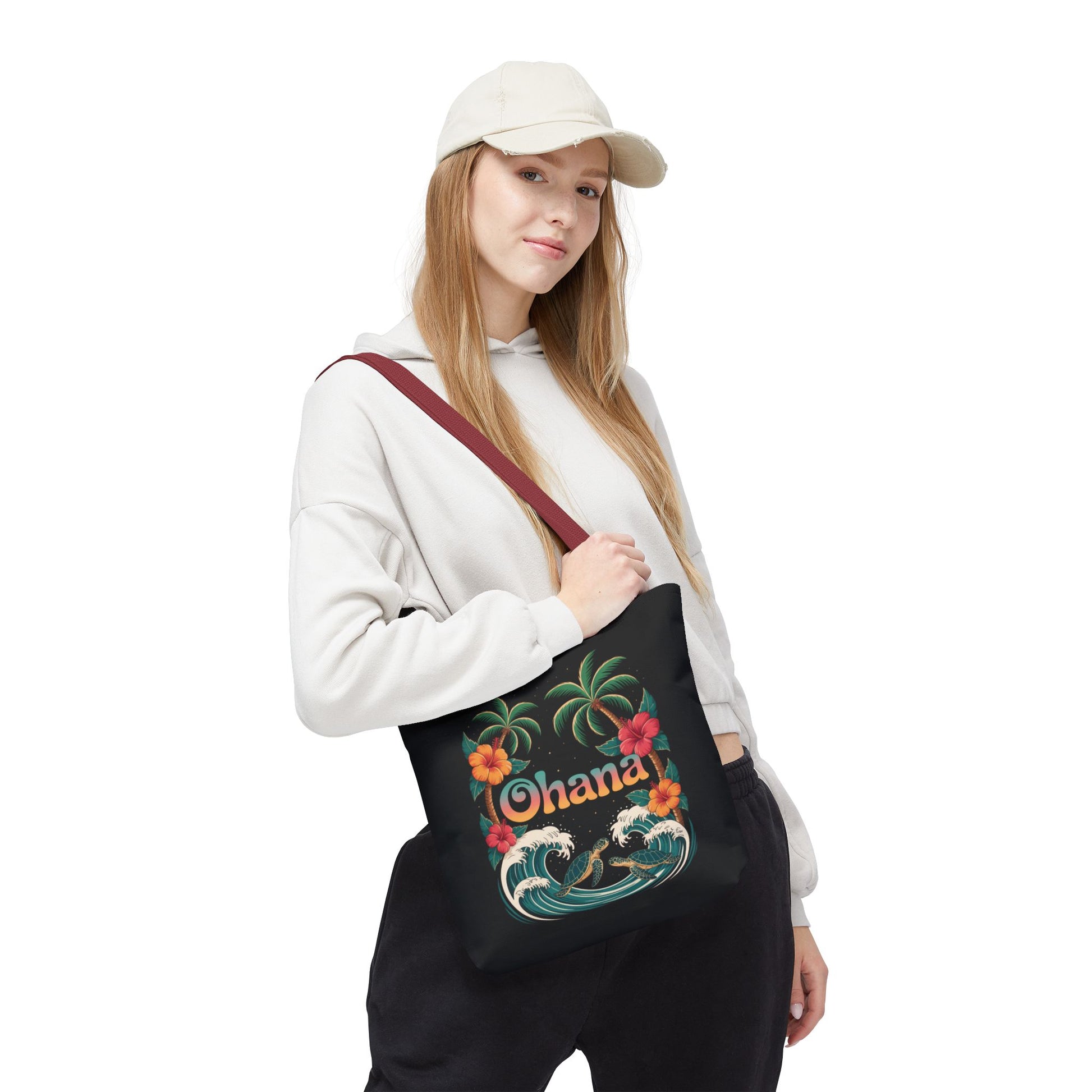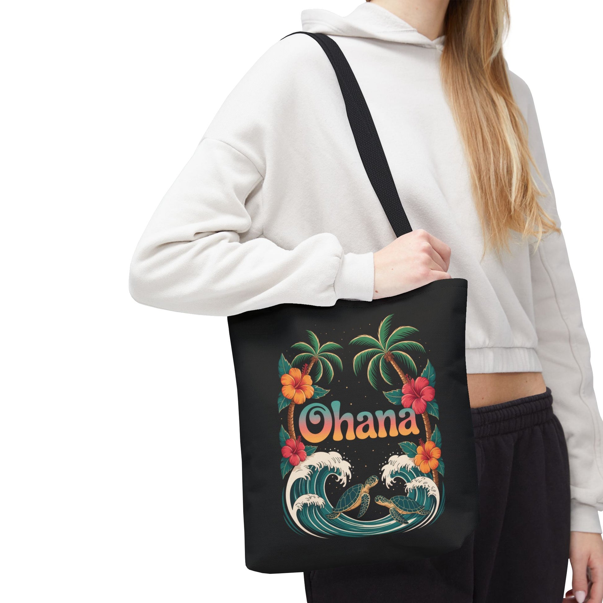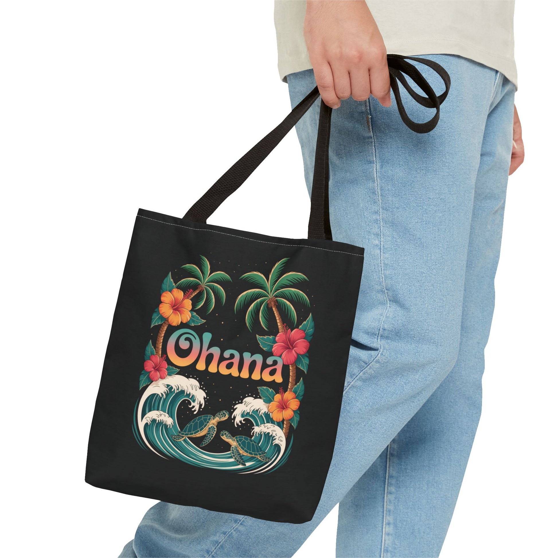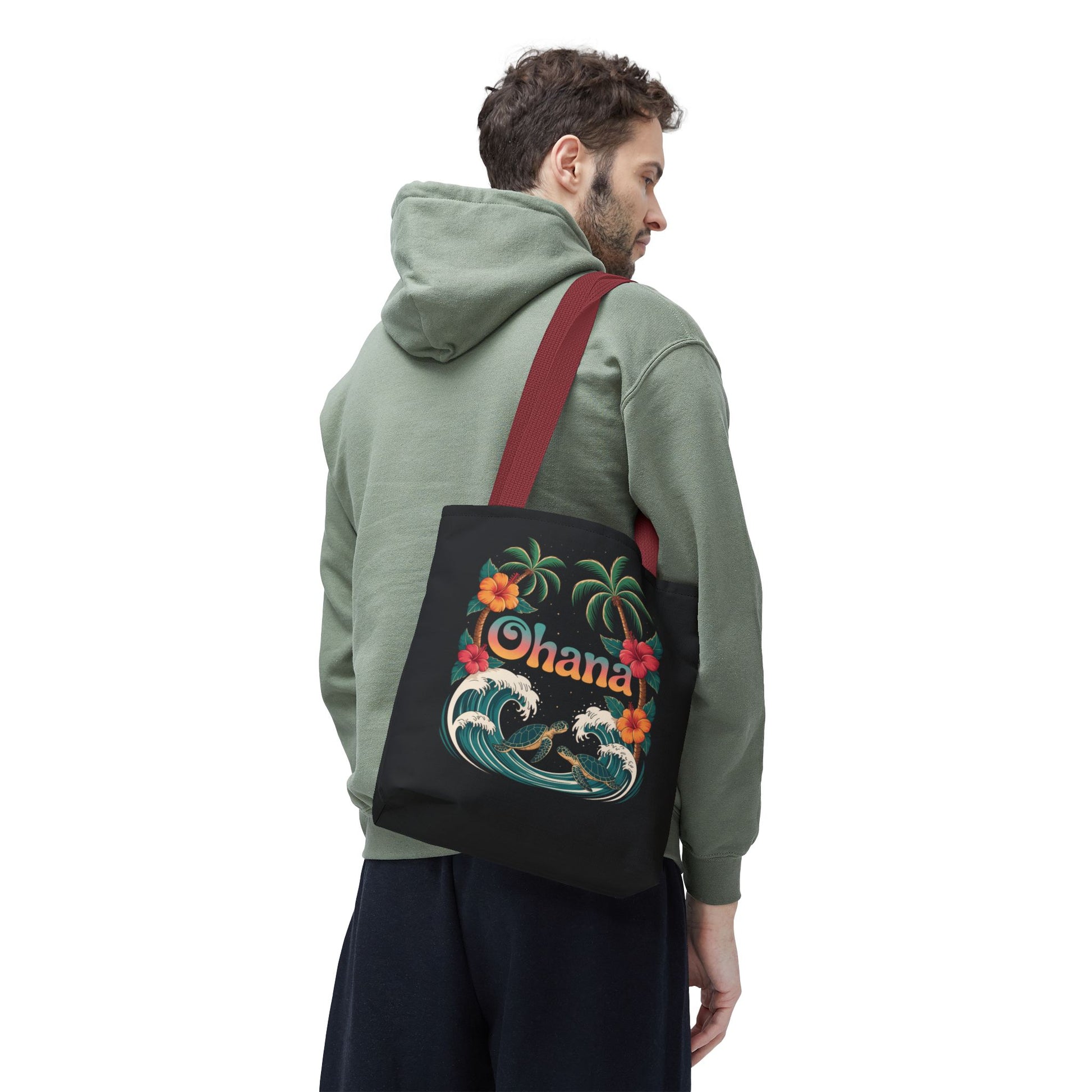 Ohana Tote Bag – Hawaiian Beach Tote with Sea Turtles & Palm Trees – Floral Tropical Reusable Bag, Summer Gift, Aesthetic Travel Purse