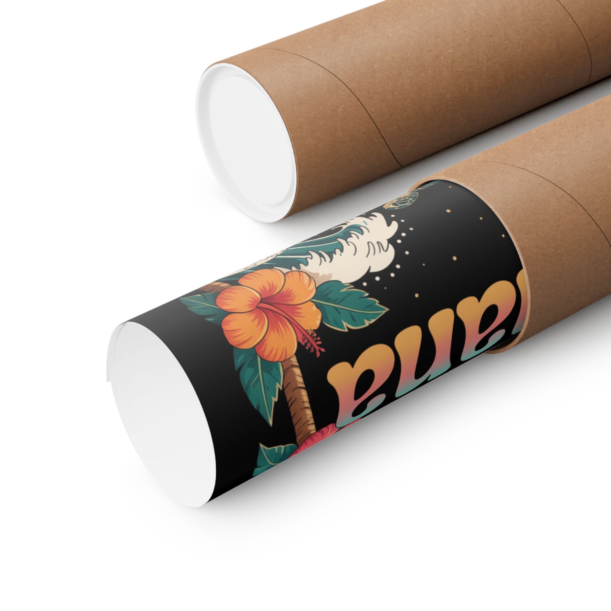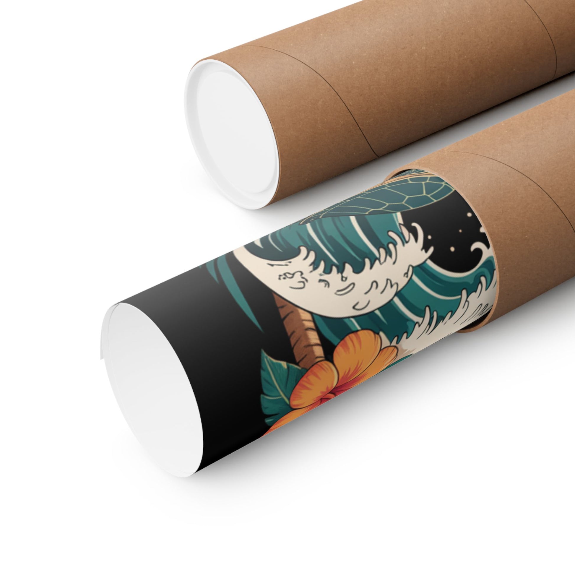 This tropical beach-themed poster features colorful palm trees, ocean waves, hibiscus flowers, and two sea turtles—framed around the word “Ohana,” a Hawaiian term that means family. Whether you’re creating a beach-themed living room, sprucing up your office, or looking for a heartwarming gift, this print adds warmth, island vibes, and meaning to any wall.