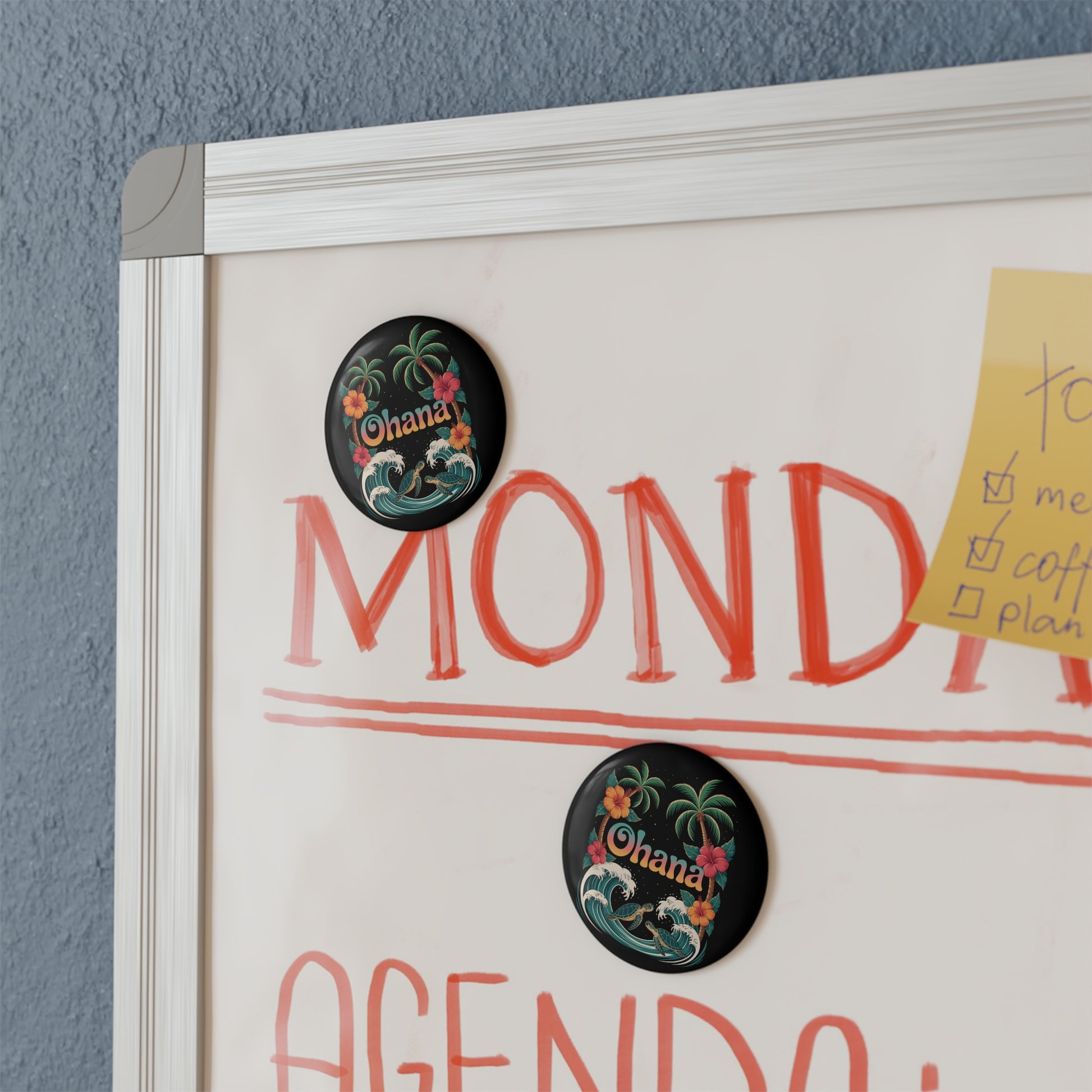 Ohana Magnet – Retro Hawaiian Palm Tree & Sea Turtle Button Magnet for Fridge or Locker – Aesthetic Tropical Gift with Island Vibes