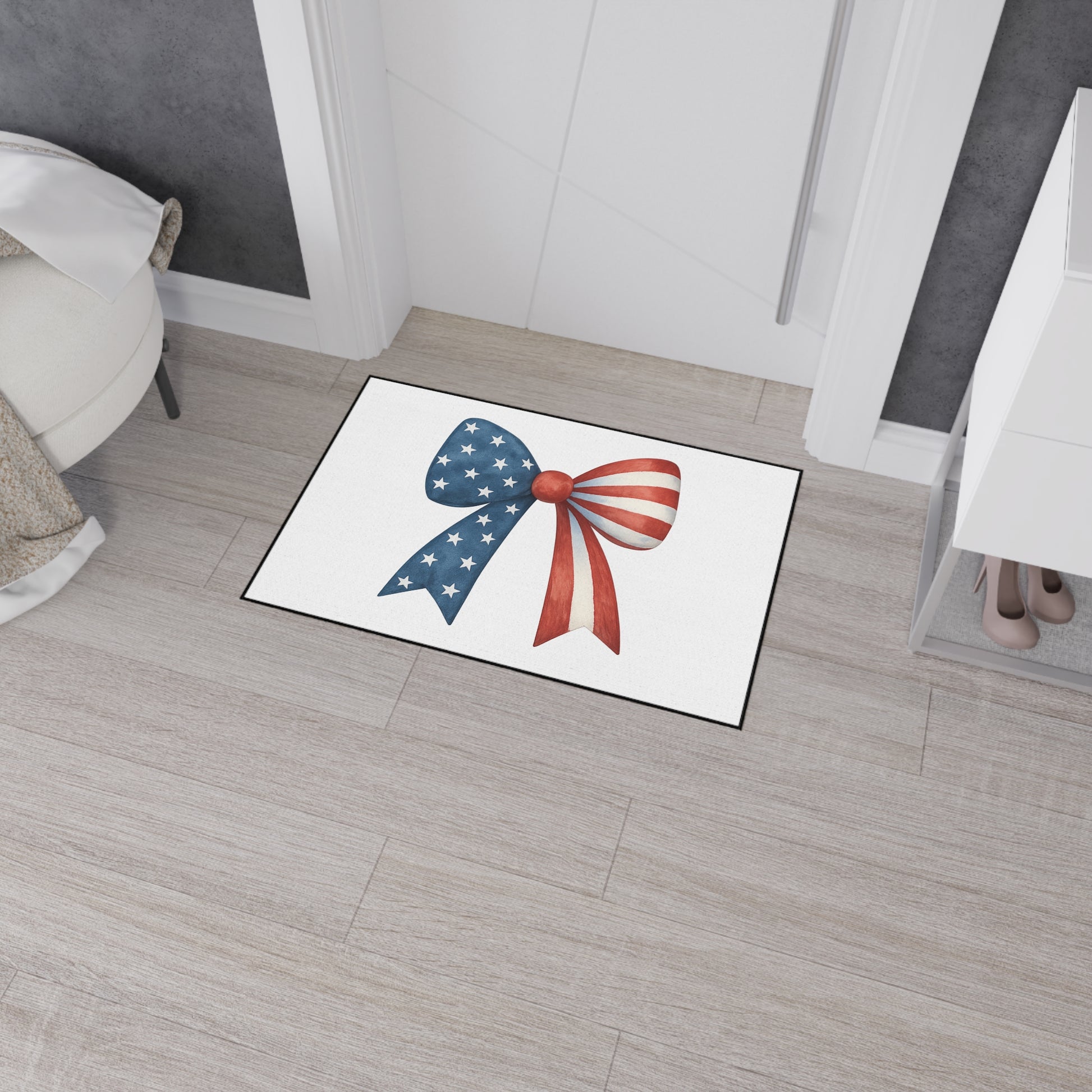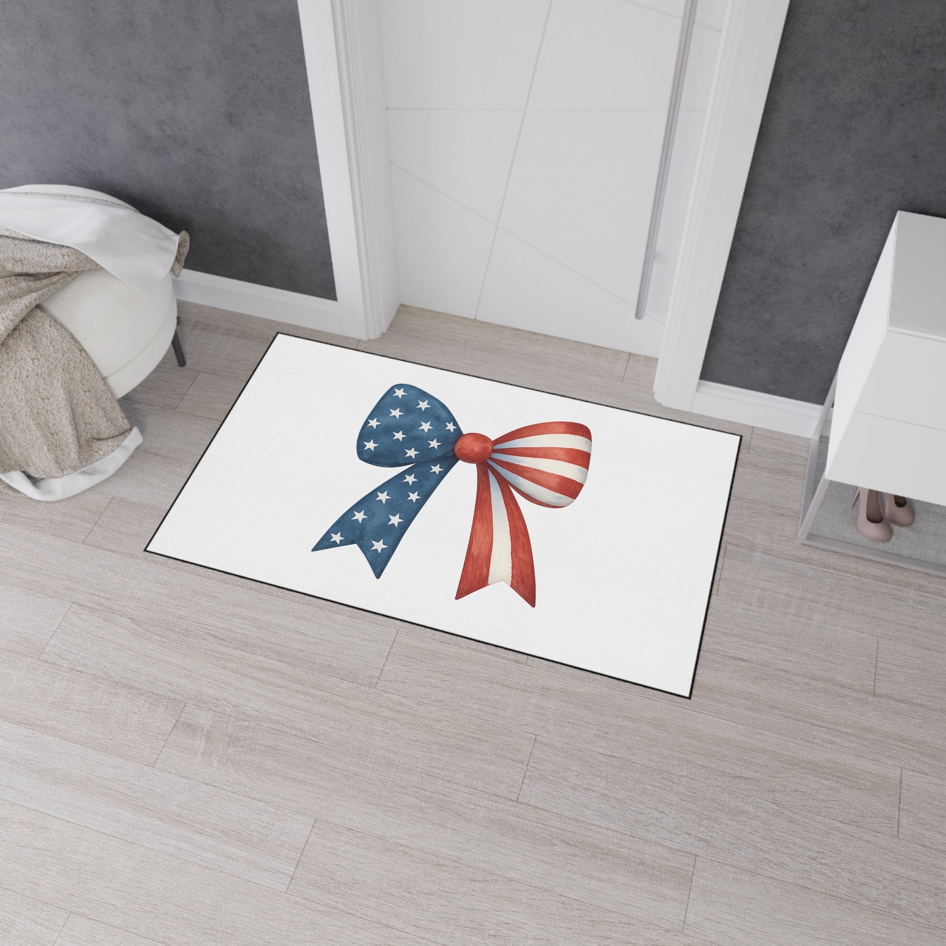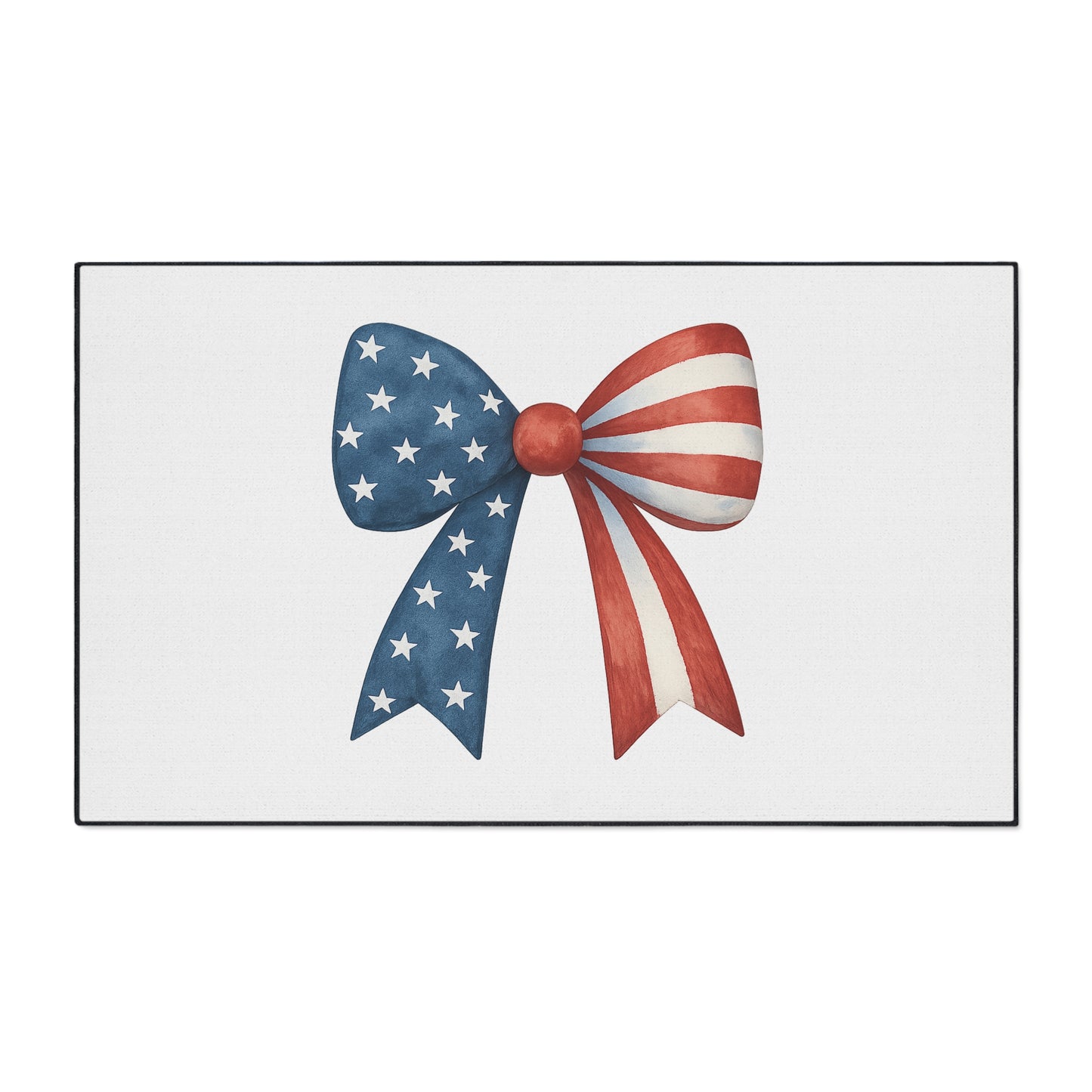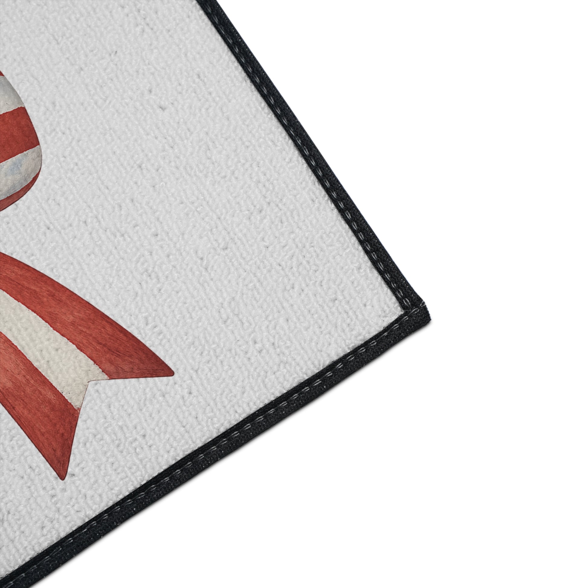 Patriotic Bow Door Mat | 4th of July Mat | American Flag Doormat | USA Stars Stripes Rug | July 4th Entryway Decor | Red White Blue Rug