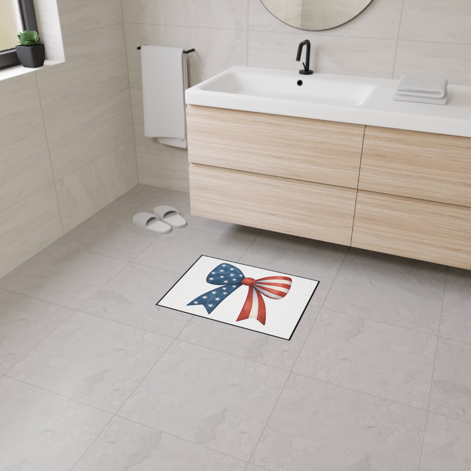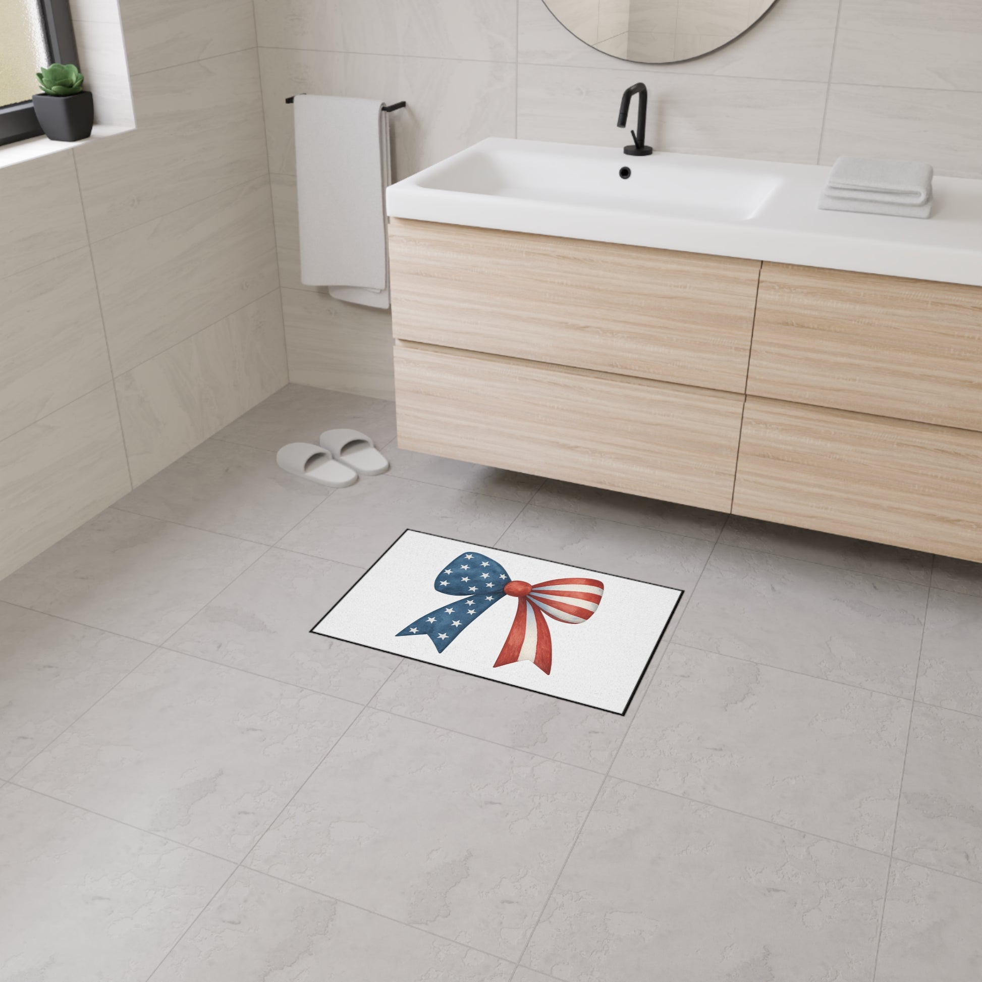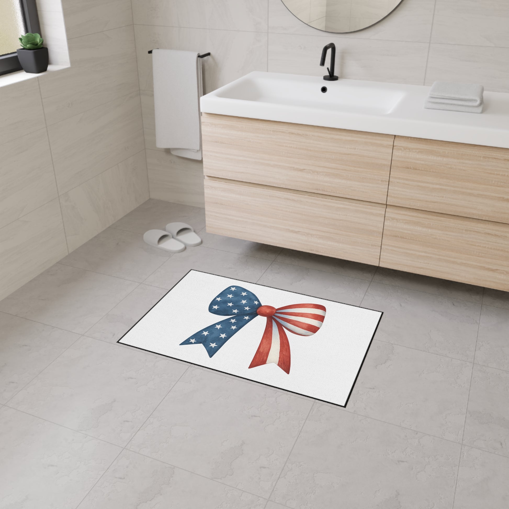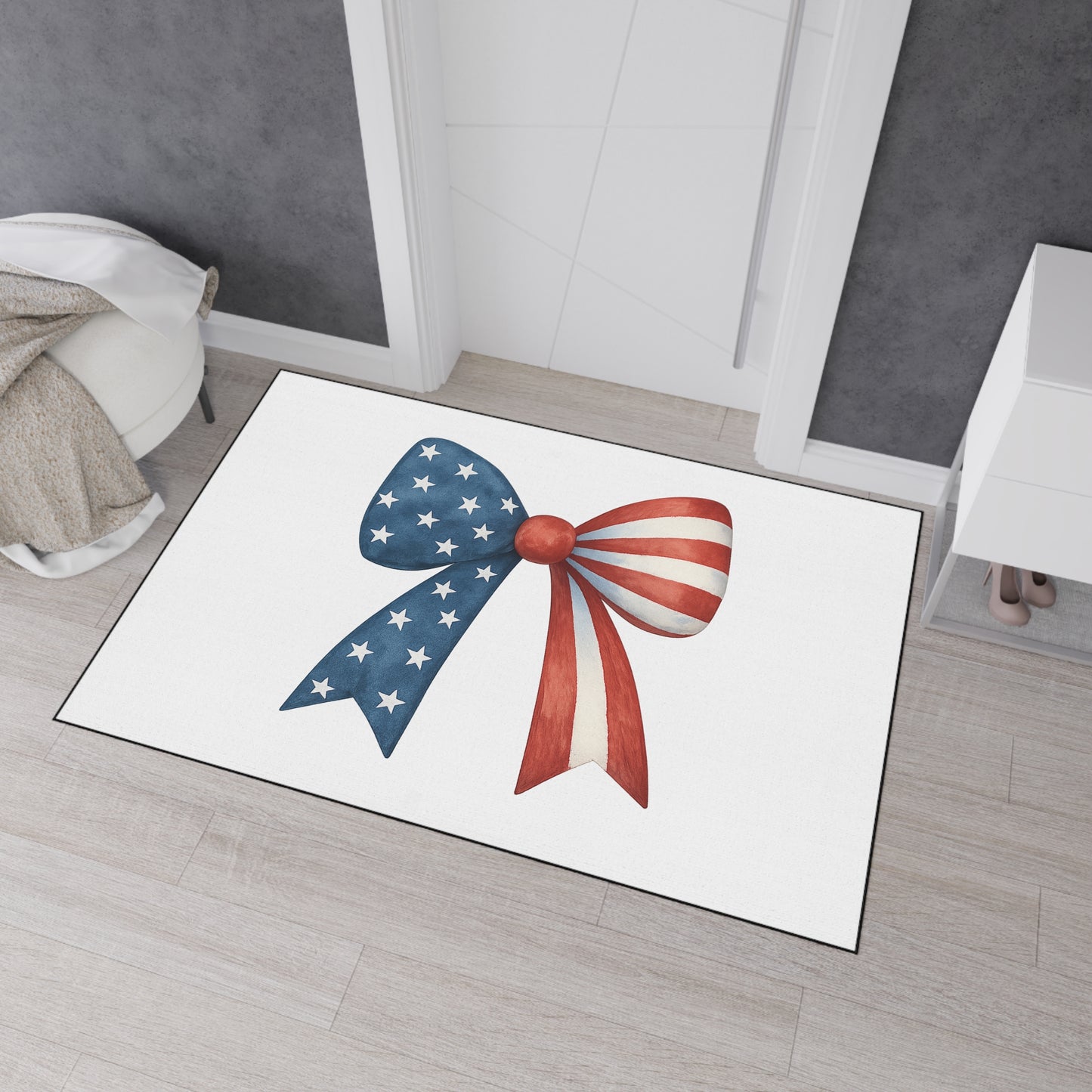 Patriotic Bow Door Mat | 4th of July Mat | American Flag Doormat | USA Stars Stripes Rug | July 4th Entryway Decor | Red White Blue Rug