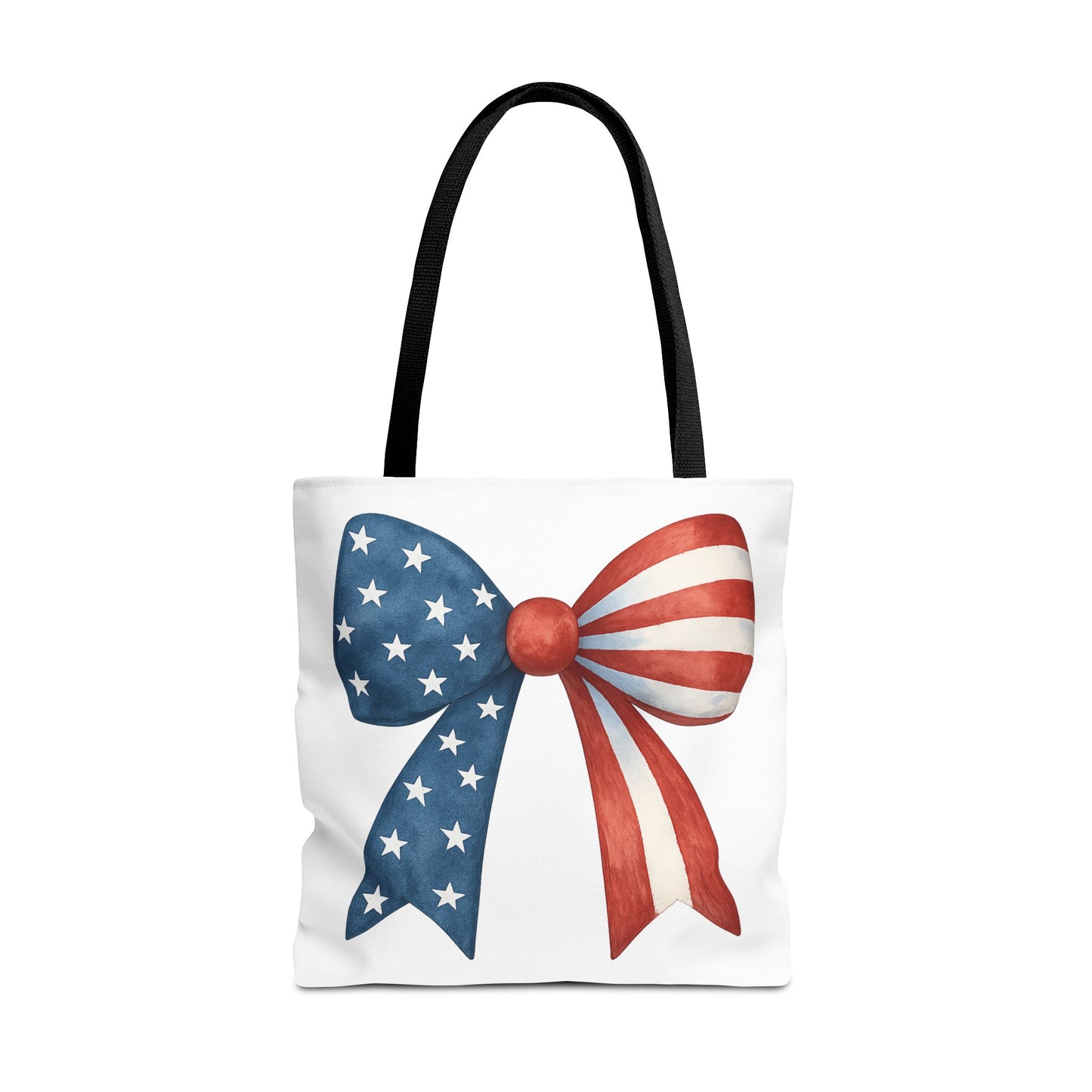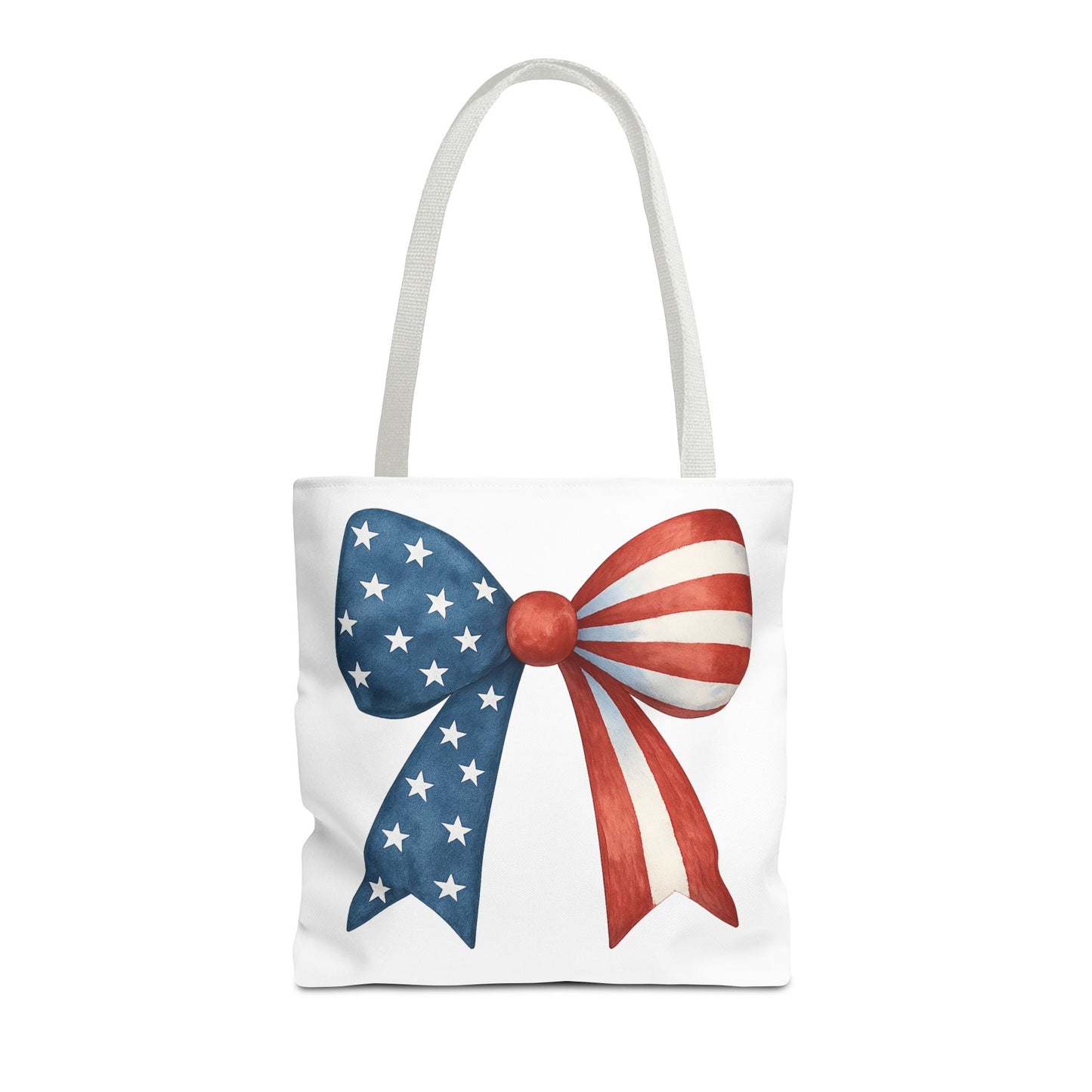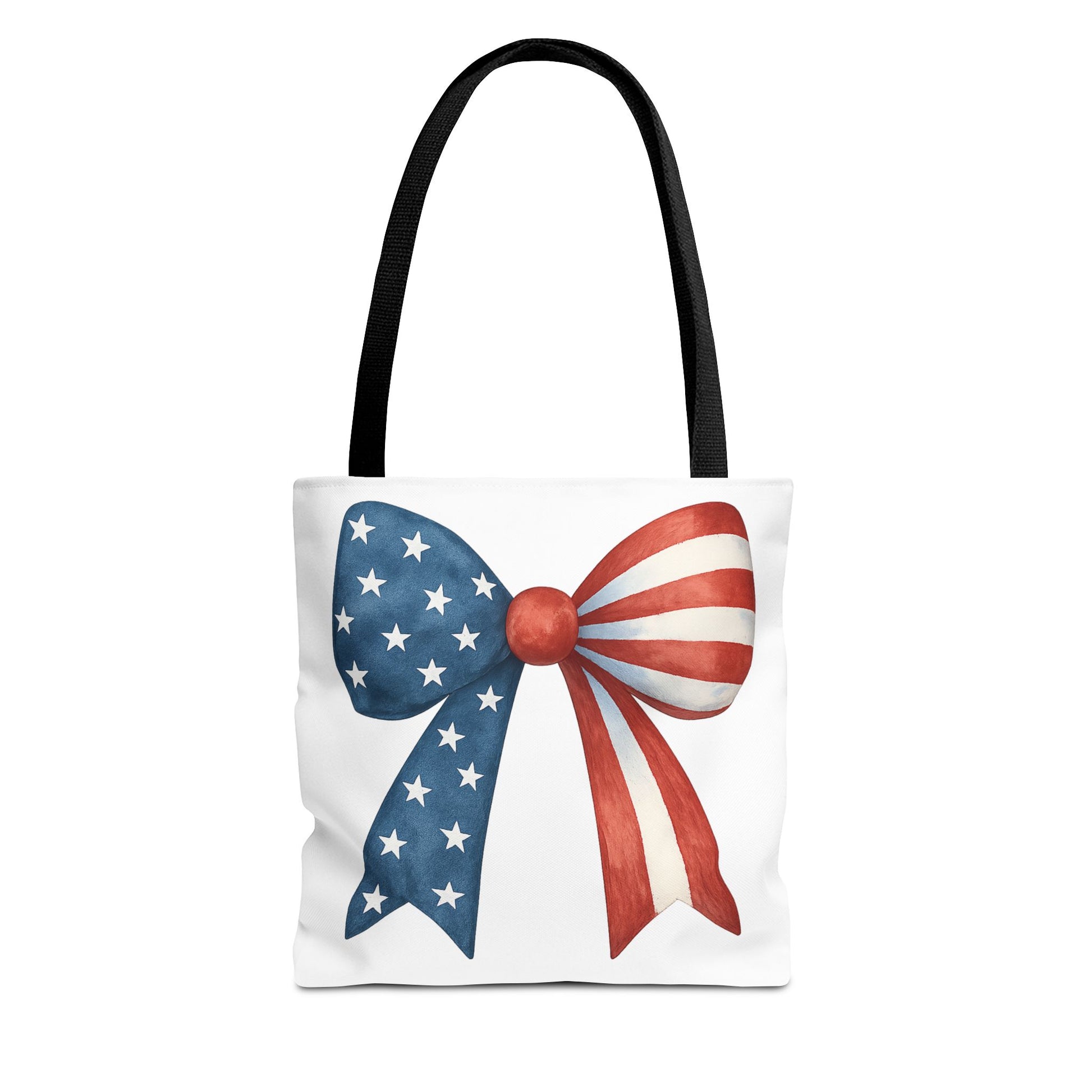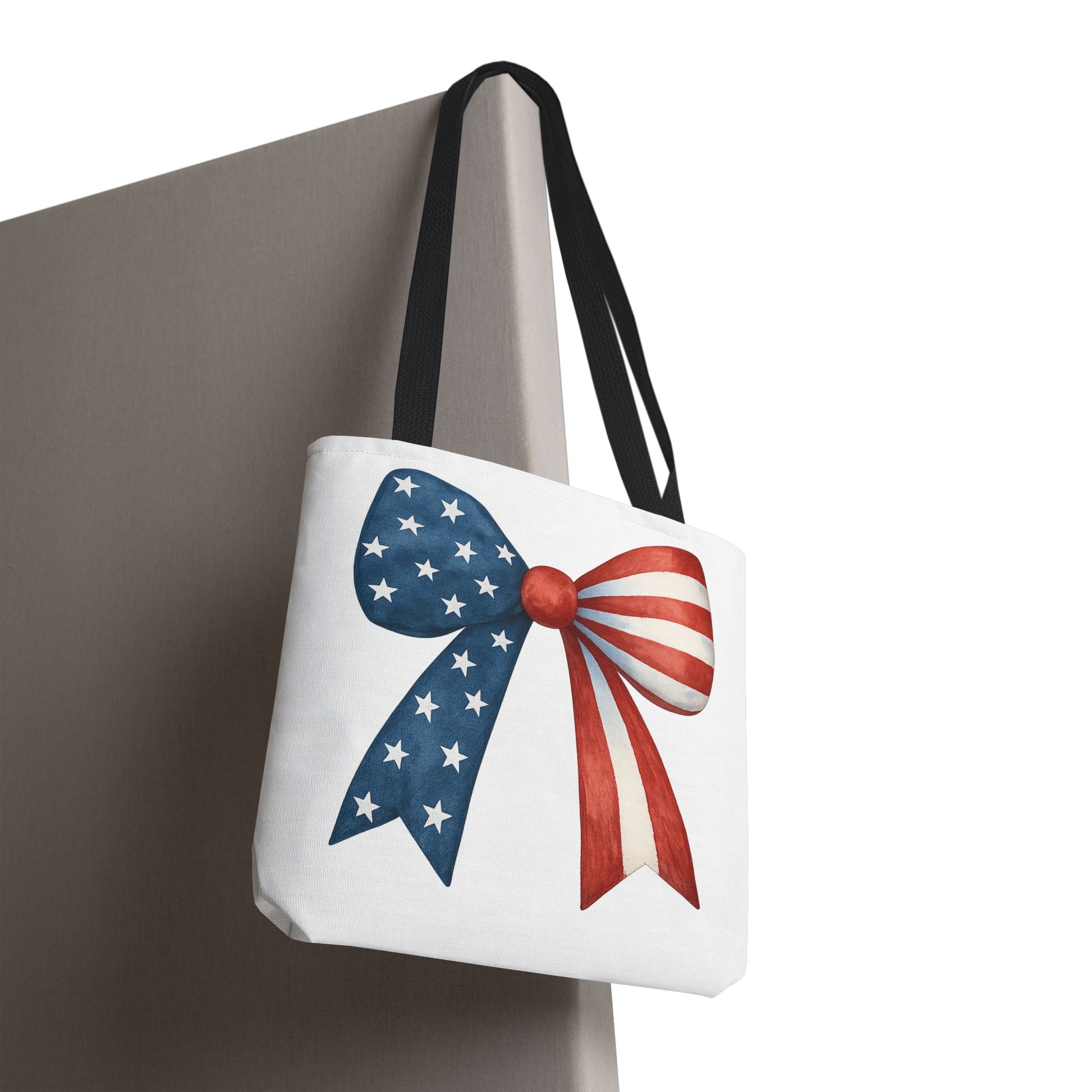 Carry your USA pride wherever you go with this stylish Patriotic Bow Tote Bag! Featuring a bold American Flag bow design, this roomy and durable reusable bag is perfect for farmers markets, beach days, 4th of July parties, picnics, daily errands, and more. 🇺🇸✨