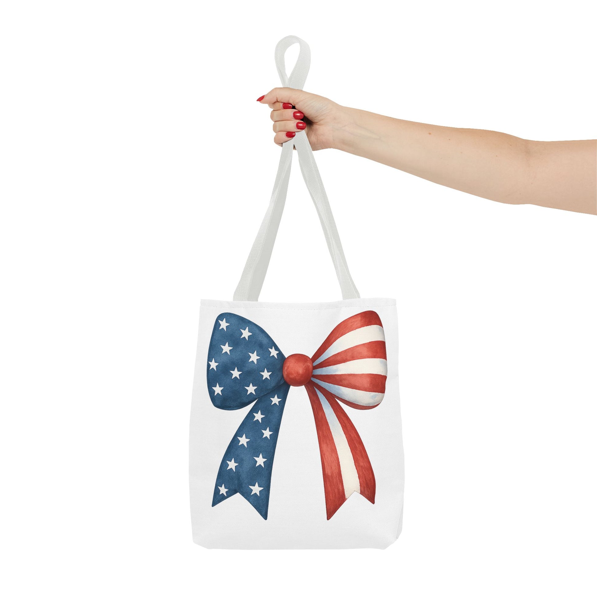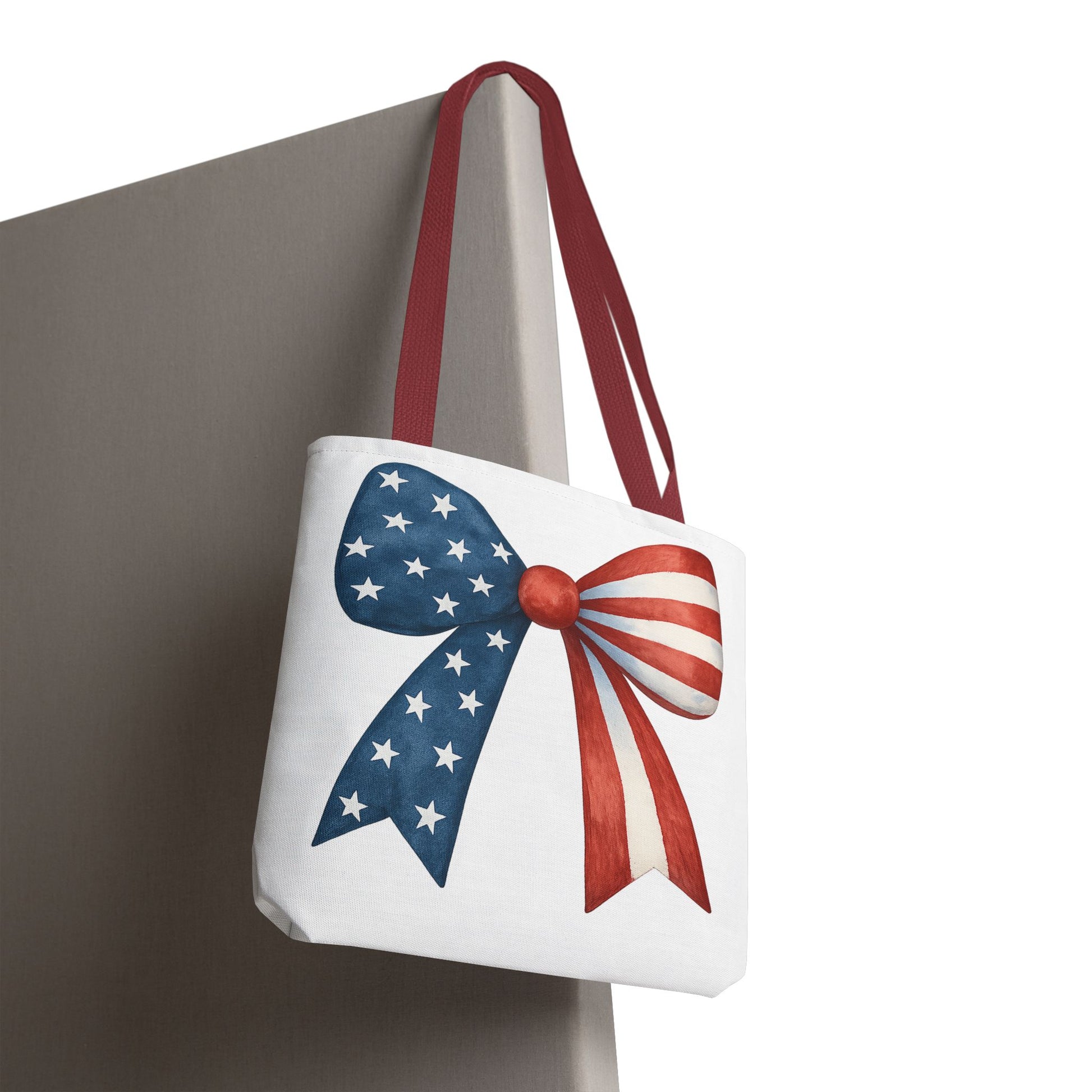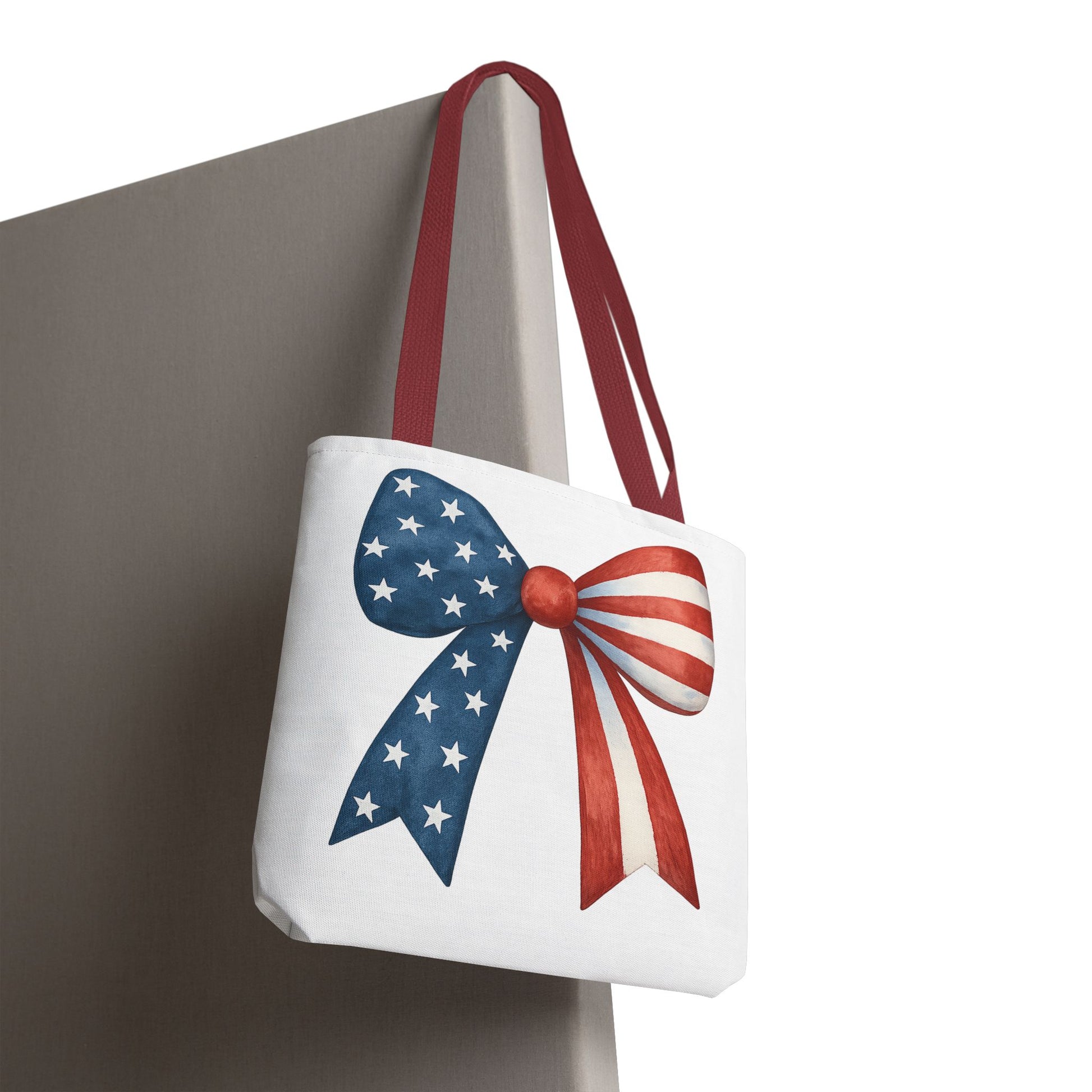 Patriotic Bow Tote Bag | 4th of July Reusable Bag | American Flag Tote | USA Stars Stripes Bag | Independence Day Gift | USA Market Bag
