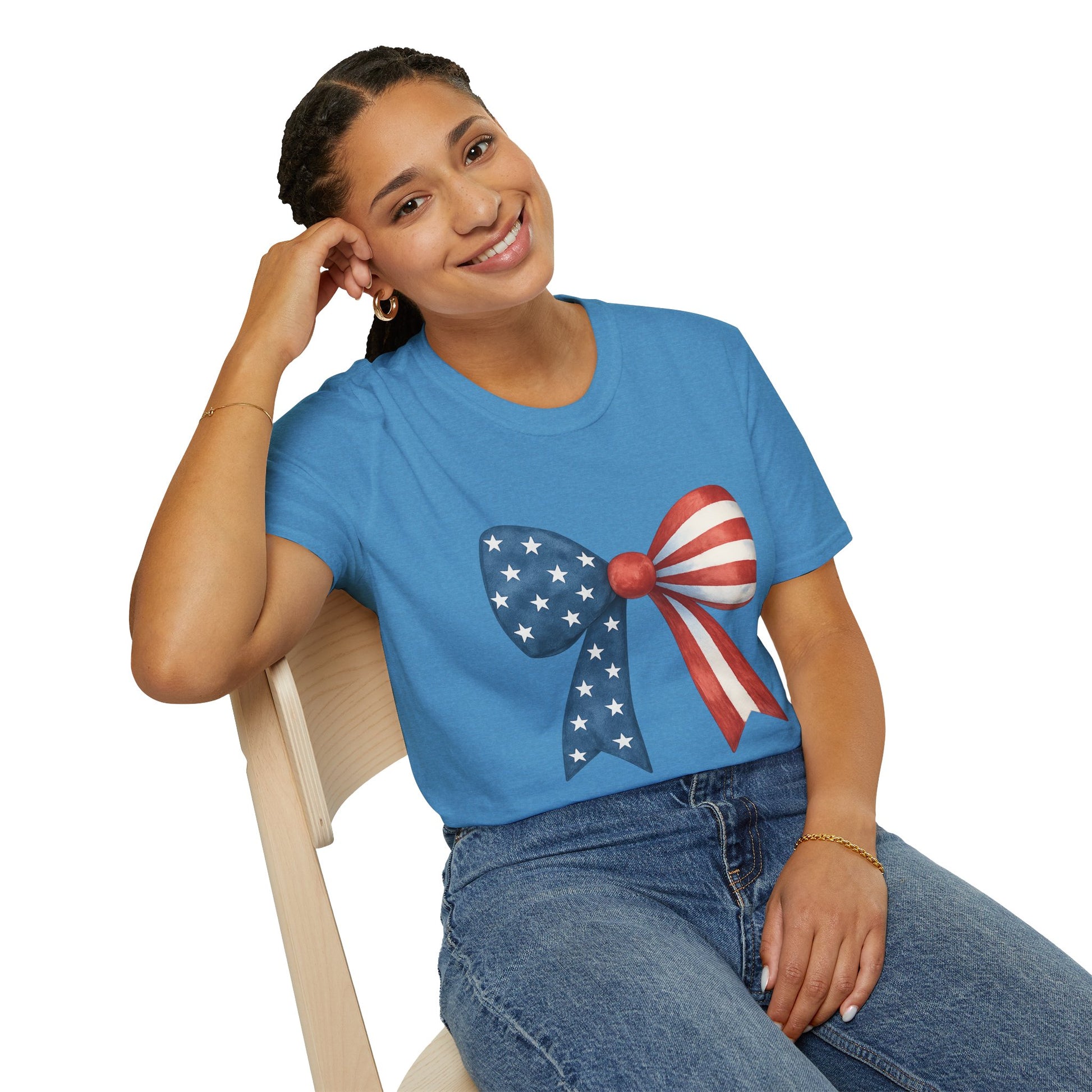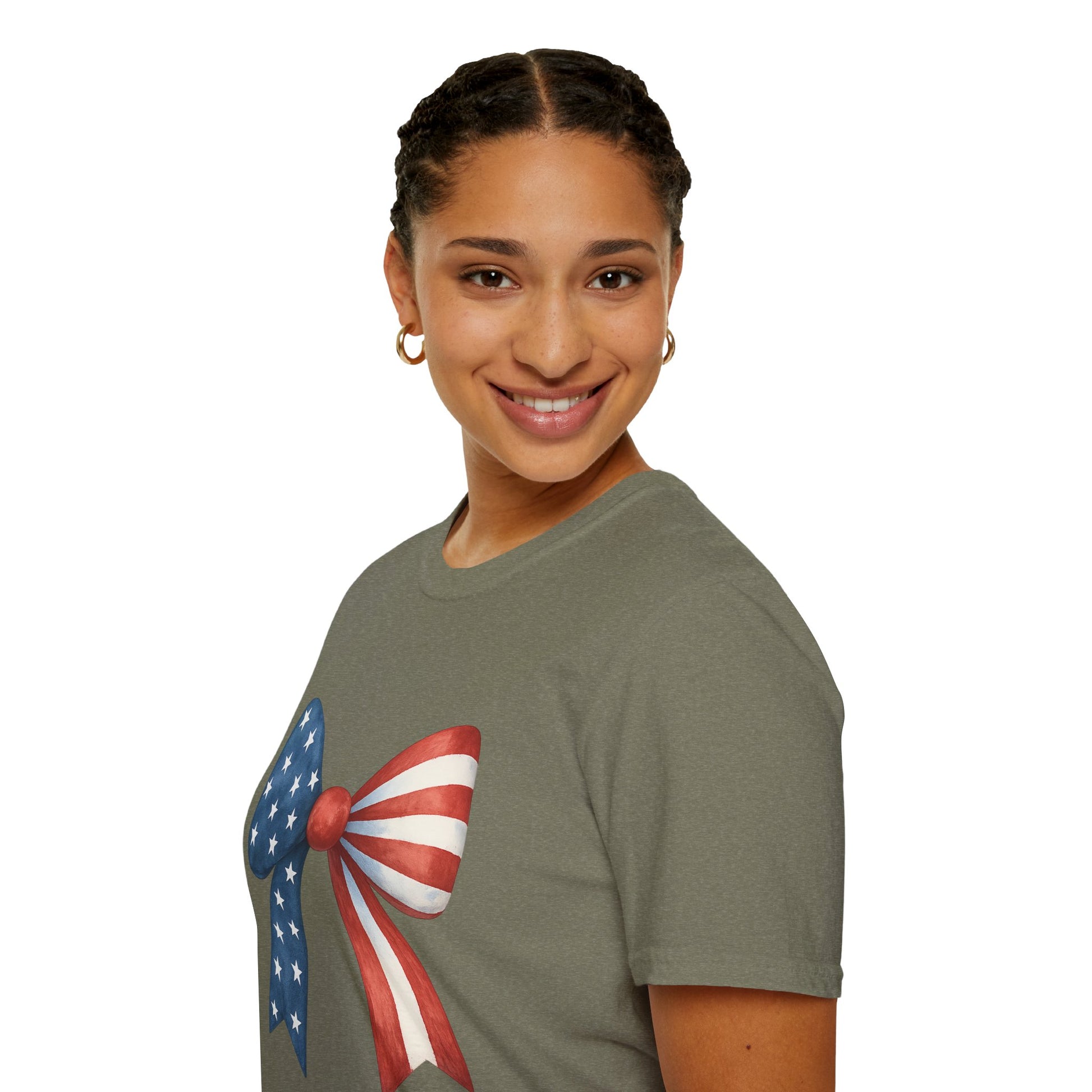 Patriotic Bow USA T-Shirt | 4th of July Shirt | American Flag Bow Tee | Independence Day Shirt | July 4th Graphic Tee | USA Pride Shirt