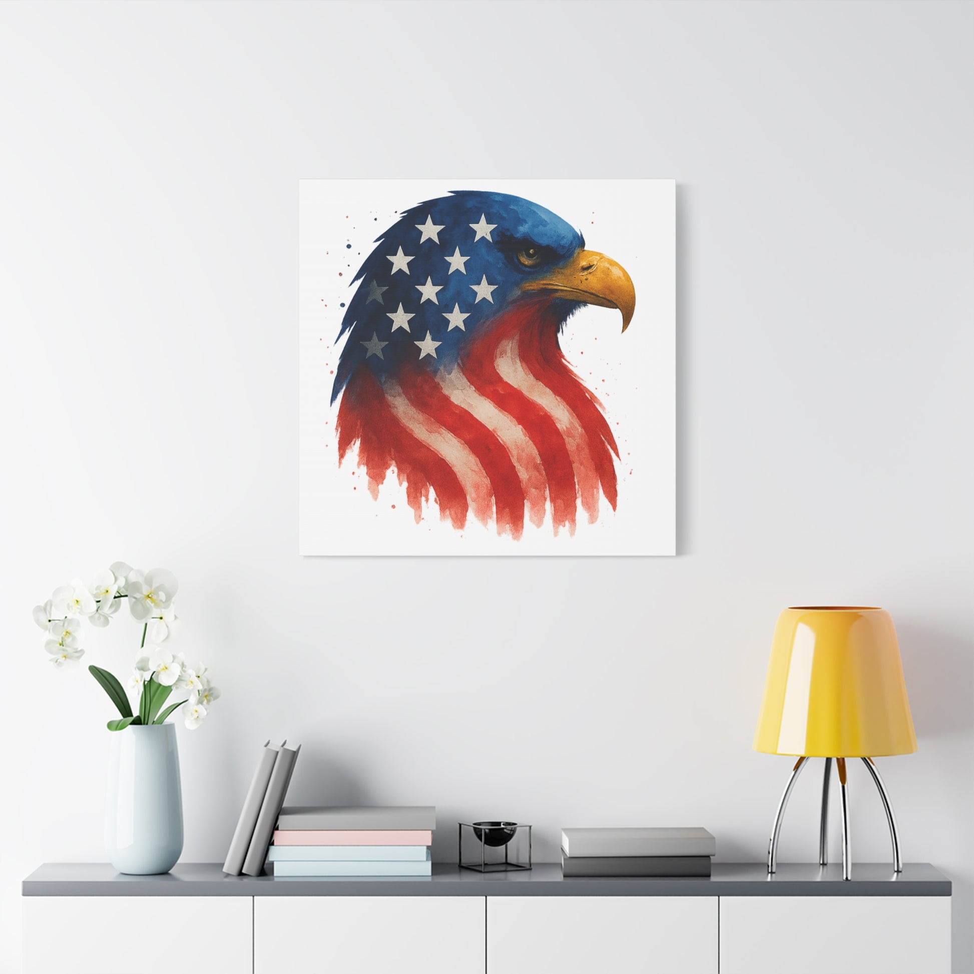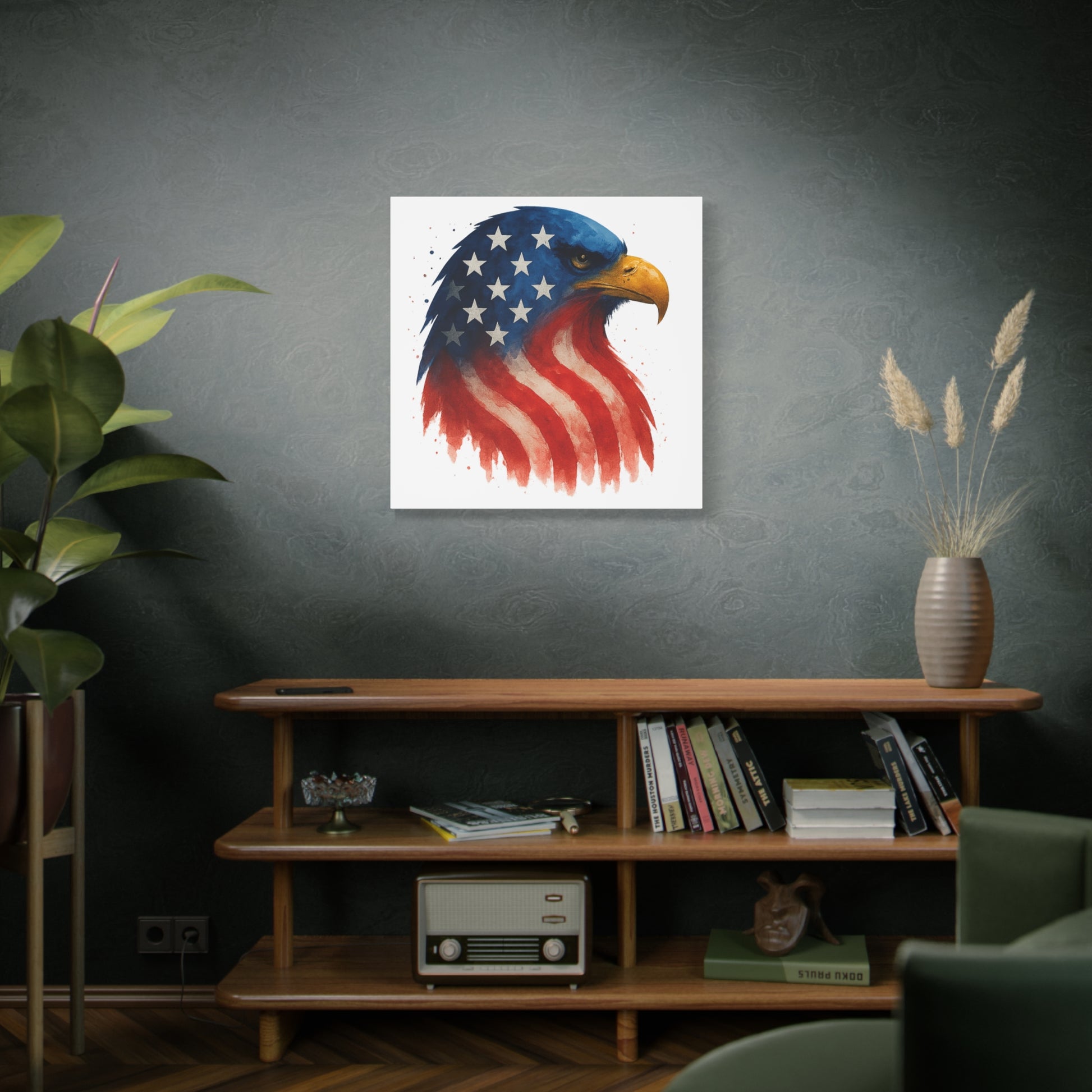 Elevate your space with this vibrant Patriotic Eagle Canvas Wall Art, featuring a majestic bald eagle head draped in the American flag’s iconic red, white, and blue. Perfect for 4th of July celebrations, veterans, patriotic home decor, or office display. This gallery-ready canvas is: