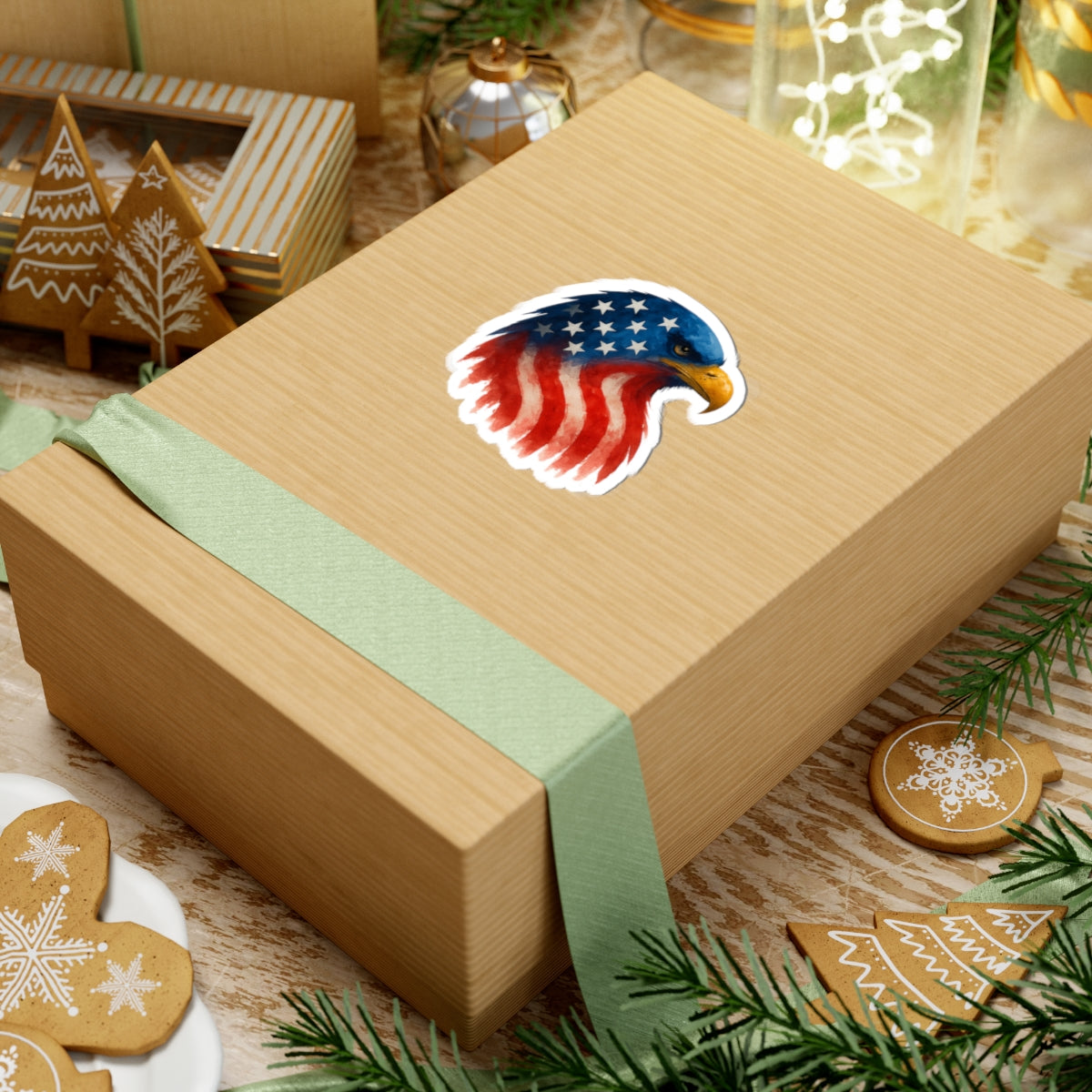Patriotic Eagle Sticker - American Flag Decal, Kiss-Cut Vinyl for Laptop, Journal, Scrapbook, July 4th Decor, Veterans Gift