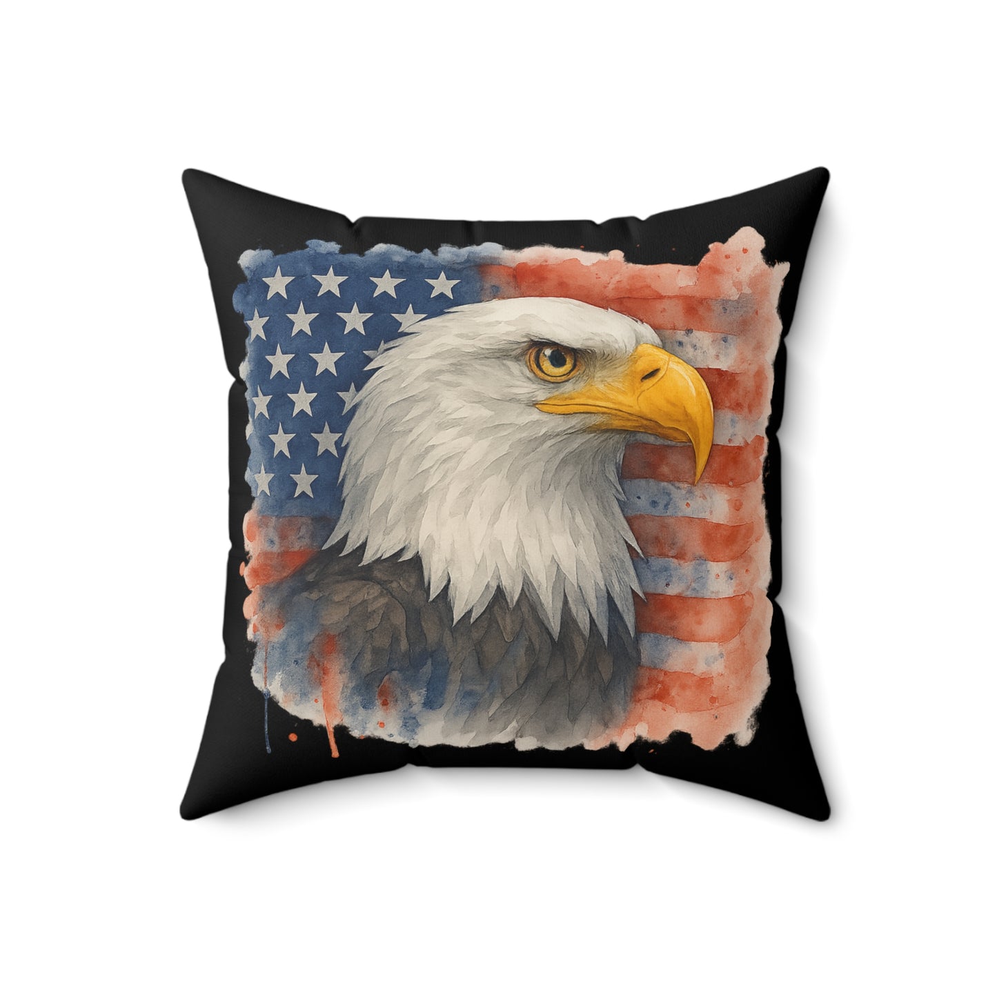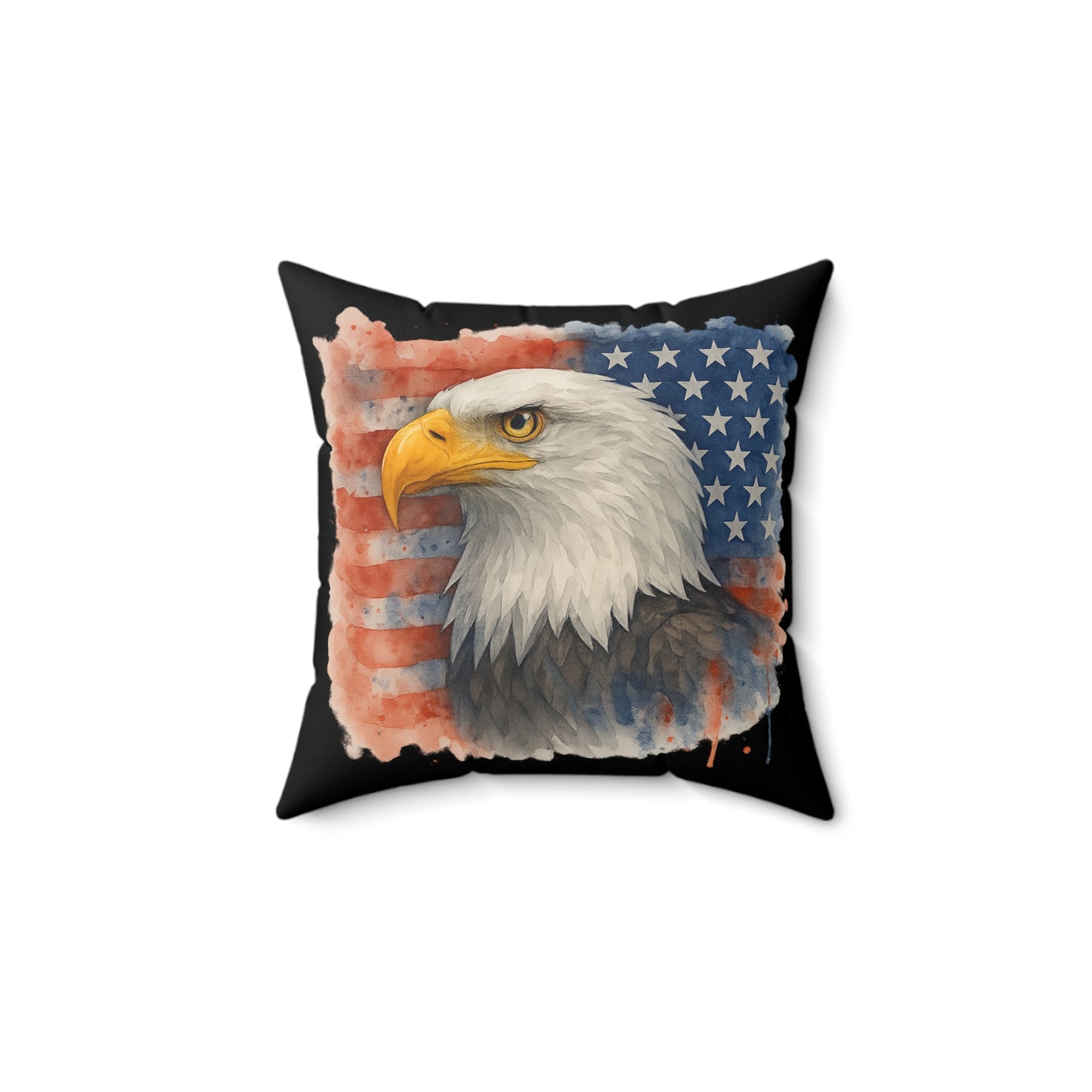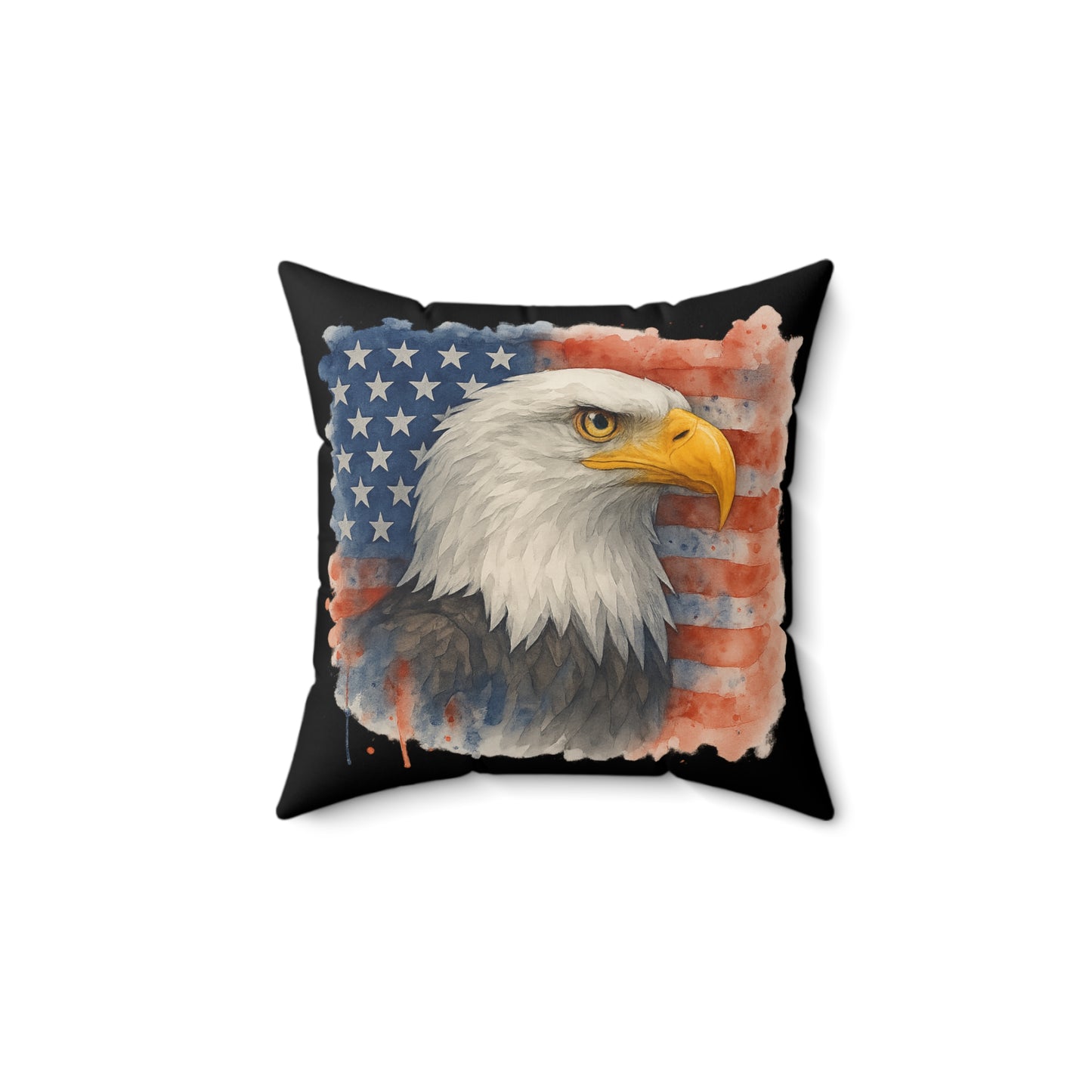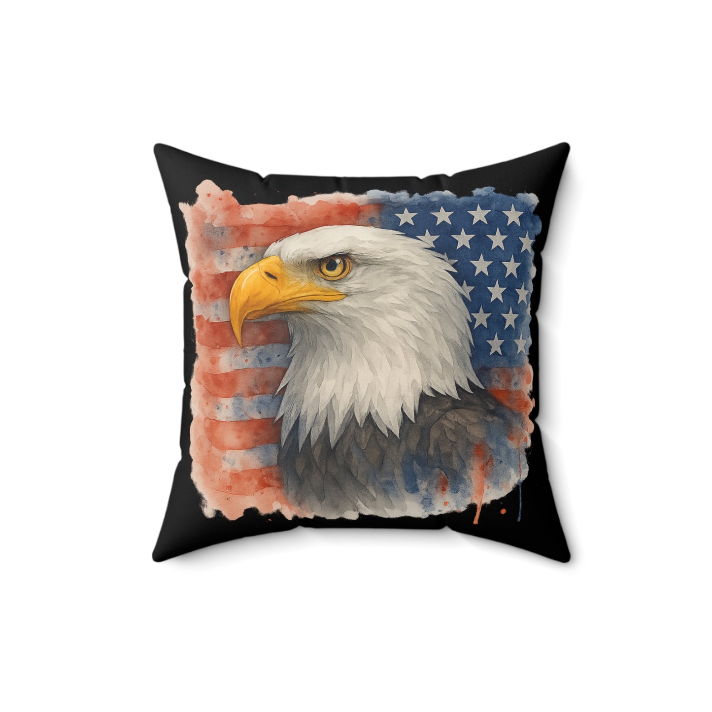 Add a patriotic touch to your home decor with this square pillow featuring a watercolor painting of a bald eagle and an American Flag. Perfect for American holidays and celebrations, this pillow is ideal for those who love wildlife and the USA.