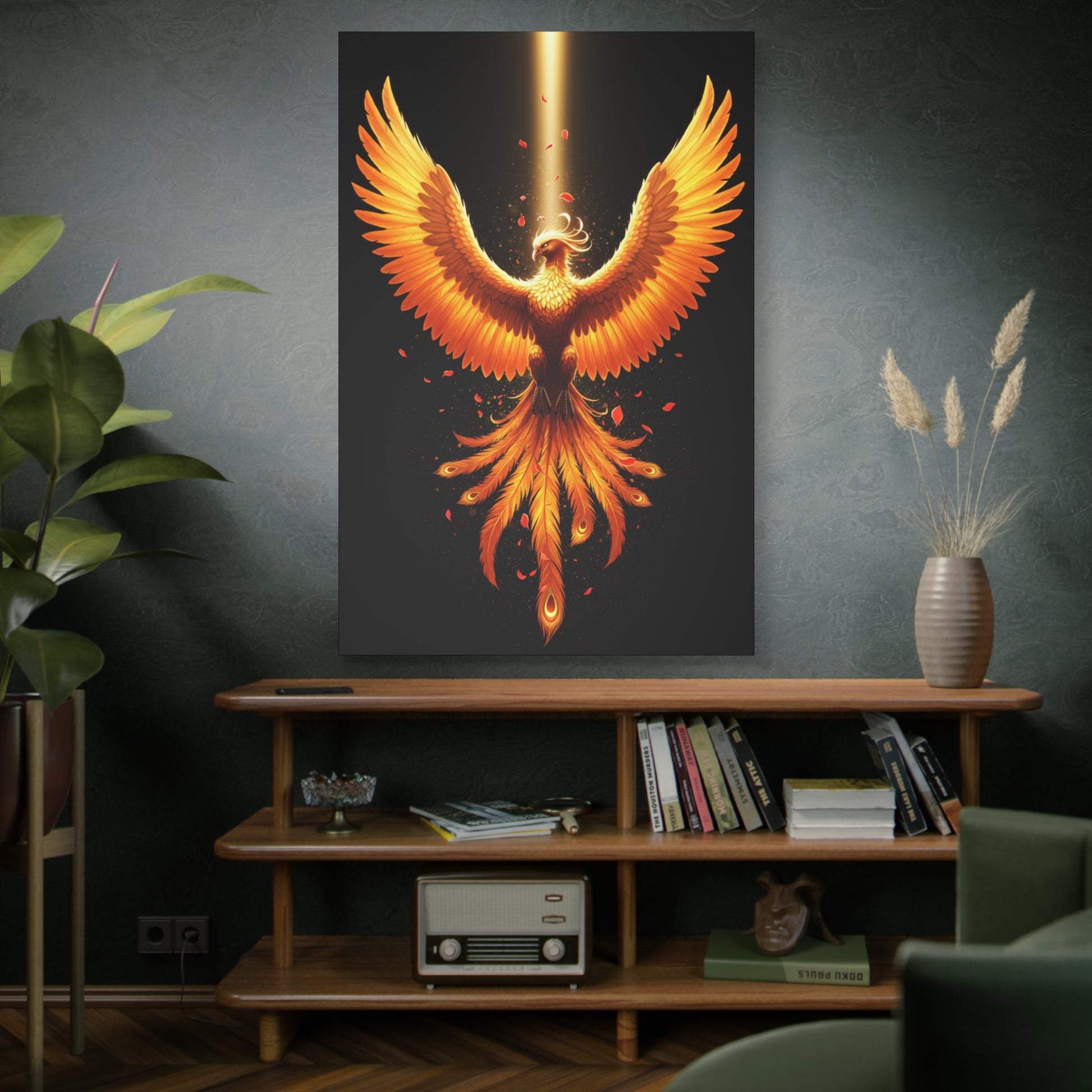 Transform your space with this stunning Phoenix Rising Matte Canvas, a symbol of rebirth, strength, and transformation. With its fiery orange and gold hues set against a deep black background, this artwork is perfect for those who seek inspiration and motivation in their everyday environment. Crafted with premium-quality matte canvas, this piece exudes sophistication while maintaining a modern, sleek aesthetic. Whether for your living room, office, or bedroom, this Phoenix Rising canvas is a statement piece that speaks of triumph and renewal.