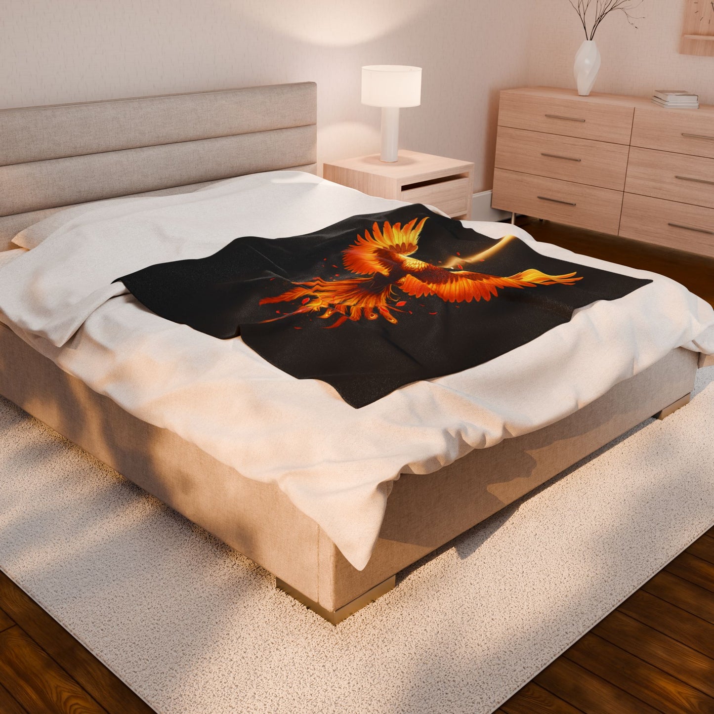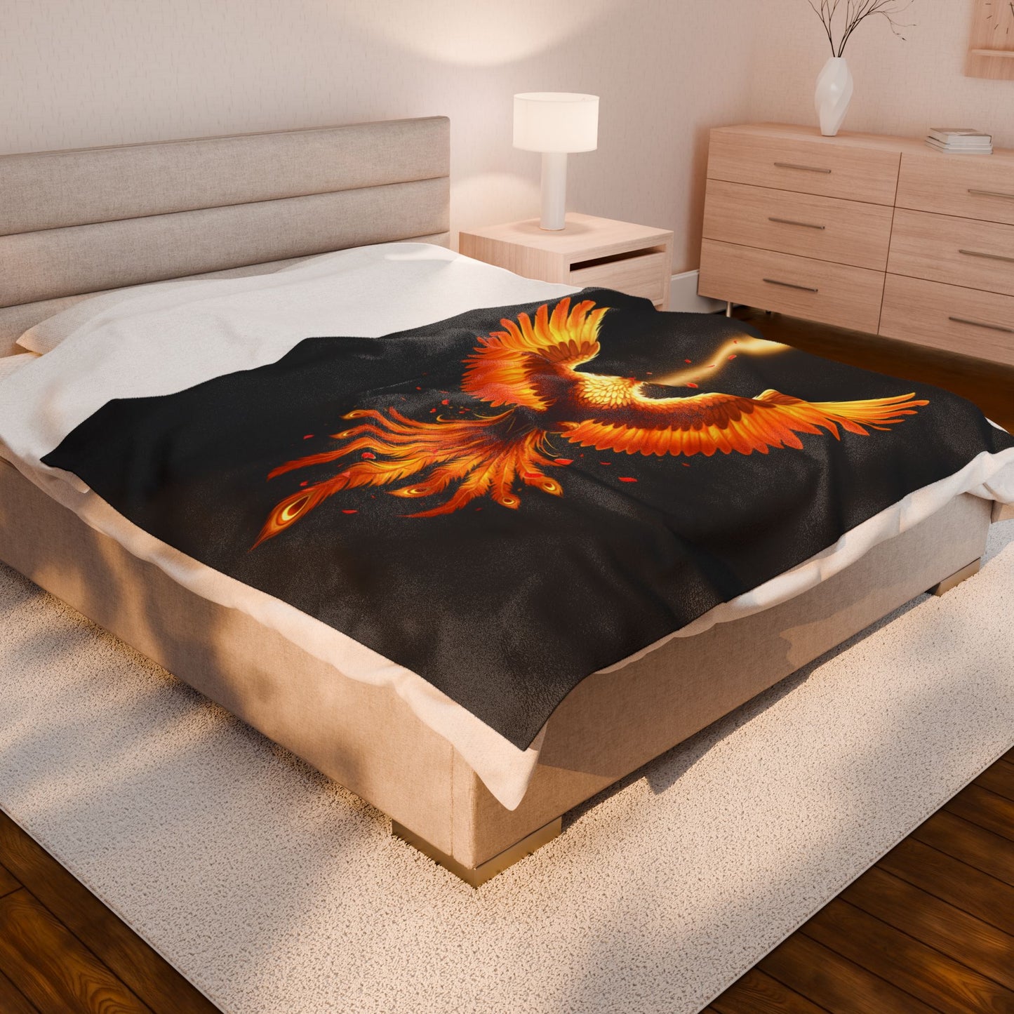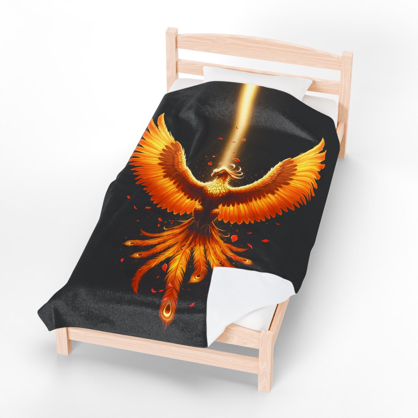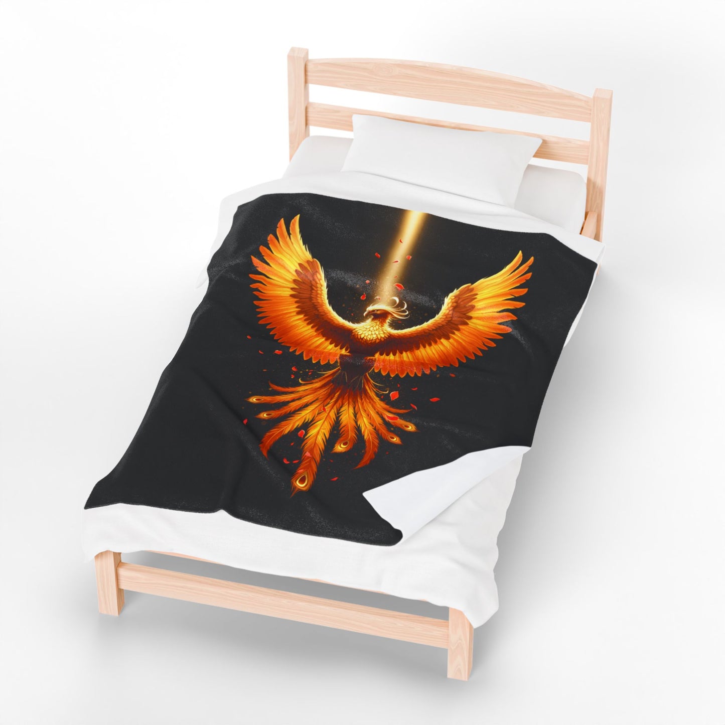 Wrap yourself in the legendary warmth and resilience of the Phoenix Fire Velveteen Plush Blanket! Designed to ignite your spirit and provide unparalleled comfort, this ultra-soft throw features a breathtaking phoenix in vibrant hues of orange, gold, and red, soaring against a deep black background. Whether you're curling up with a book, enhancing your bedroom décor, or seeking a symbol of renewal and strength, this blanket is perfect for dreamers and warriors alike.