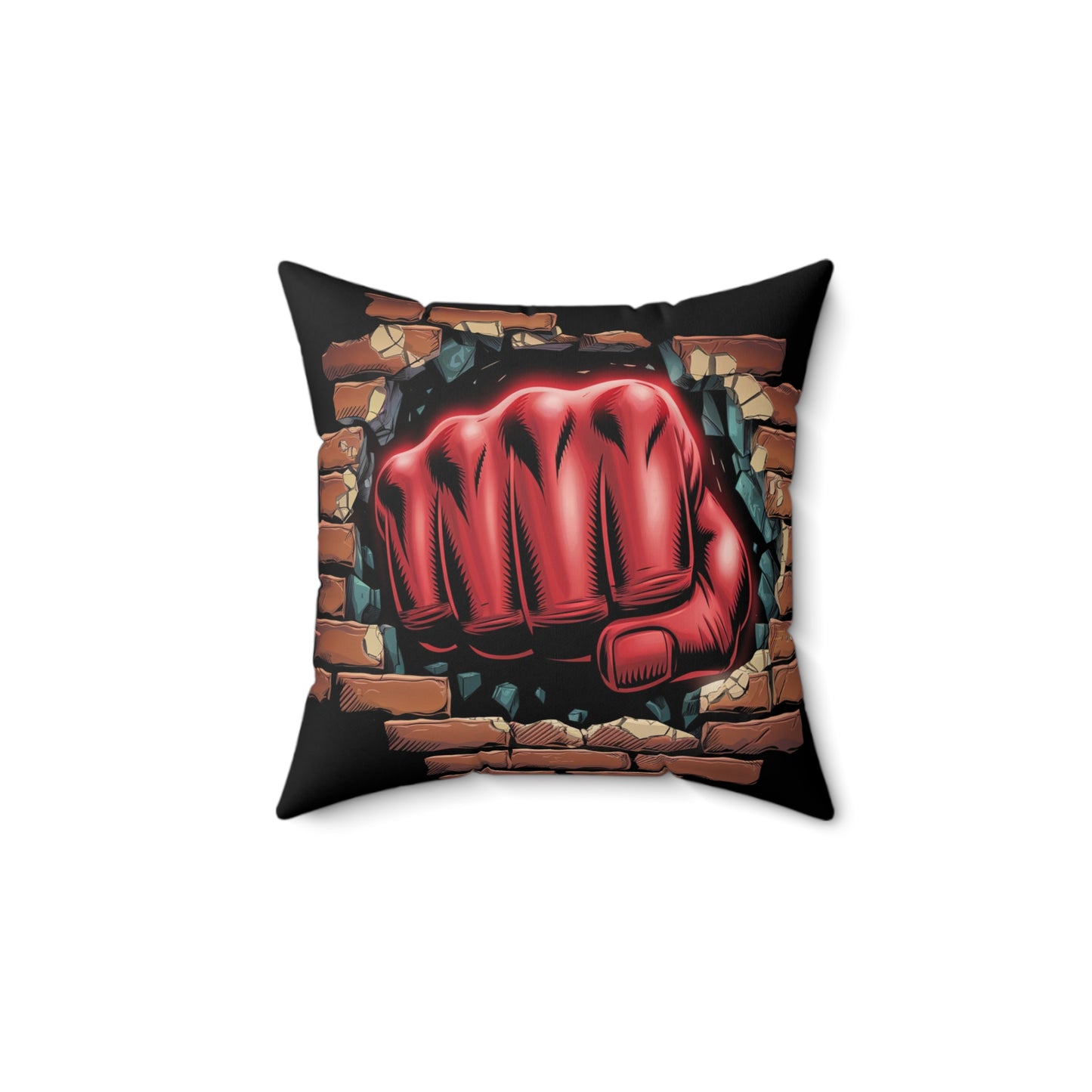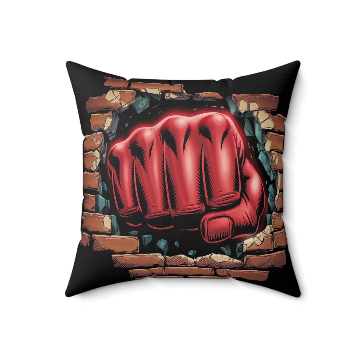 A fun pillow featuring the Red Fist smashing through a brick wall, perfect for adding a unique touch to any living space. This pillow is ideal for fans of action-packed designs and makes a great gift for those who love bold and dynamic home decor. Perfect for birthdays, holidays, and special occasions.