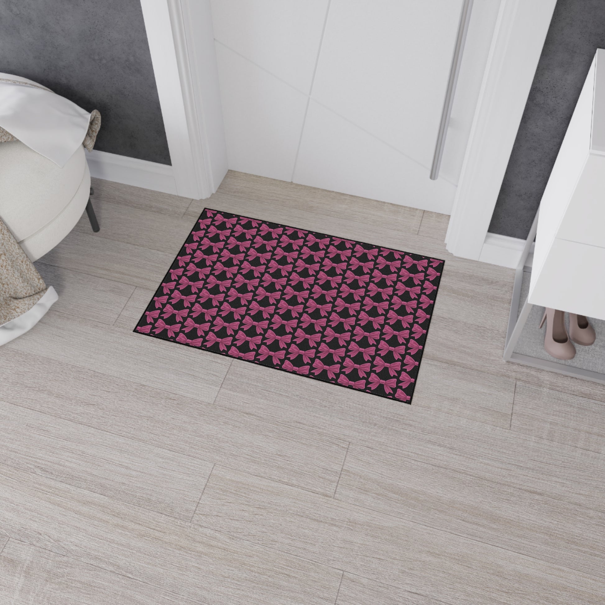 Pink Bow Doormat - Cute Aesthetic Floor Mat for Entryway, Kitchen or Bedroom | Girly Indoor Outdoor Rug Gift for Her