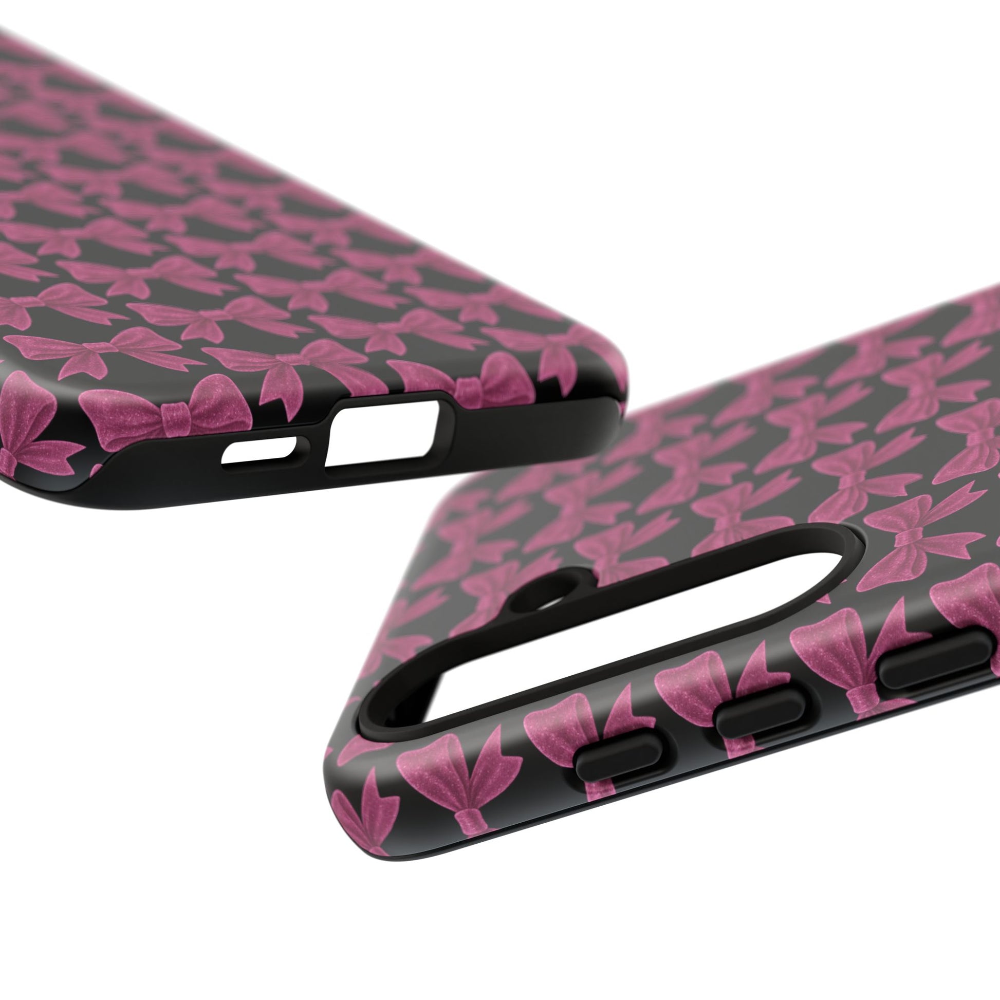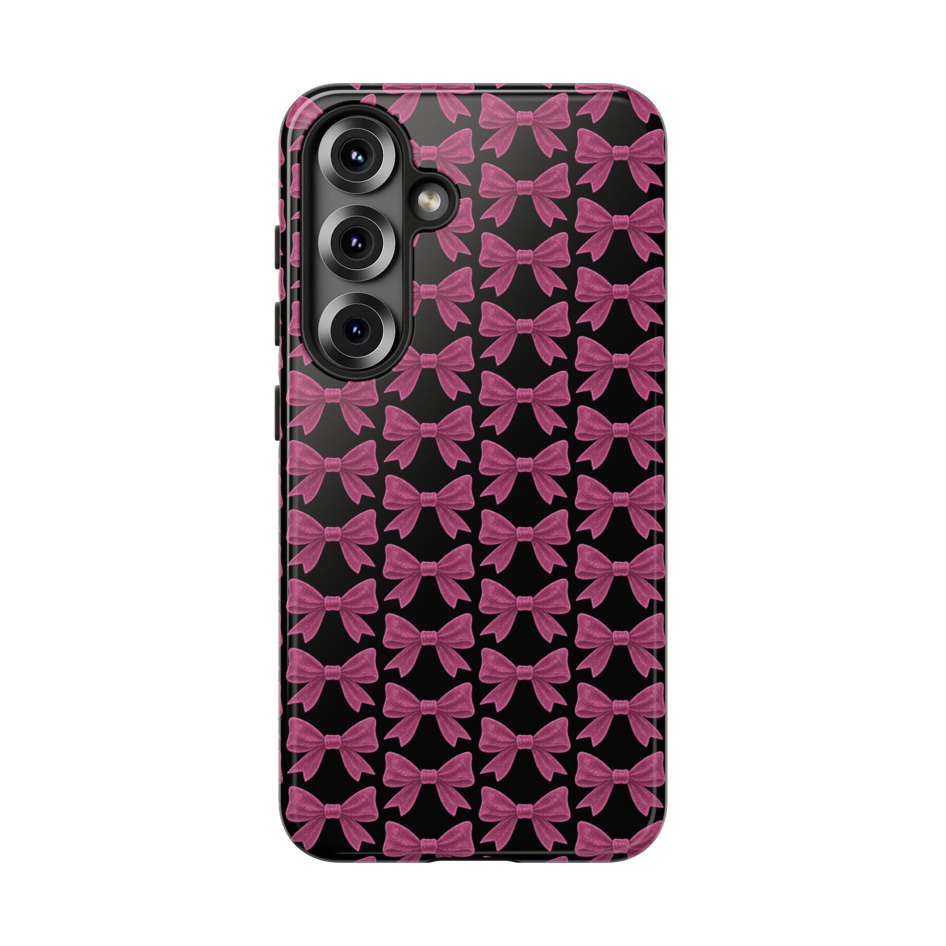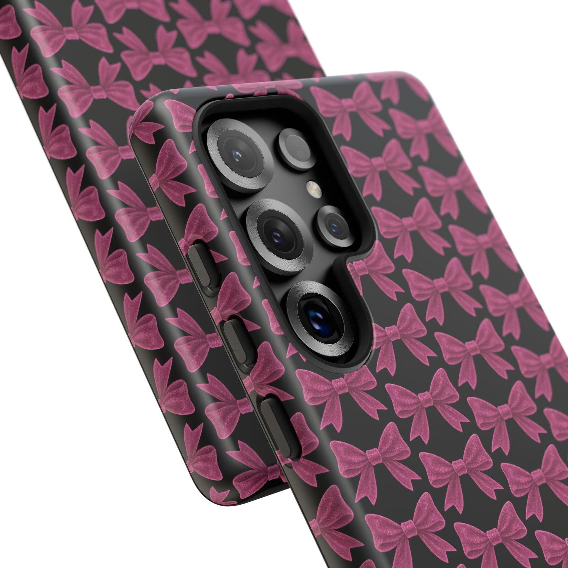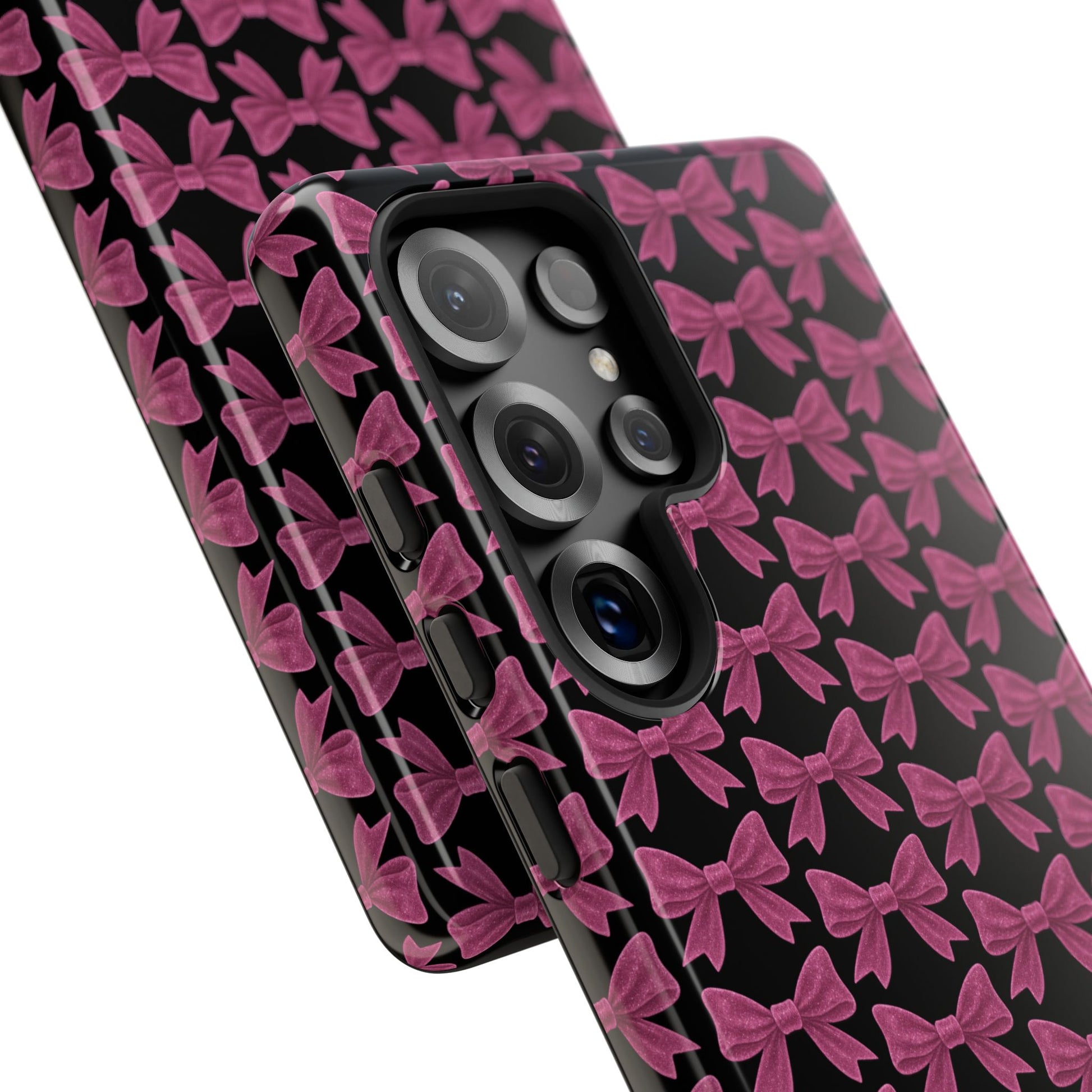 This pink bow Samsung case is the ultimate accessory for anyone obsessed with coquette vibes, soft girl style, or Y2K aesthetics. With an all-over print of glossy pink bows on a sleek black background, it’s cute, classy, and a total statement piece.
