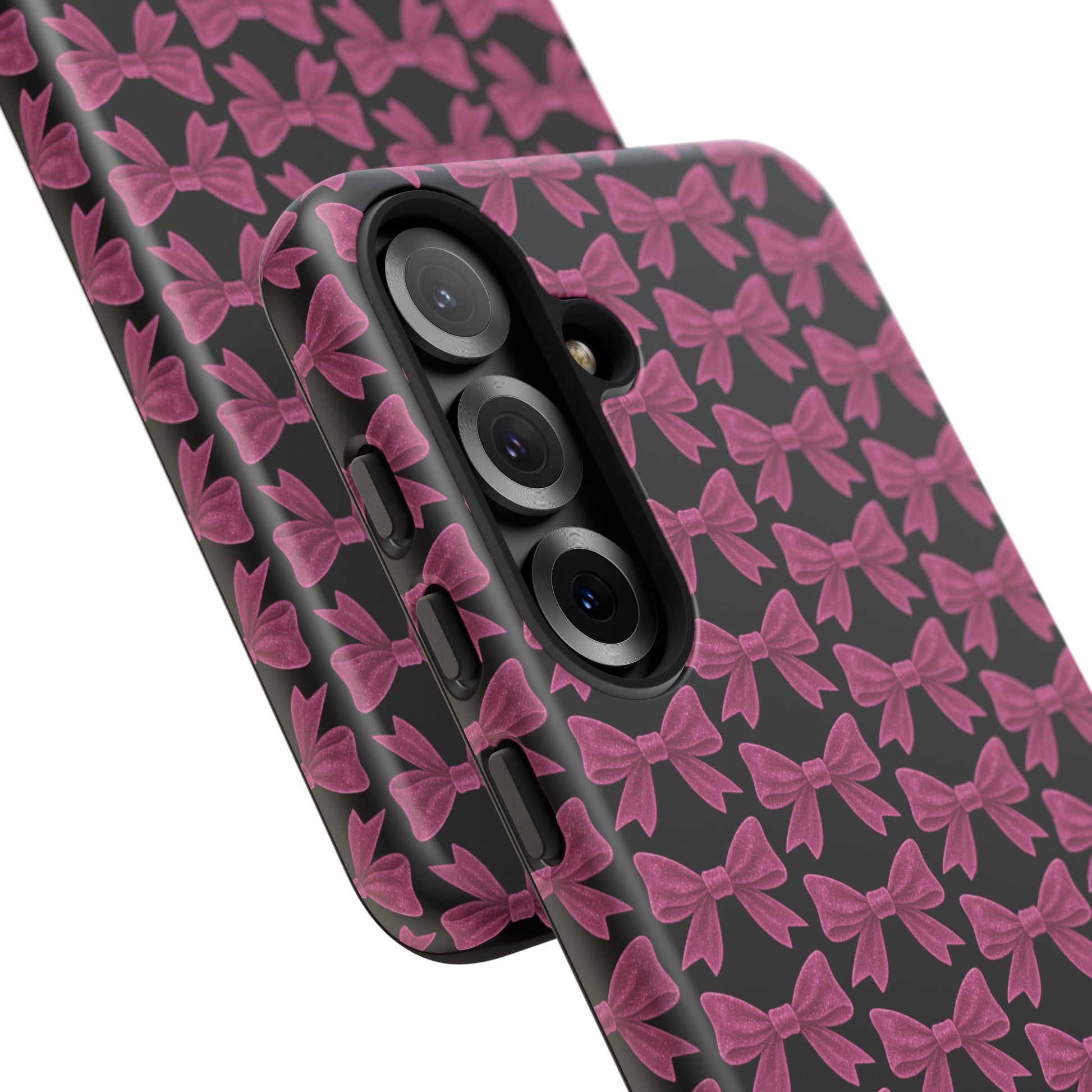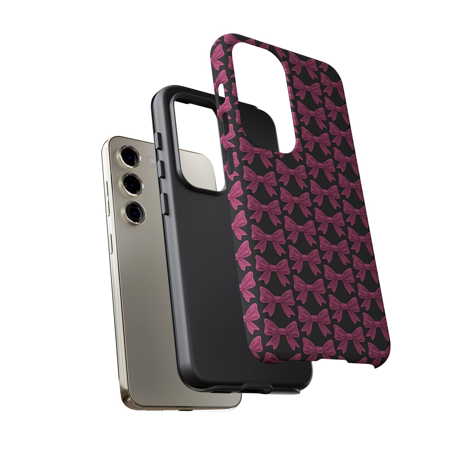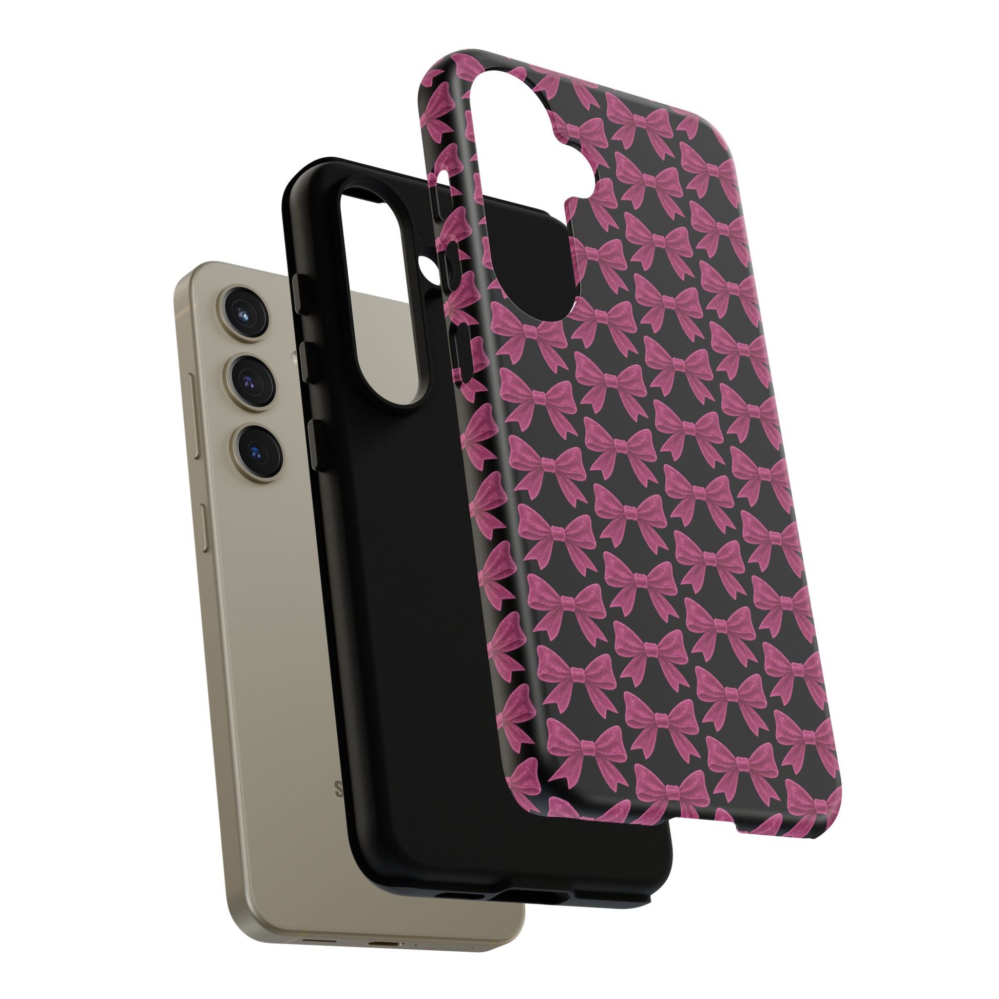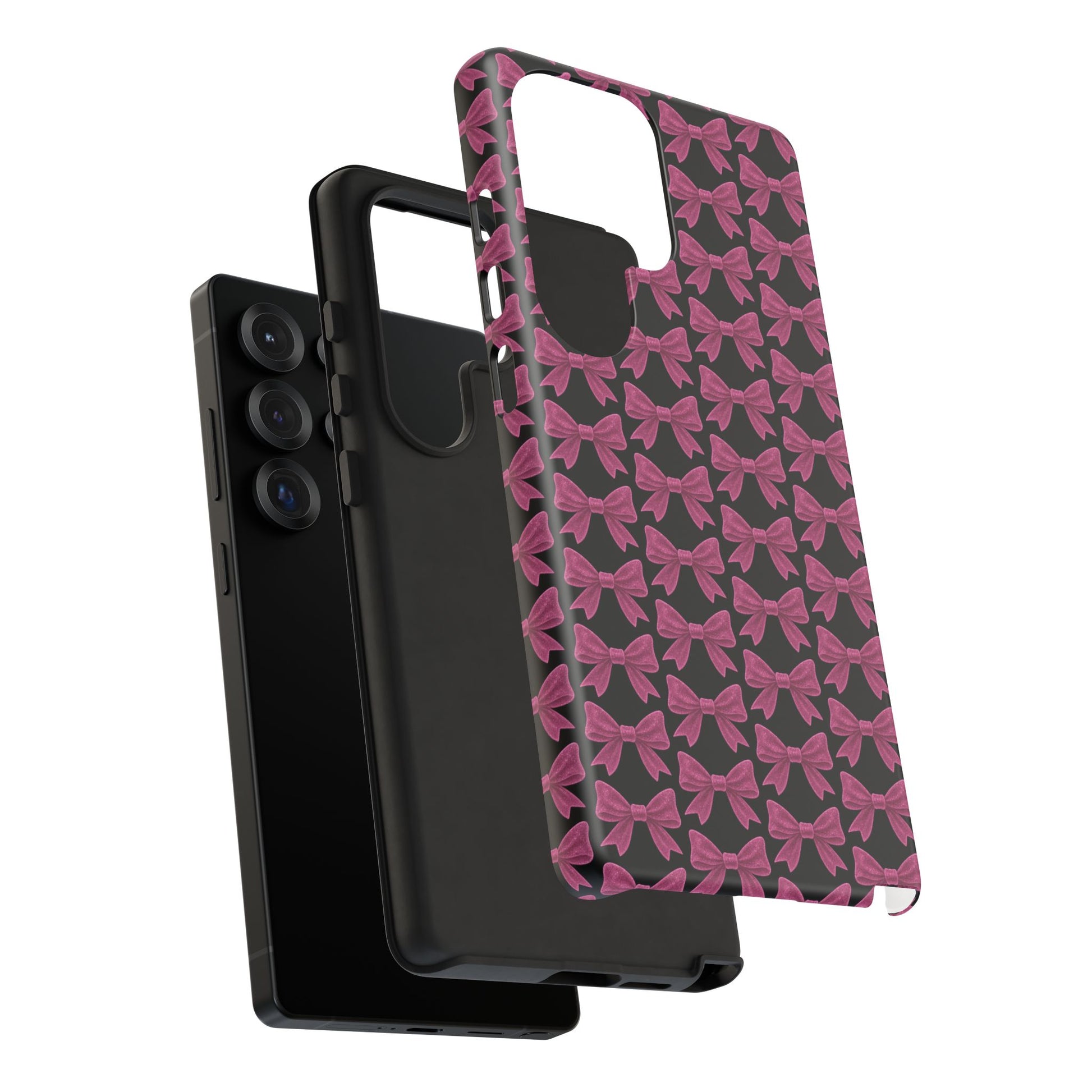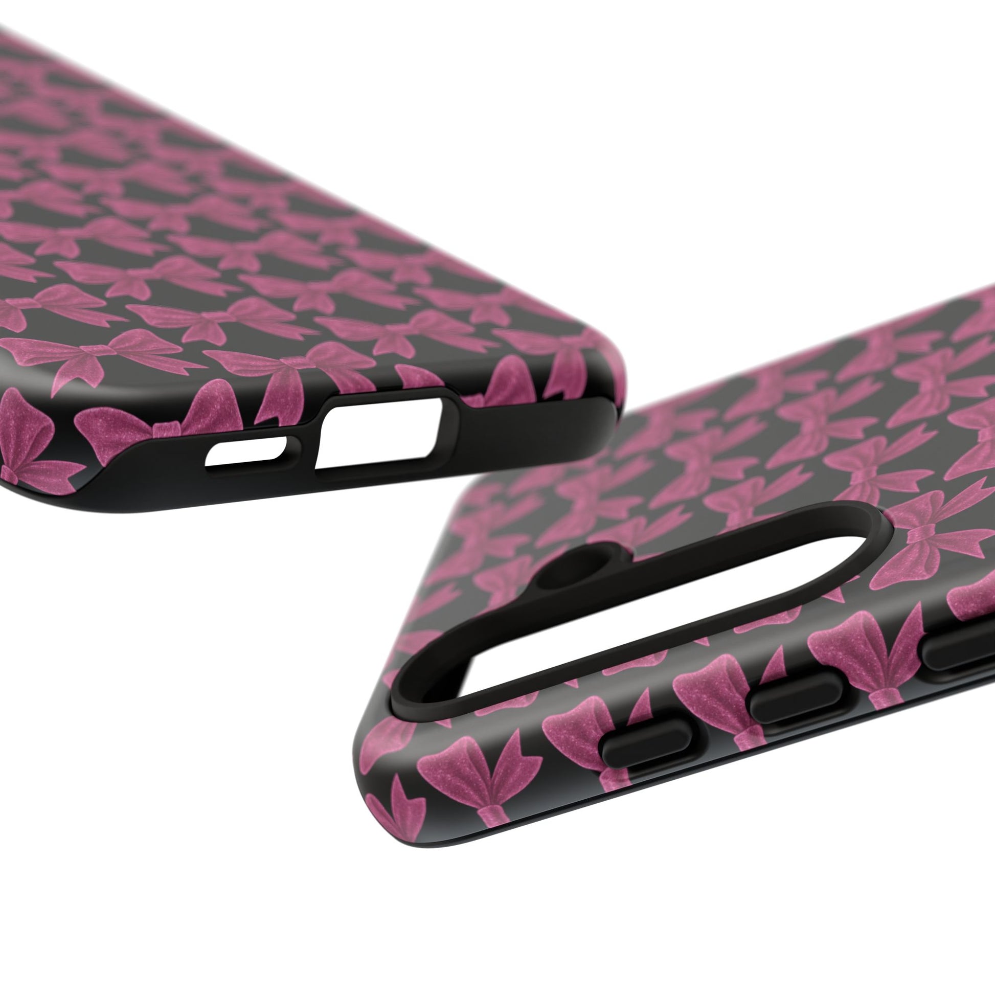 This pink bow Samsung case is the ultimate accessory for anyone obsessed with coquette vibes, soft girl style, or Y2K aesthetics. With an all-over print of glossy pink bows on a sleek black background, it’s cute, classy, and a total statement piece.