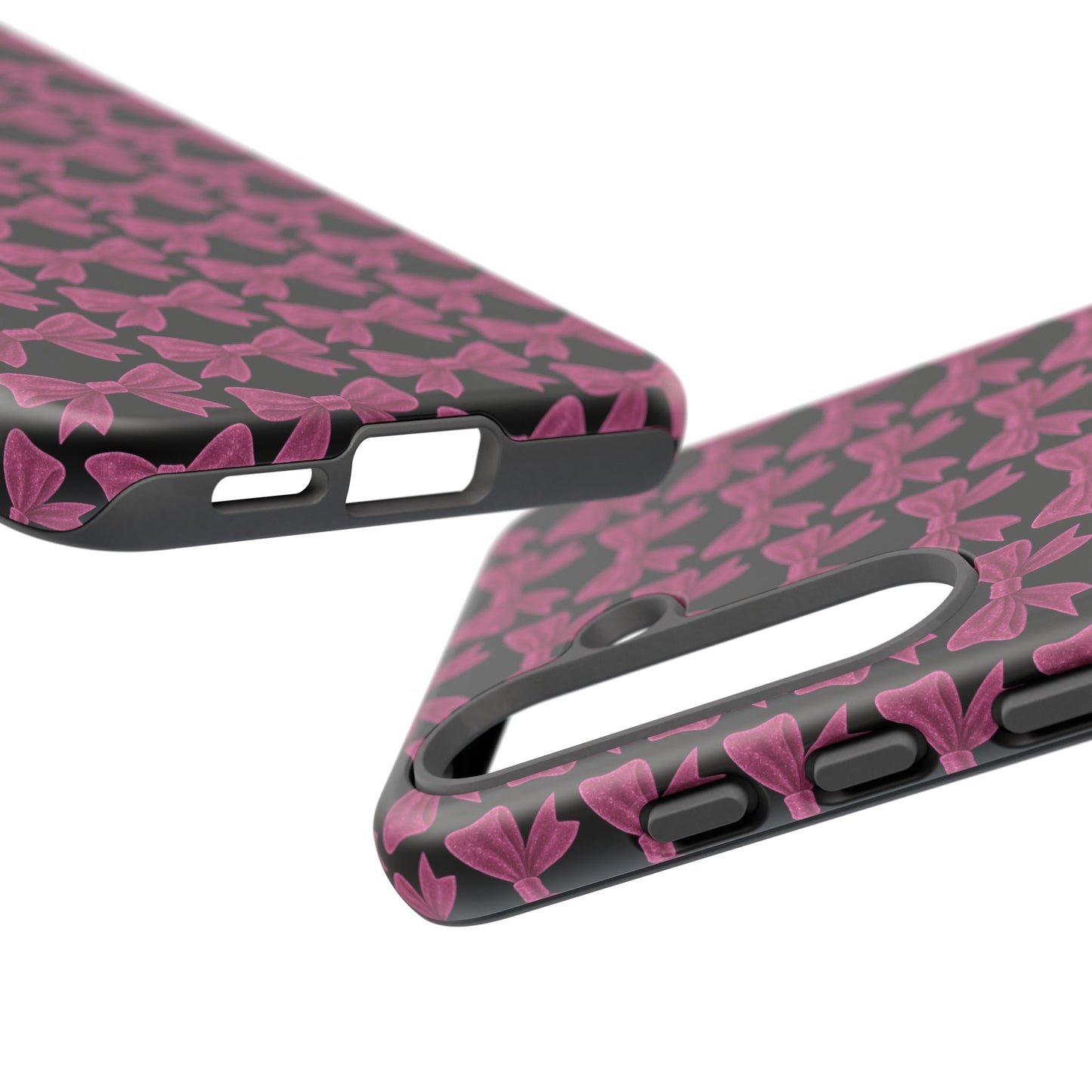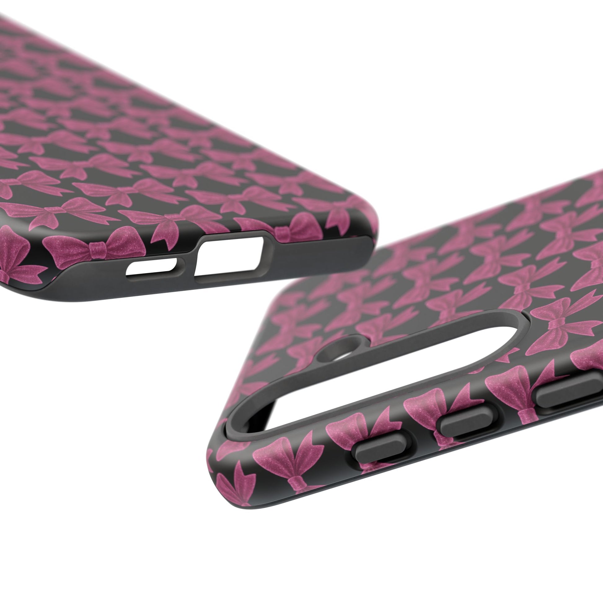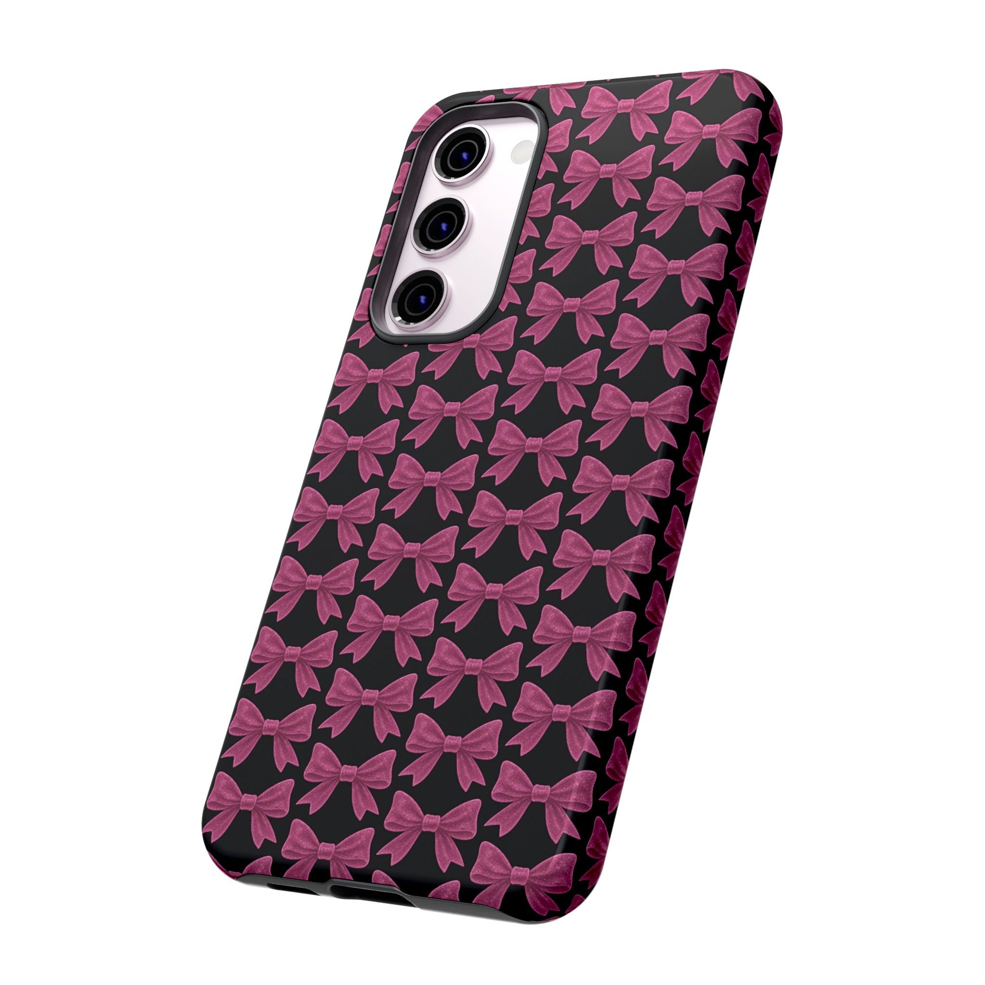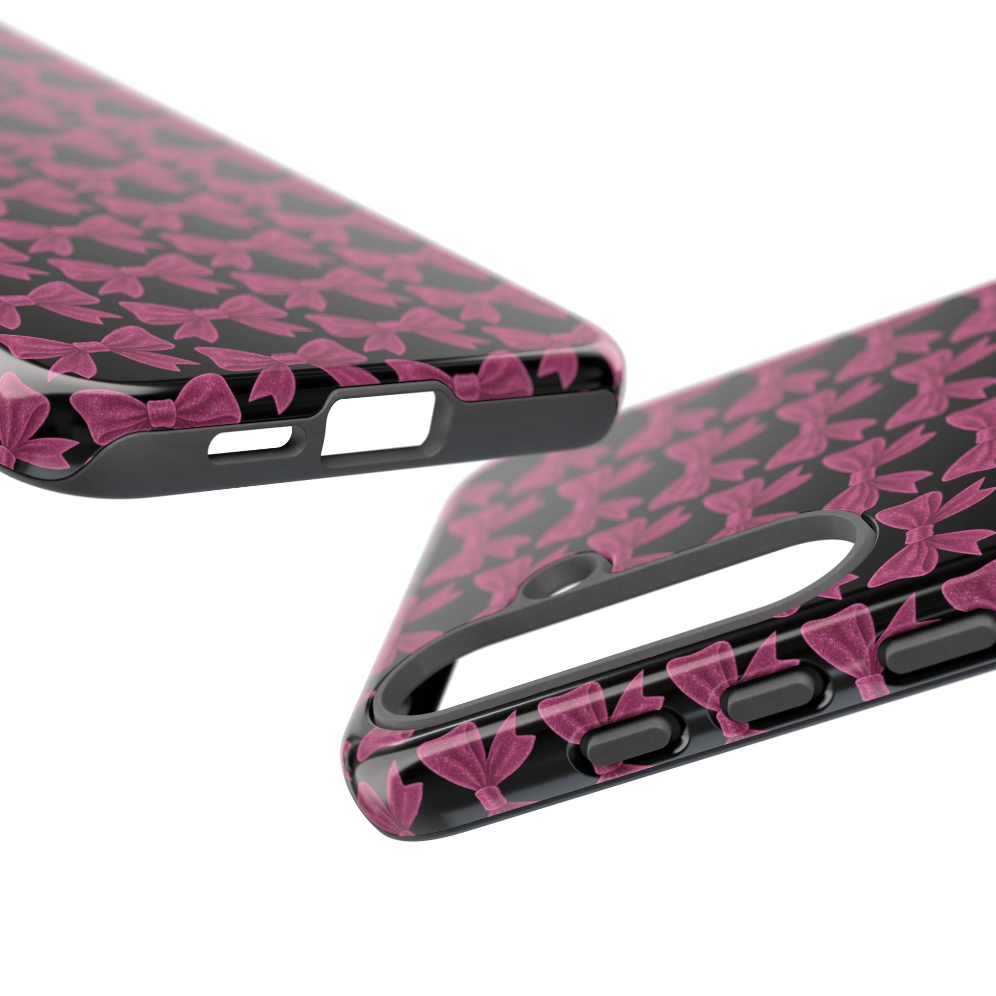 This pink bow Samsung case is the ultimate accessory for anyone obsessed with coquette vibes, soft girl style, or Y2K aesthetics. With an all-over print of glossy pink bows on a sleek black background, it’s cute, classy, and a total statement piece.