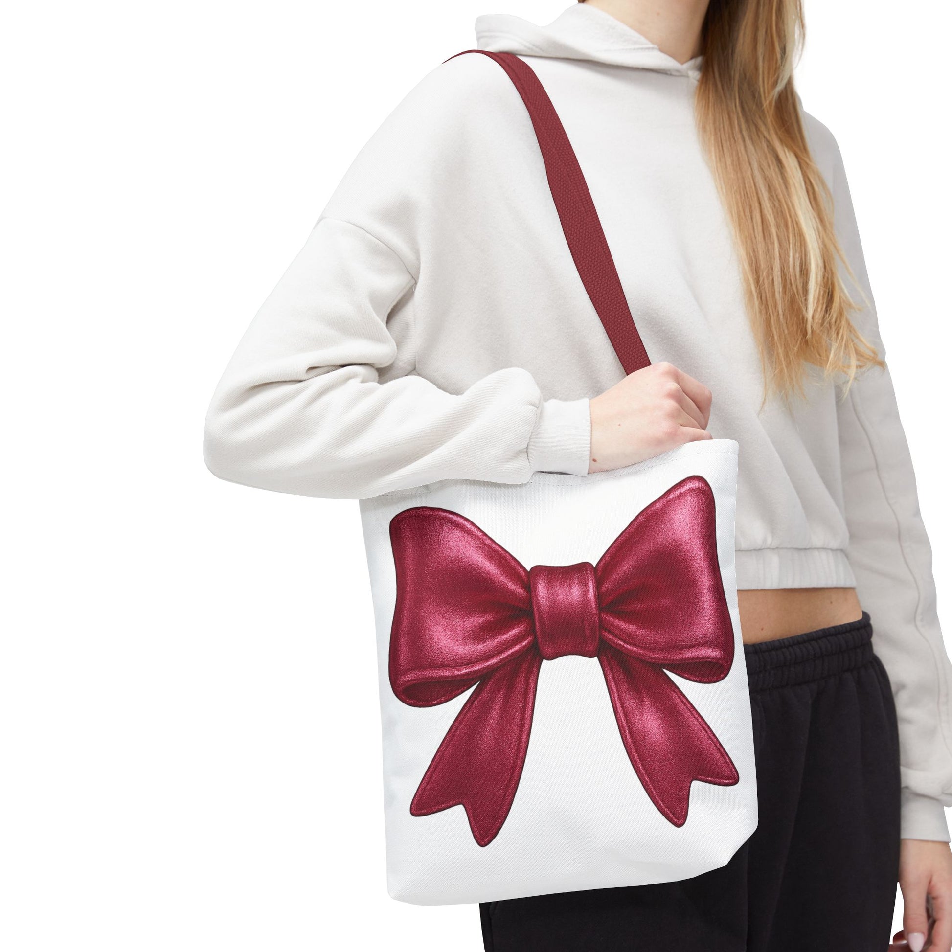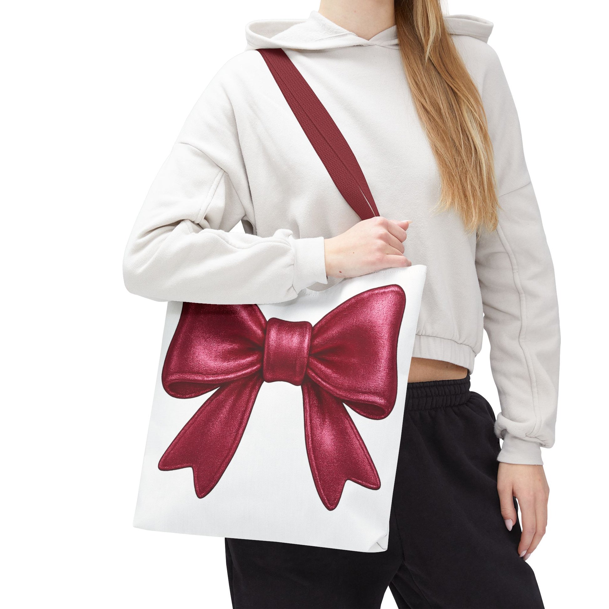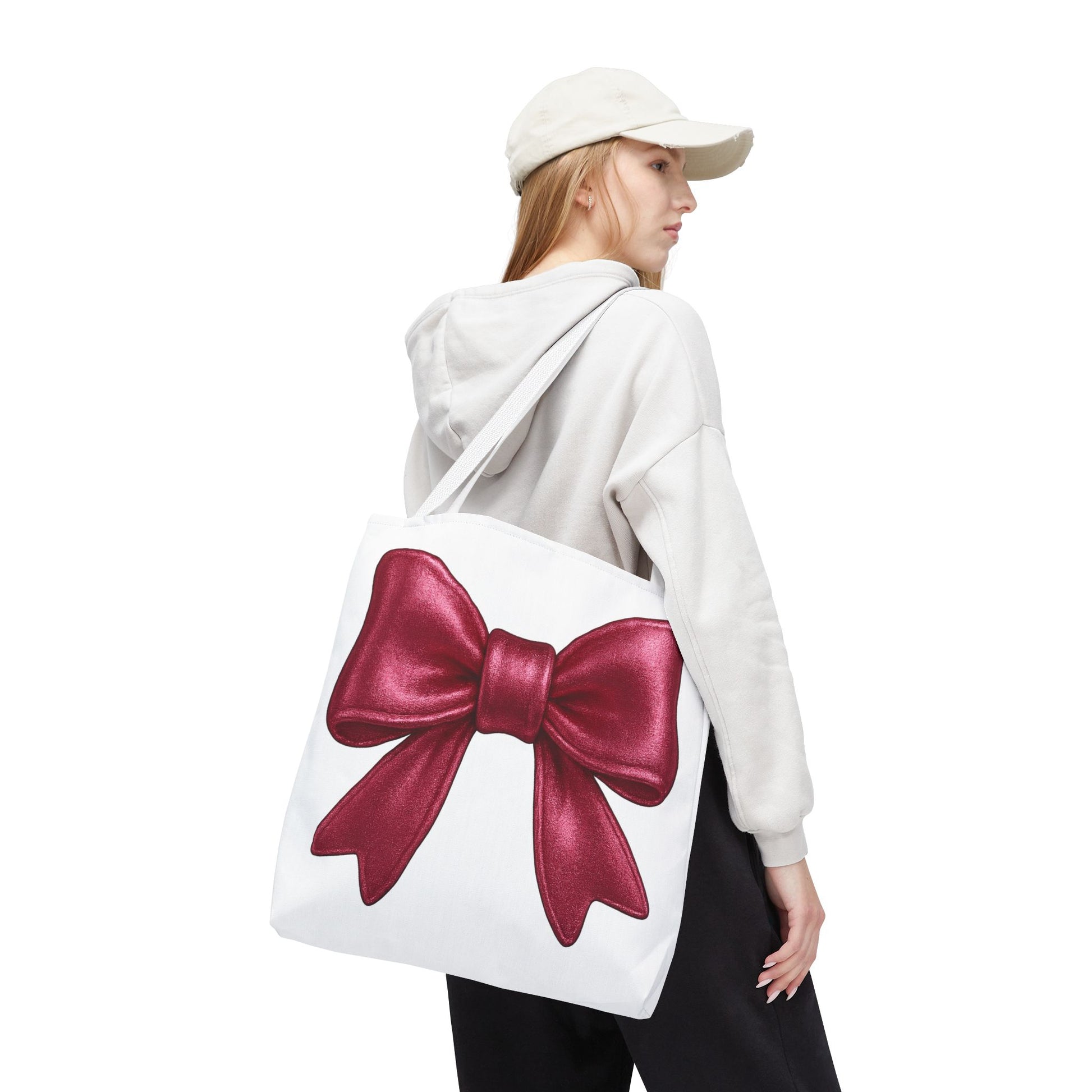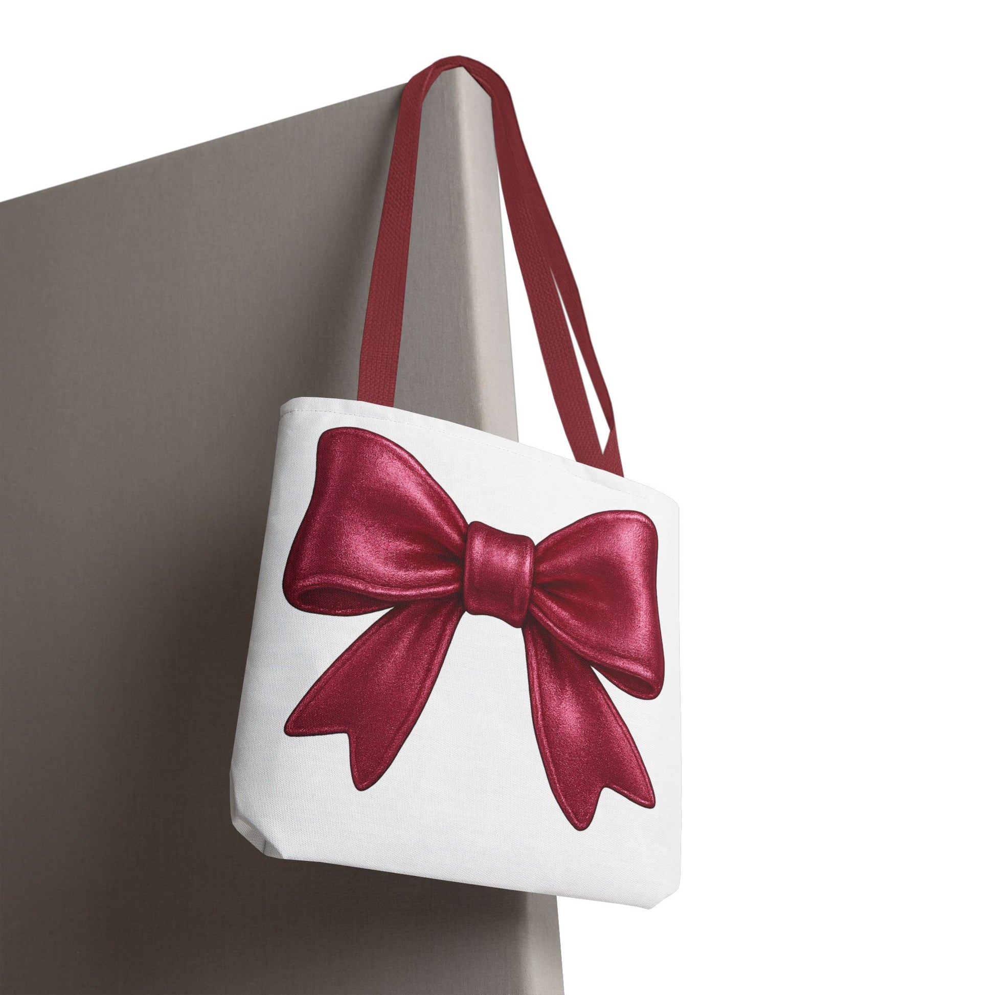 Add a touch of charm to your everyday look with this elegant red bow tote bag! Featuring a large, detailed satin-style red bow printed on a crisp white background, this tote is perfect for anyone who loves girly, kawaii, or festive styles. Whether you're headed to brunch, class, or the market, this bag adds a pop of personality to every outfit.