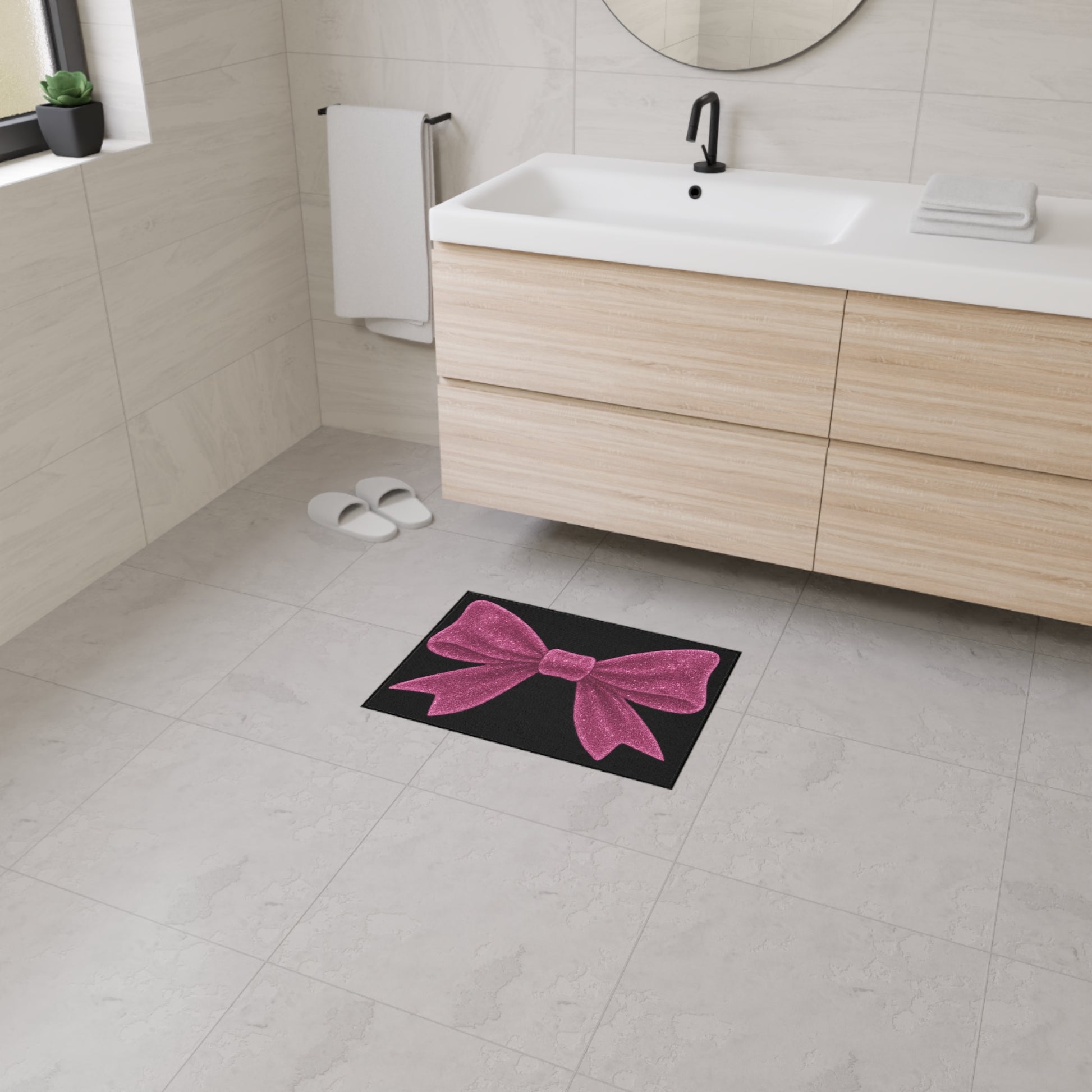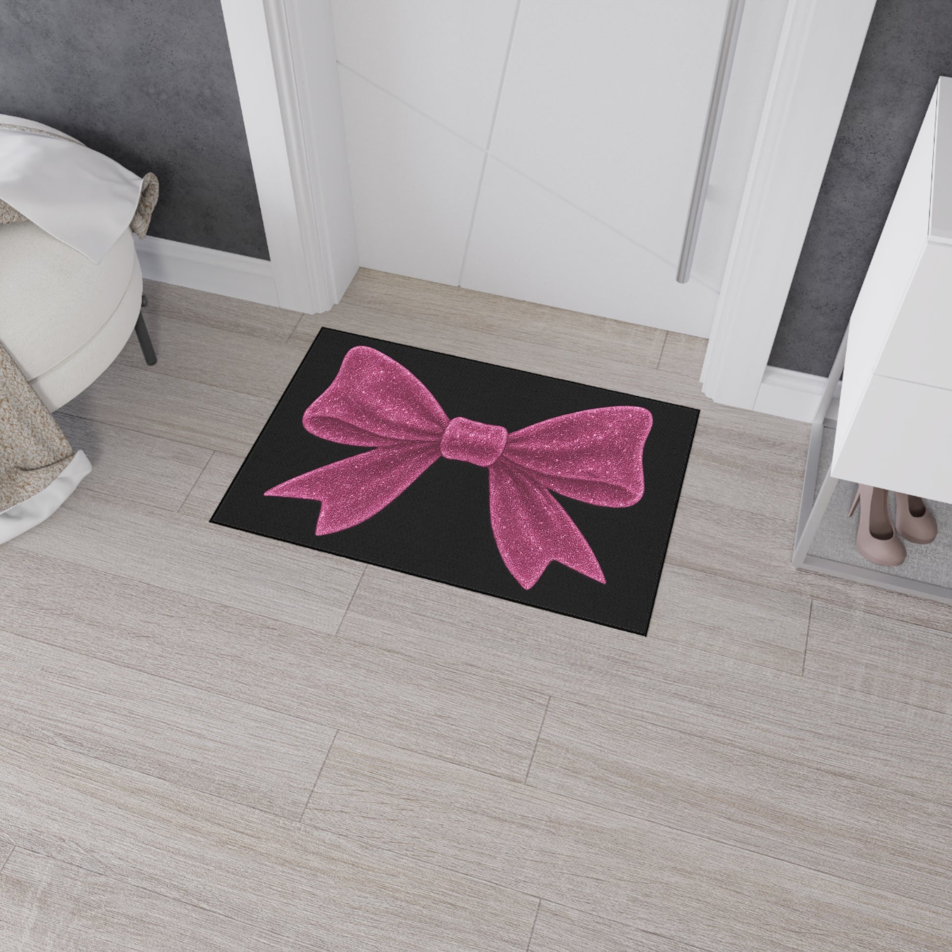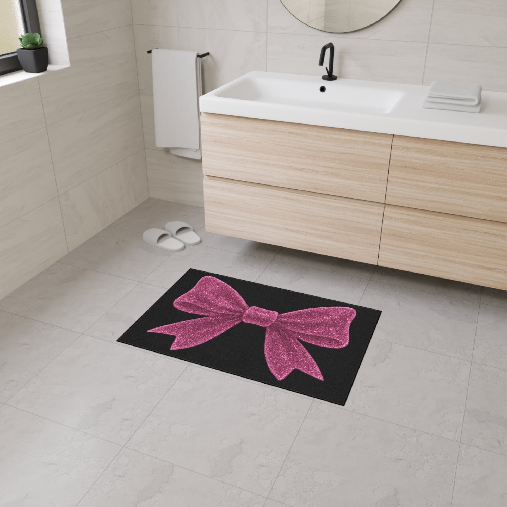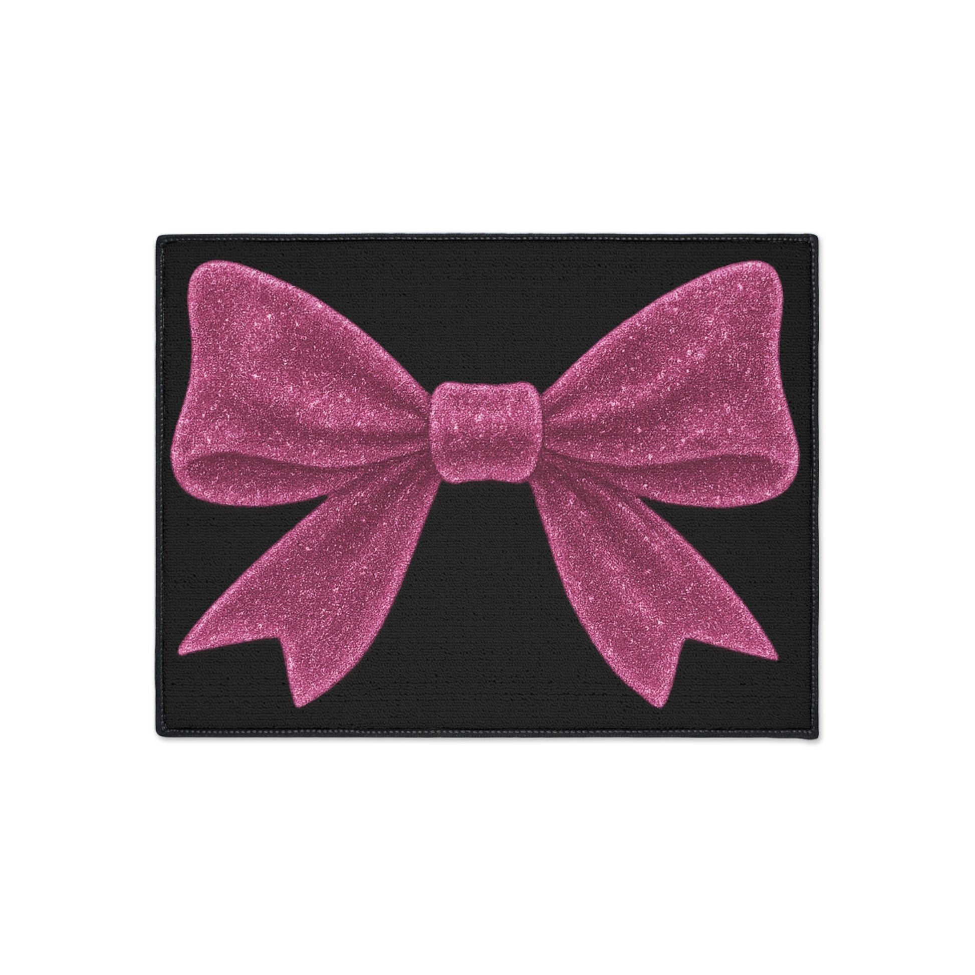 Welcome your guests in style with this Pink Glitter Bow Doormat – the perfect blend of cute and classy! Featuring a bold, sparkly pink bow on a sleek black background, this aesthetic rug brings personality to any doorway, bedroom, or glam space.