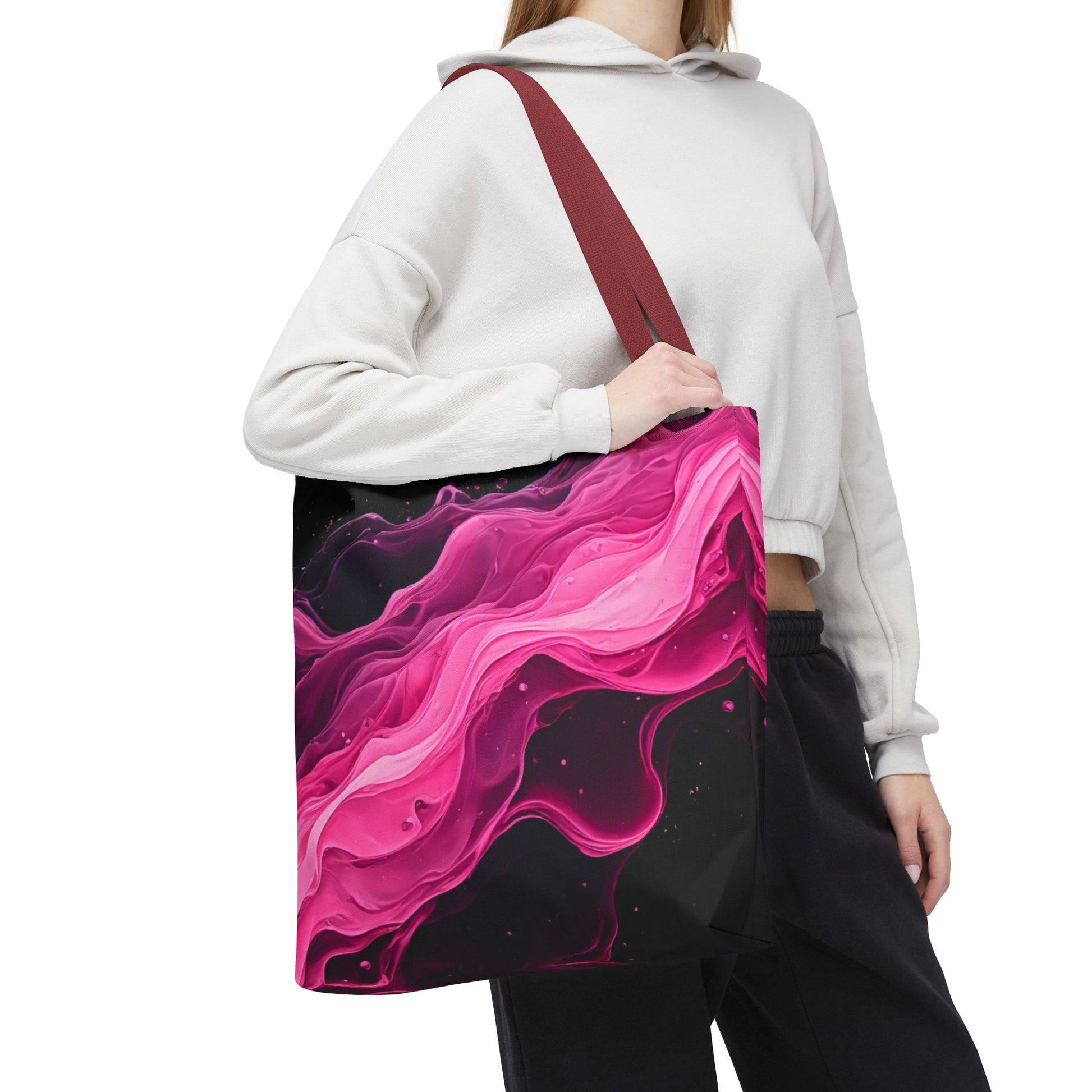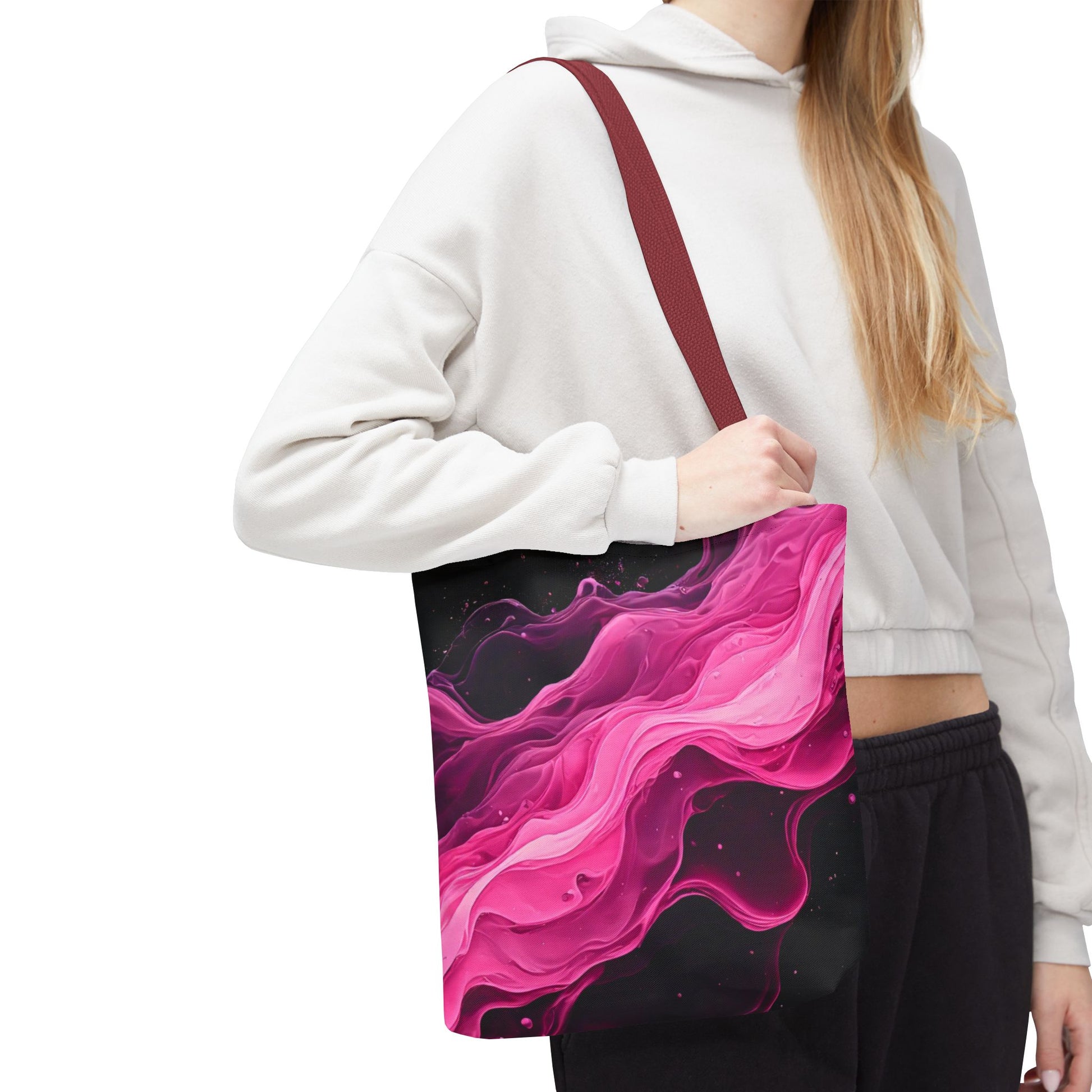 Make every outing a moment of modern artistry with this Pink Abstract Tote Bag. Featuring vivid magenta swirls reminiscent of fluid expressionism, it’s an eye-catching carryall that blends art and function—perfect for errands, galleries, or everyday style statements.