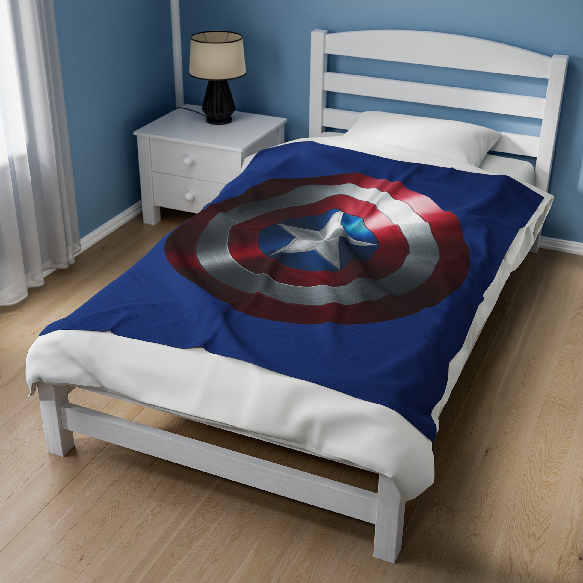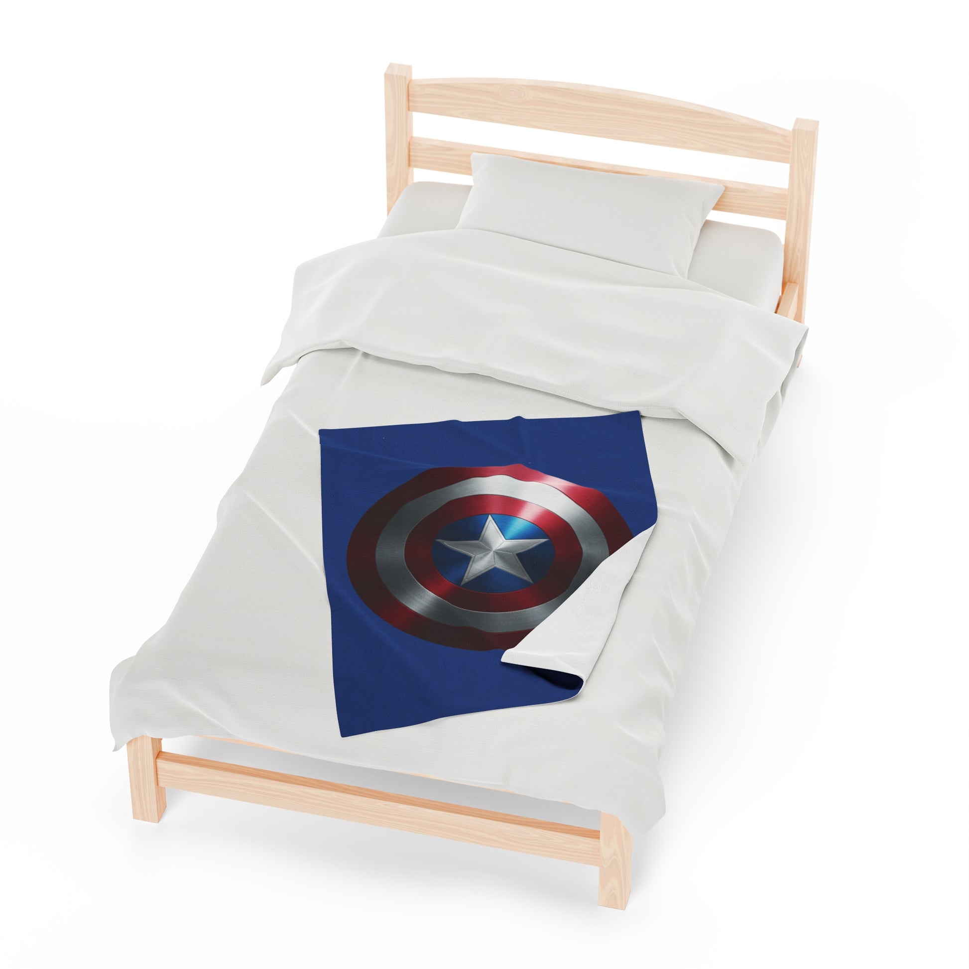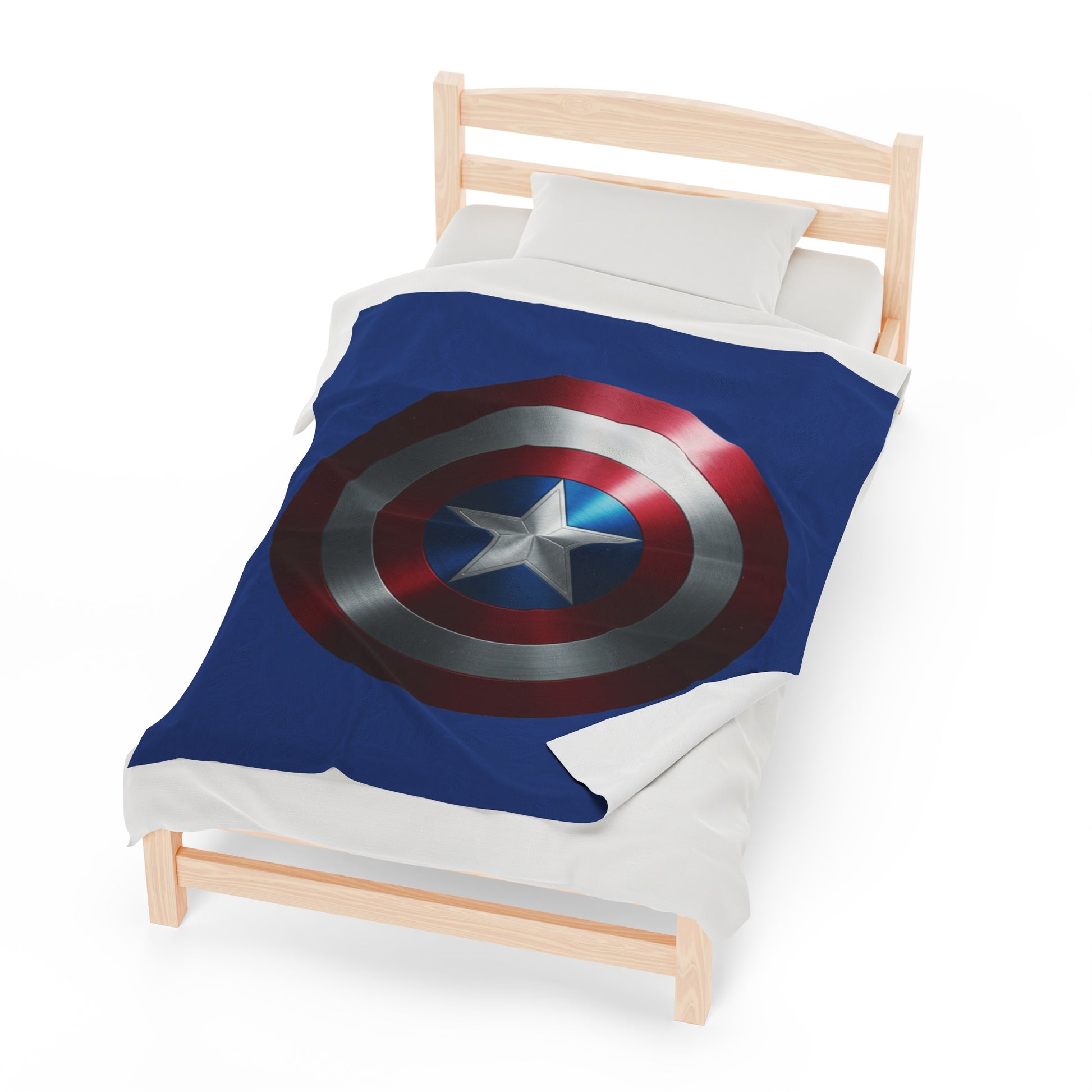 A fun blanket with the Captain America Shield design, perfect for fans of Marvel and superhero enthusiasts. This soft and cozy velveteen plush blanket adds a touch of excitement and fandom to any room, providing warmth and comfort during movie nights or lazy weekends. Ideal for Marvel fans, superhero lovers, and anyone celebrating birthdays, holidays, or special occasions.