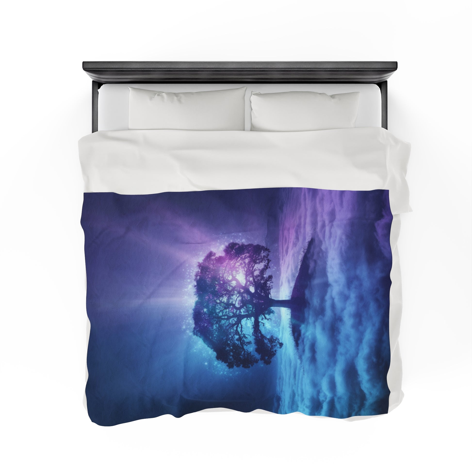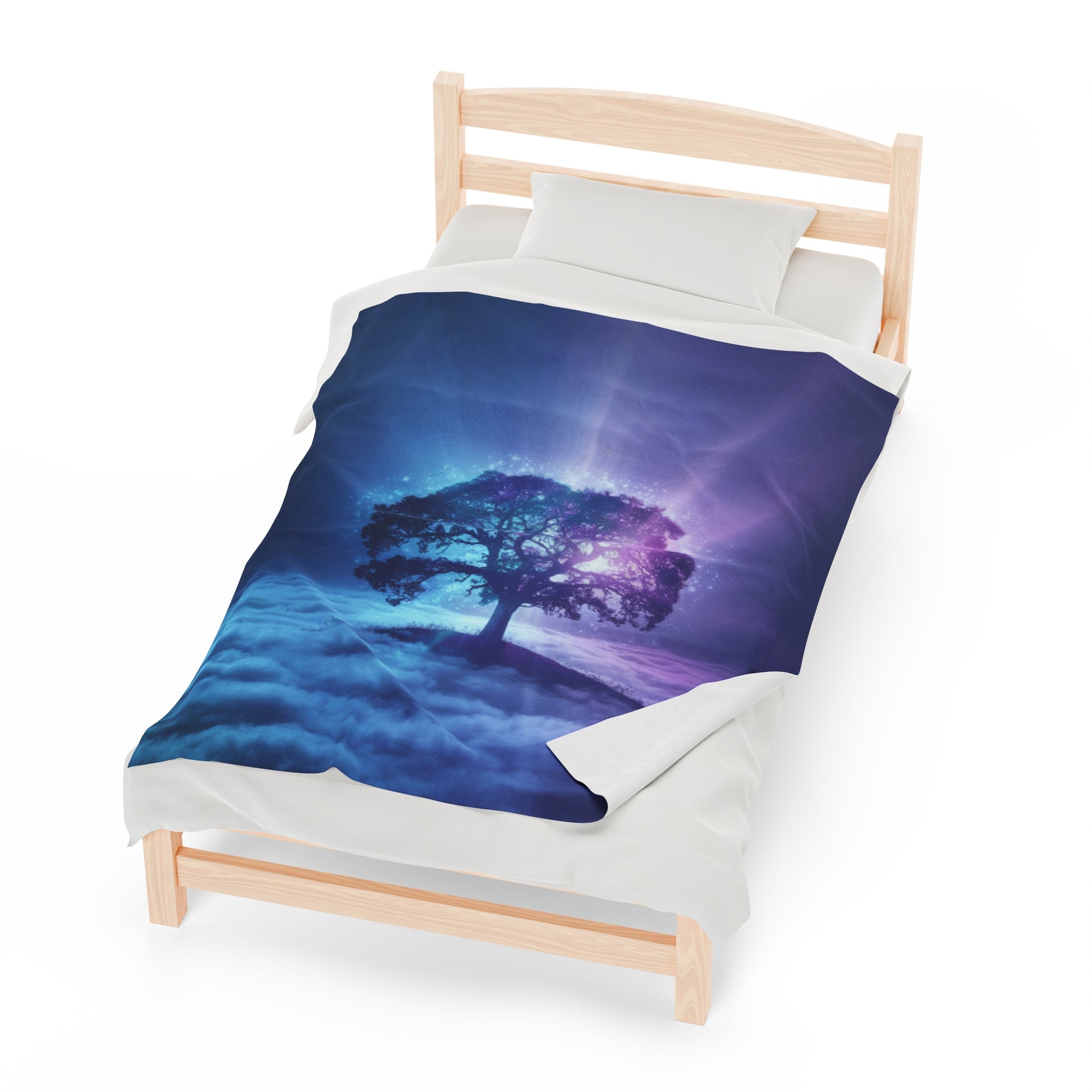 A fun plush blanket with a dreamy tree in the clouds design on it. This cozy and soft blanket is perfect for snuggling up on chilly evenings or adding a touch of whimsy to your living space. Ideal for those who love dreamy and imaginative decor, this blanket is great for gifting on birthdays, holidays, or special occasions.