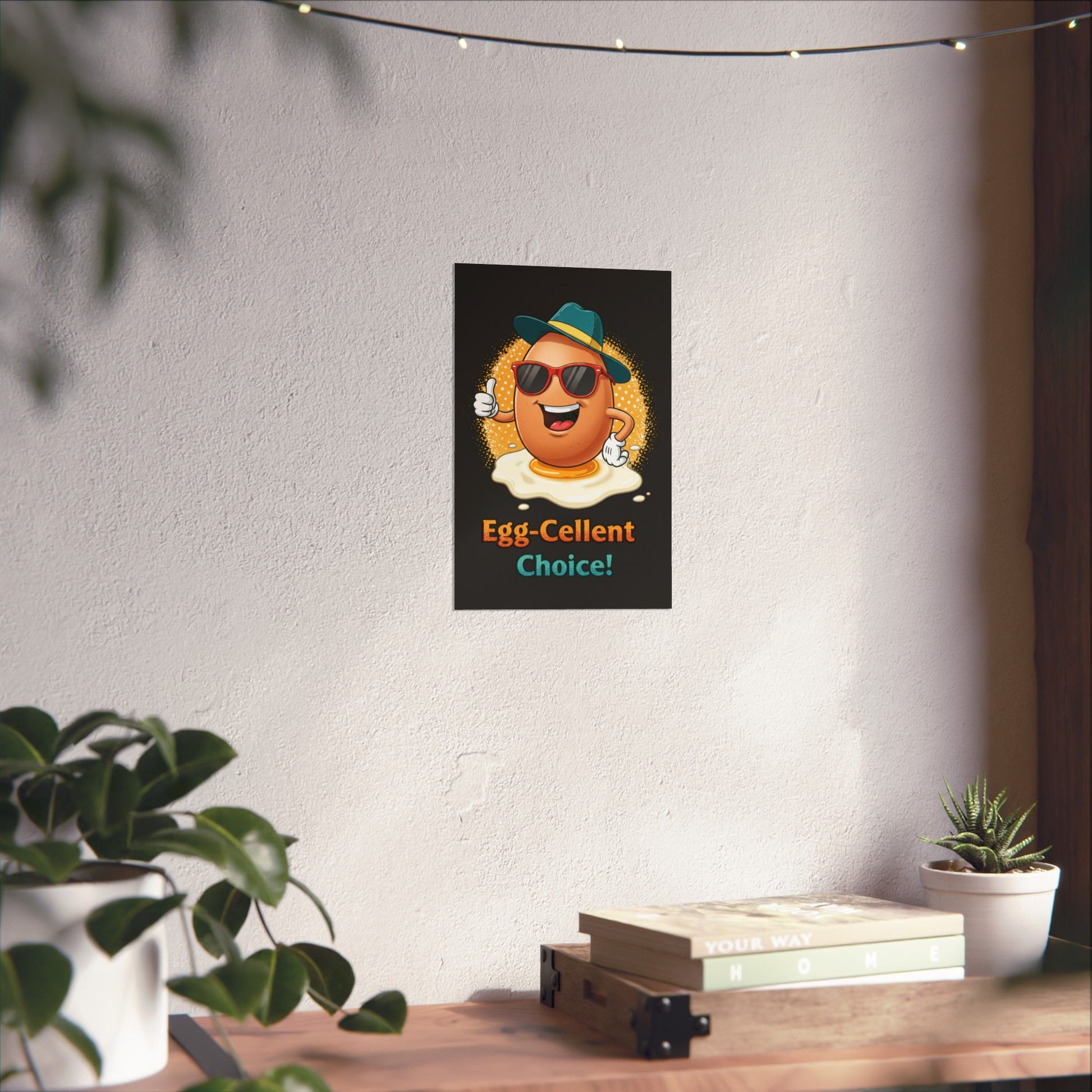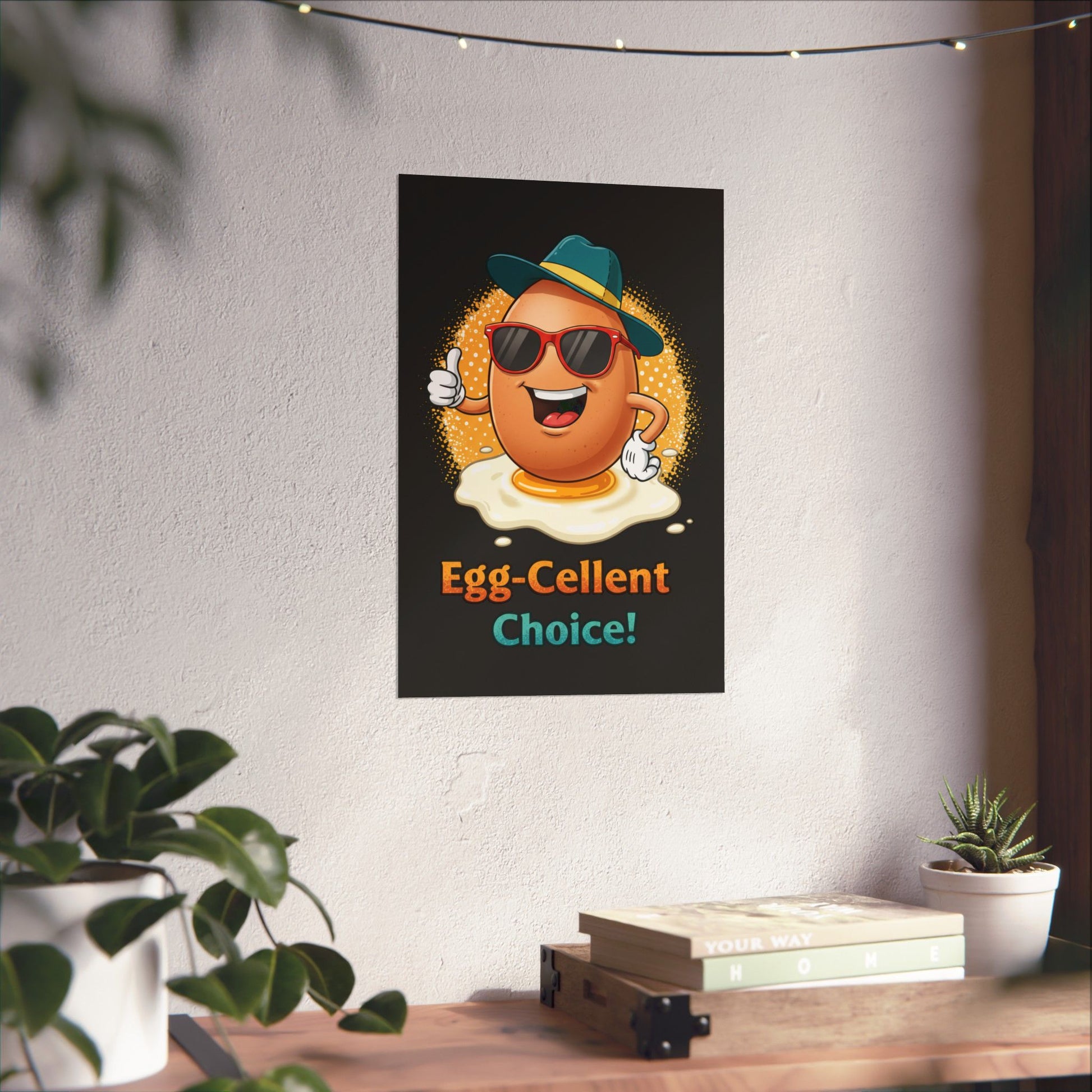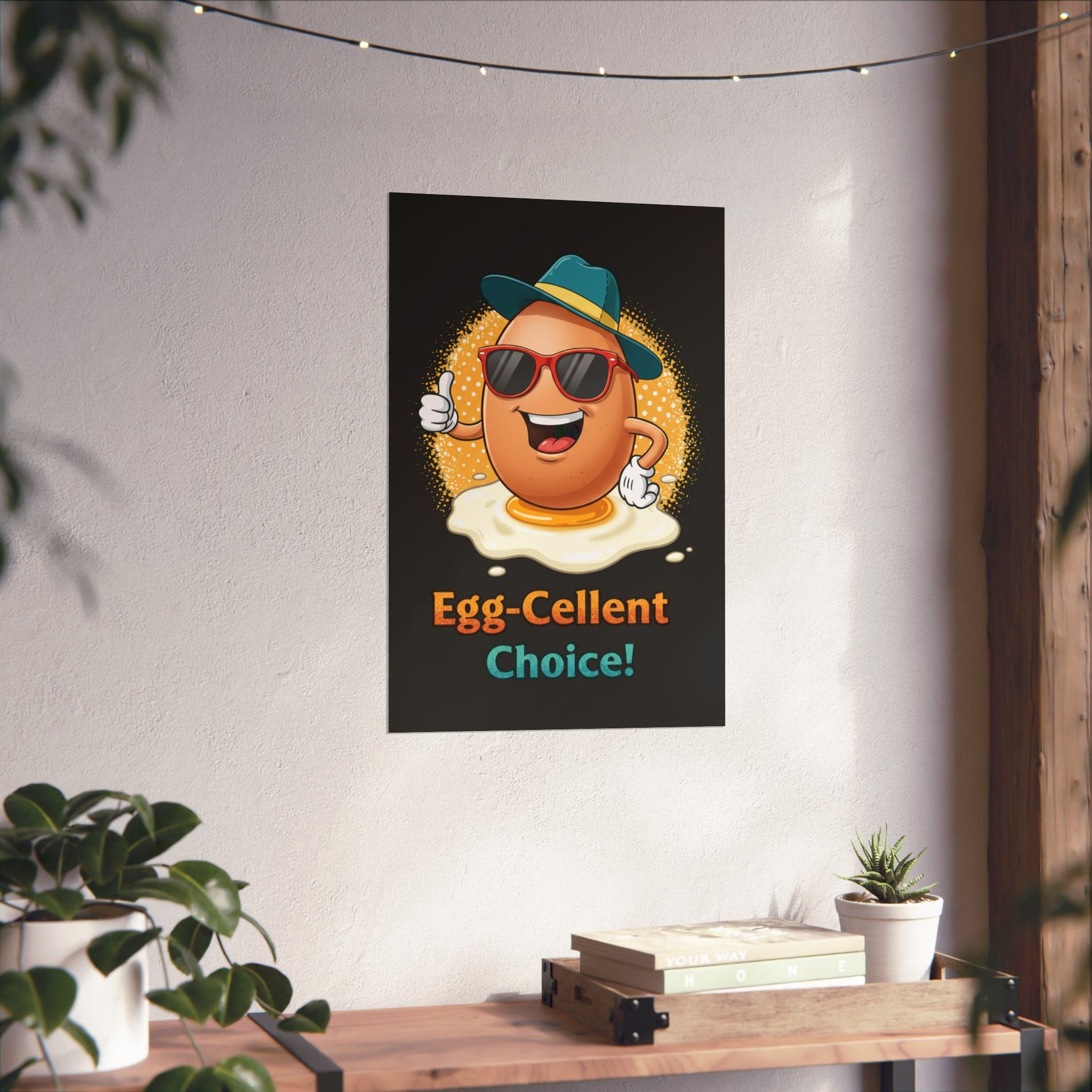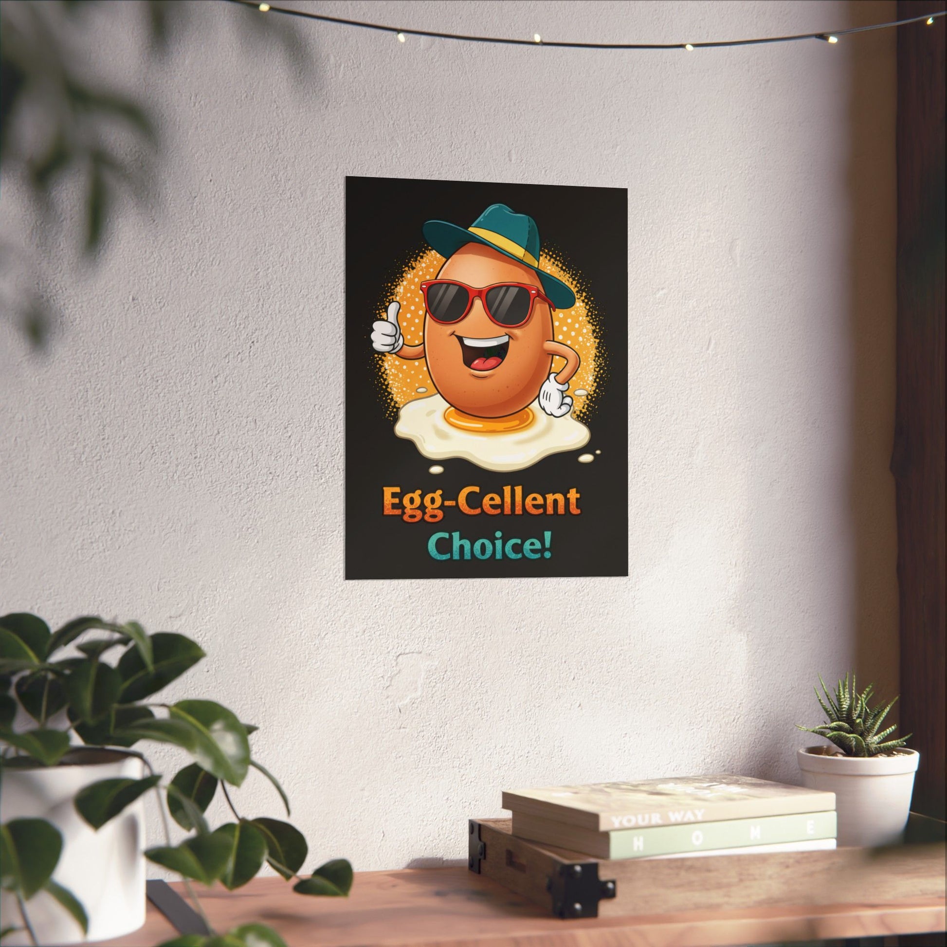 Brighten up your living space with this fun pun poster featuring an egg giving a thumbs up and saying "Egg-Cellent Choice". Perfect for adding a touch of humor to any room, this vertical poster is made with museum-grade archival paper for long-lasting quality. Ideal for those who love quirky decor and puns, this poster is great for gifting during Easter or any time of the year.