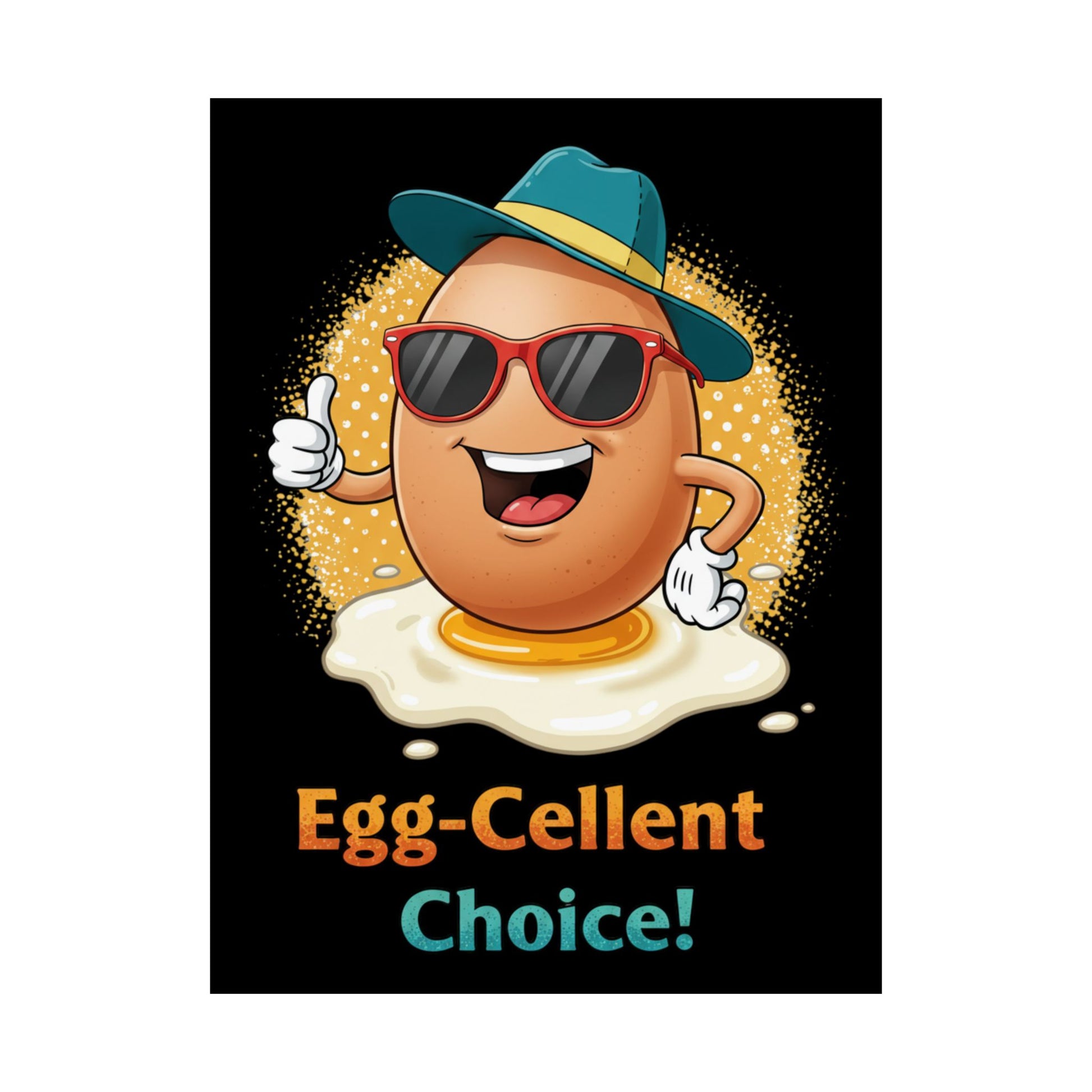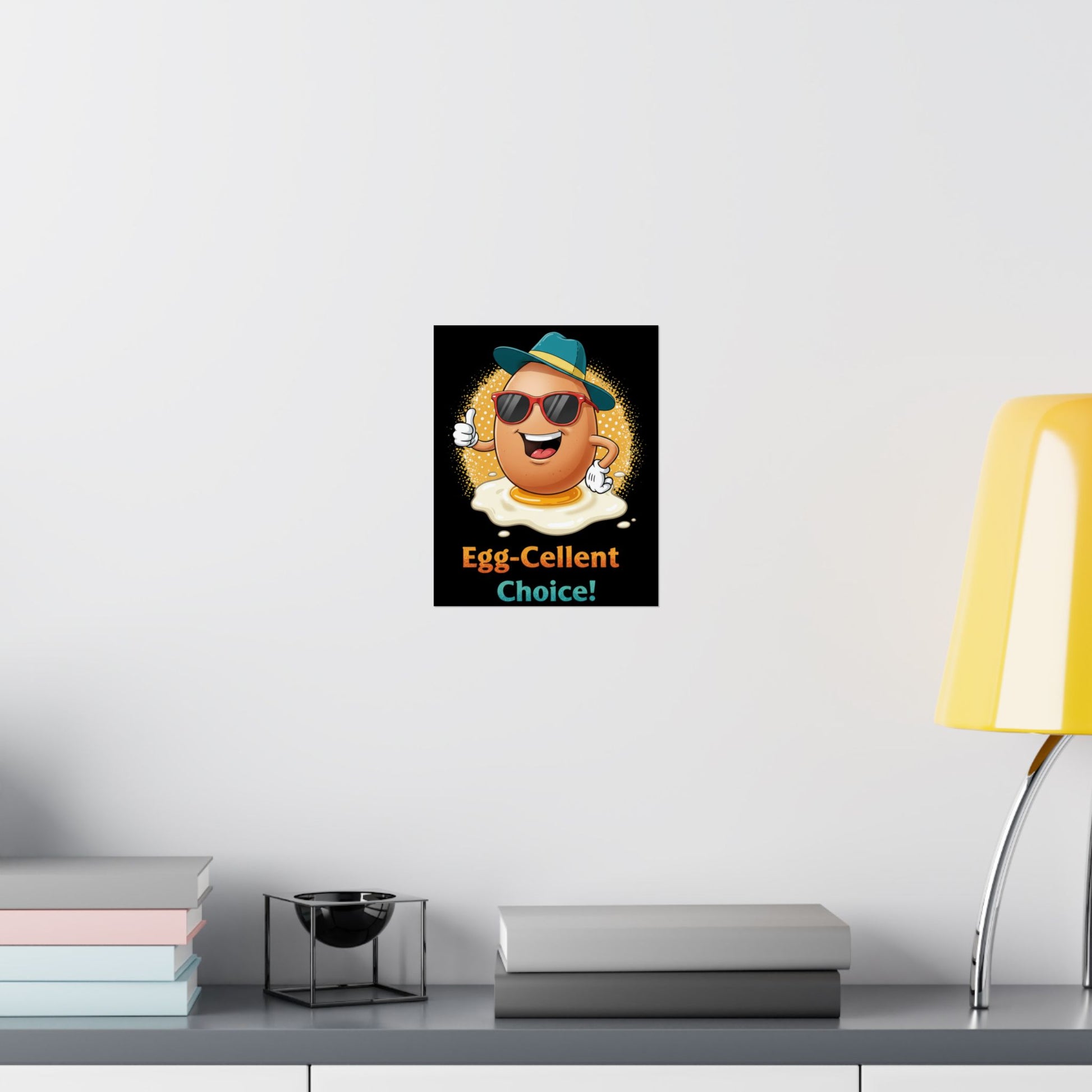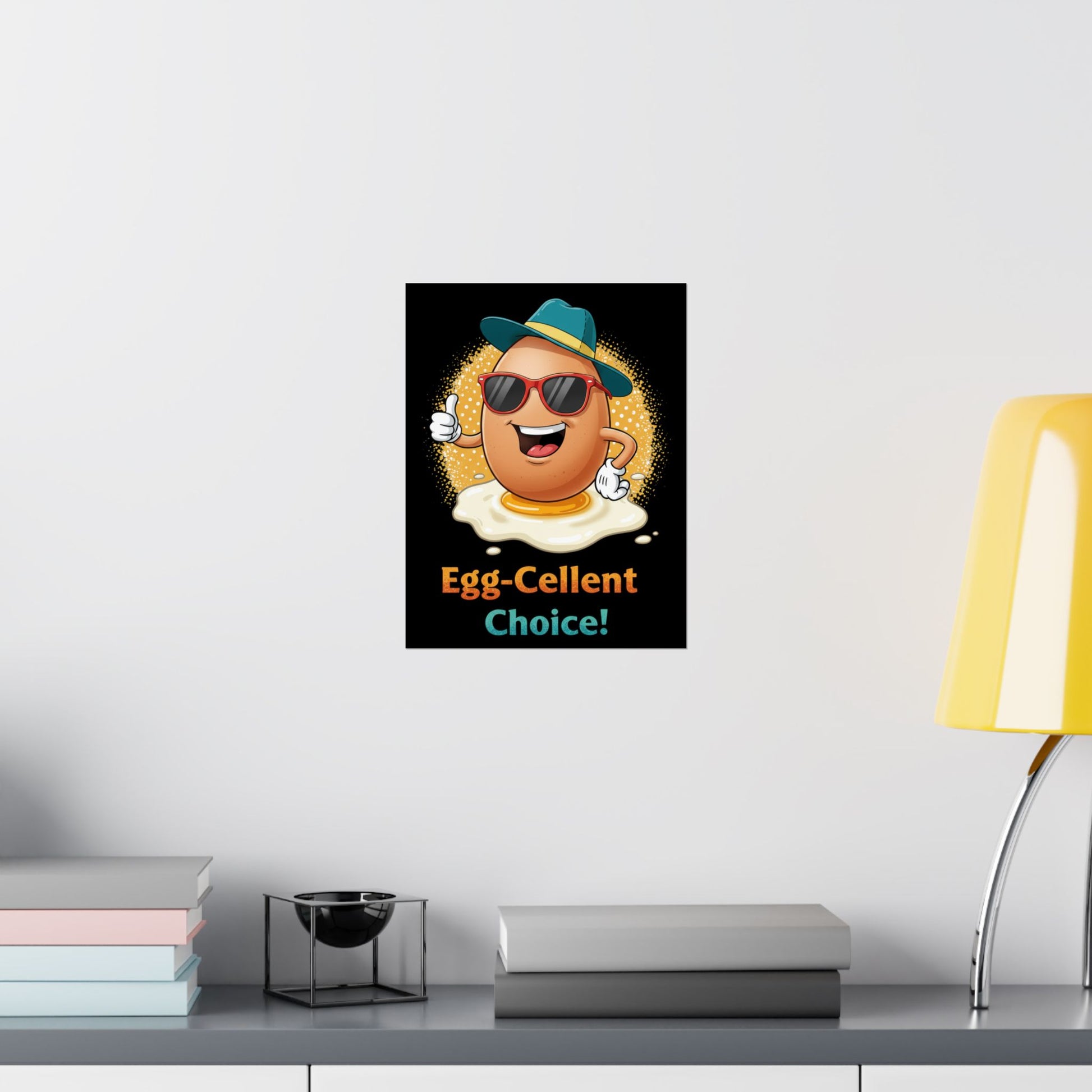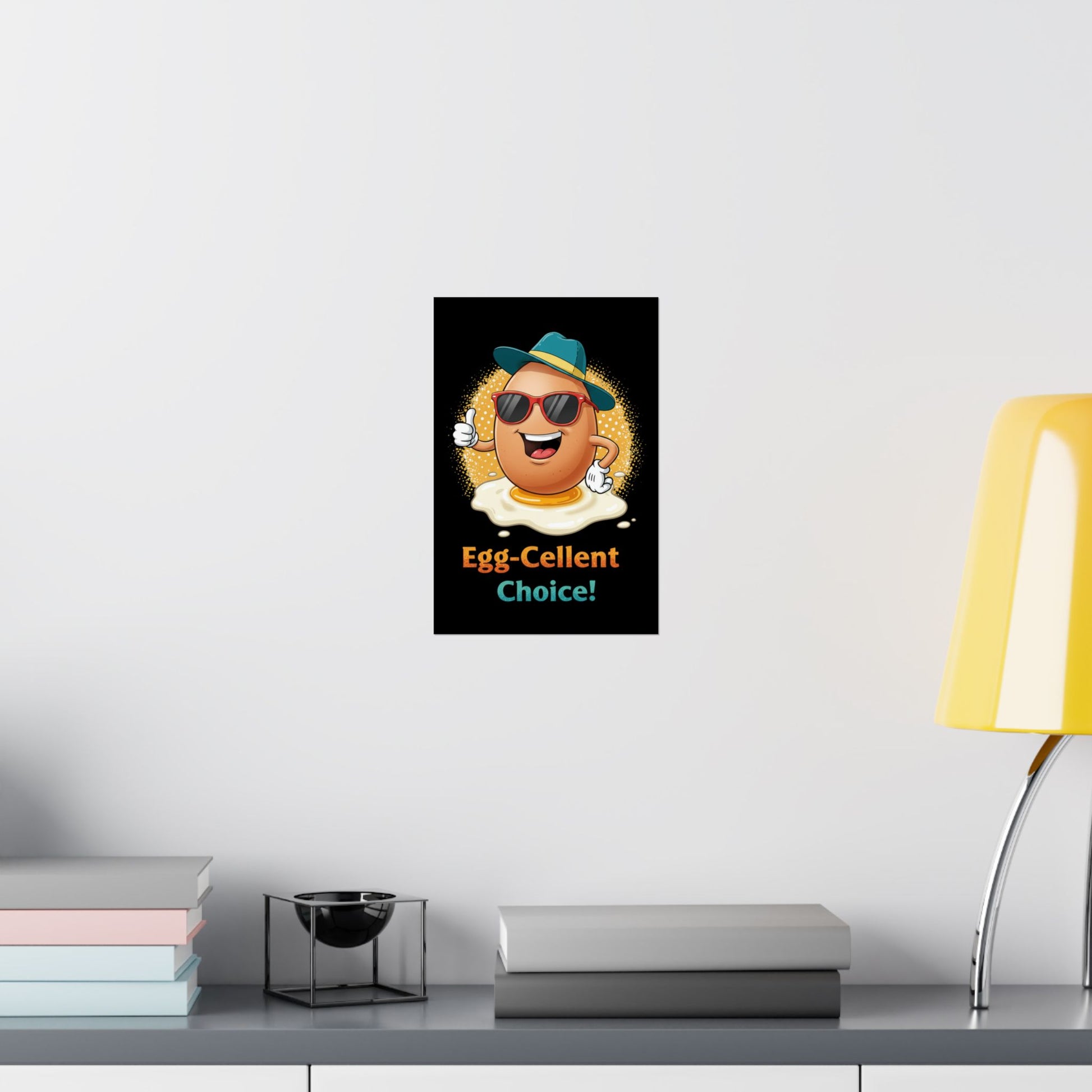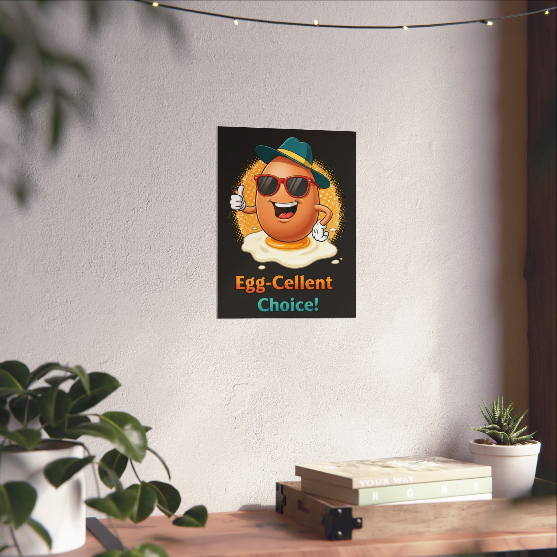 Brighten up your living space with this fun pun poster featuring an egg giving a thumbs up and saying "Egg-Cellent Choice". Perfect for adding a touch of humor to any room, this vertical poster is made with museum-grade archival paper for long-lasting quality. Ideal for those who love quirky decor and puns, this poster is great for gifting during Easter or any time of the year.